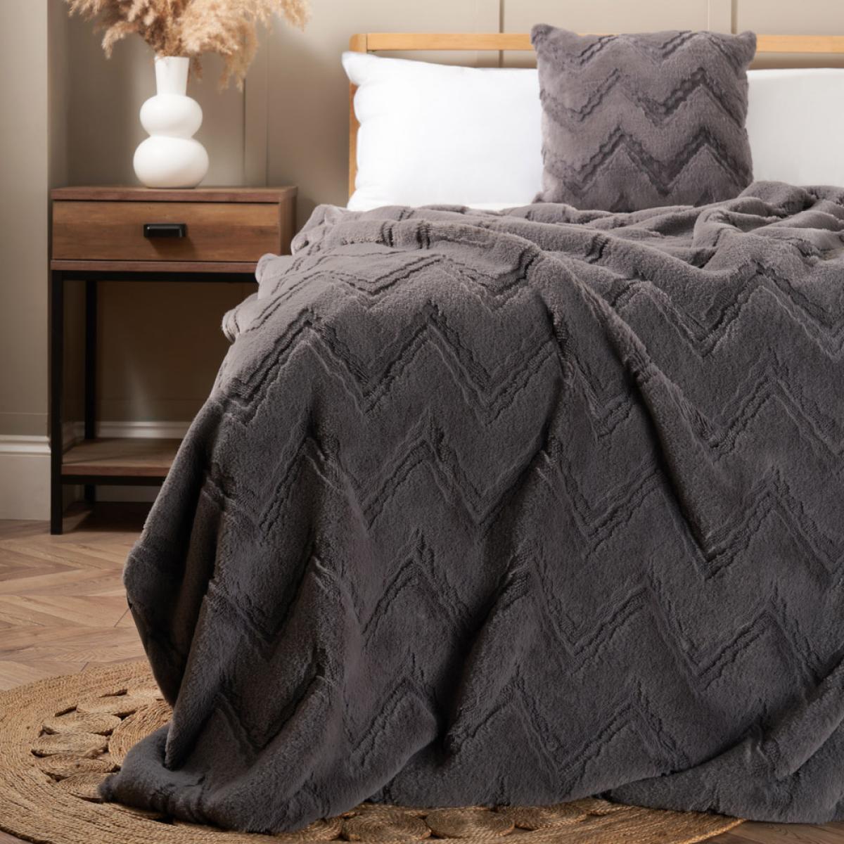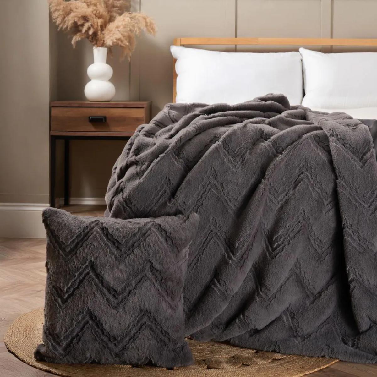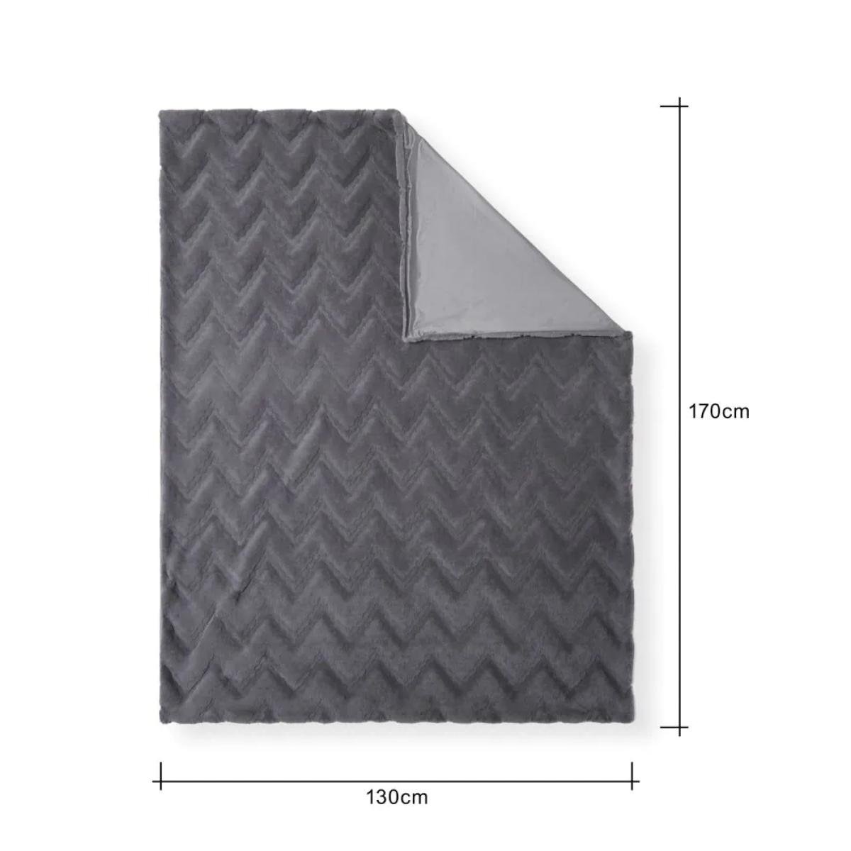 For a bold yet comforting touch, the Chevron Faux Fur Throw in Charcoal delivers depth and drama with its rich tone and plush texture. The chevron design creates a sense of movement, making it a standout piece in minimalist or industrial-style rooms. Its generous 130x170cm size makes it ideal for wrapping up or styling across furniture.