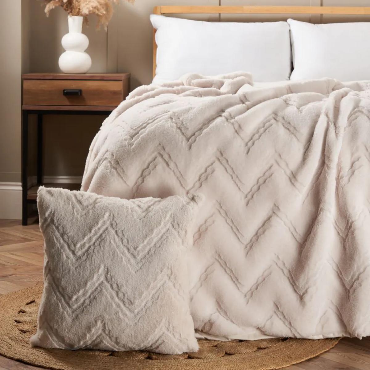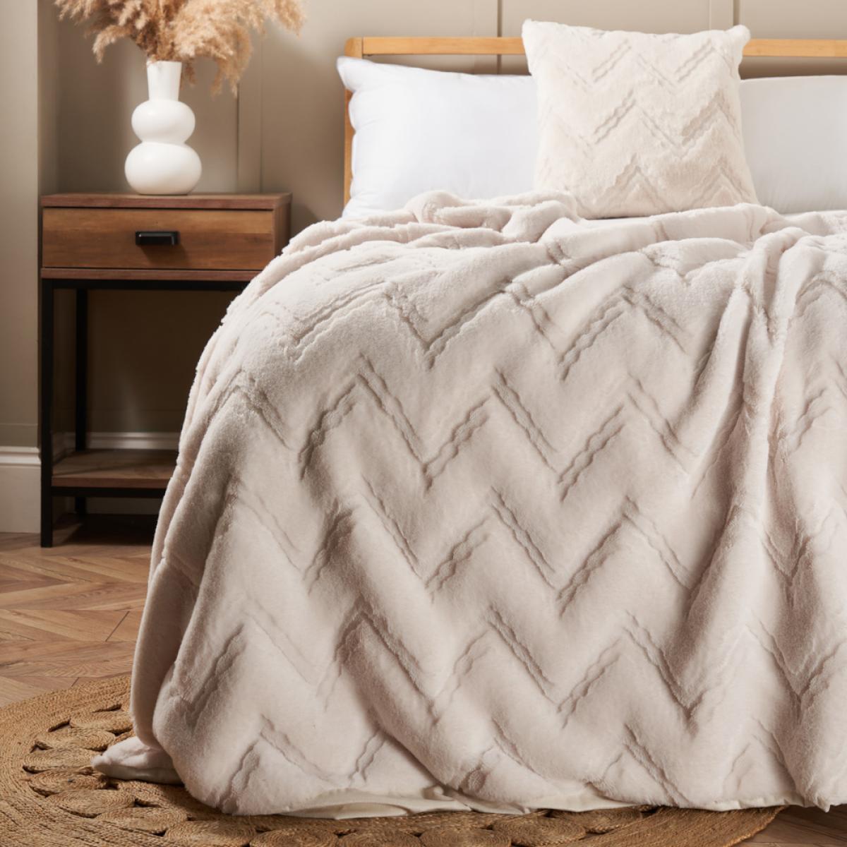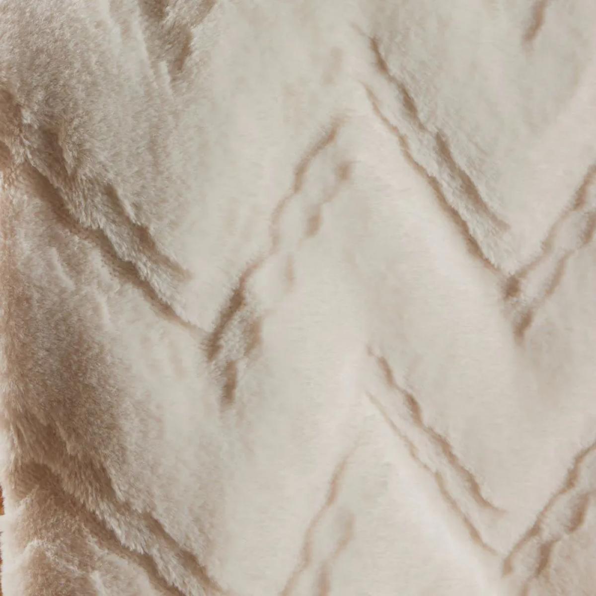 Elevate your home s cosiness with the Chevron Faux Fur Throw in Cream, a beautifully soft accent that blends comfort with understated elegance. The creamy hue brightens darker palettes and softens lighter ones, while the chevron detailing introduces a subtle design twist. Perfect for layering across furniture, this 130x170cm throw is a stylish way to stay snug during cooler months.