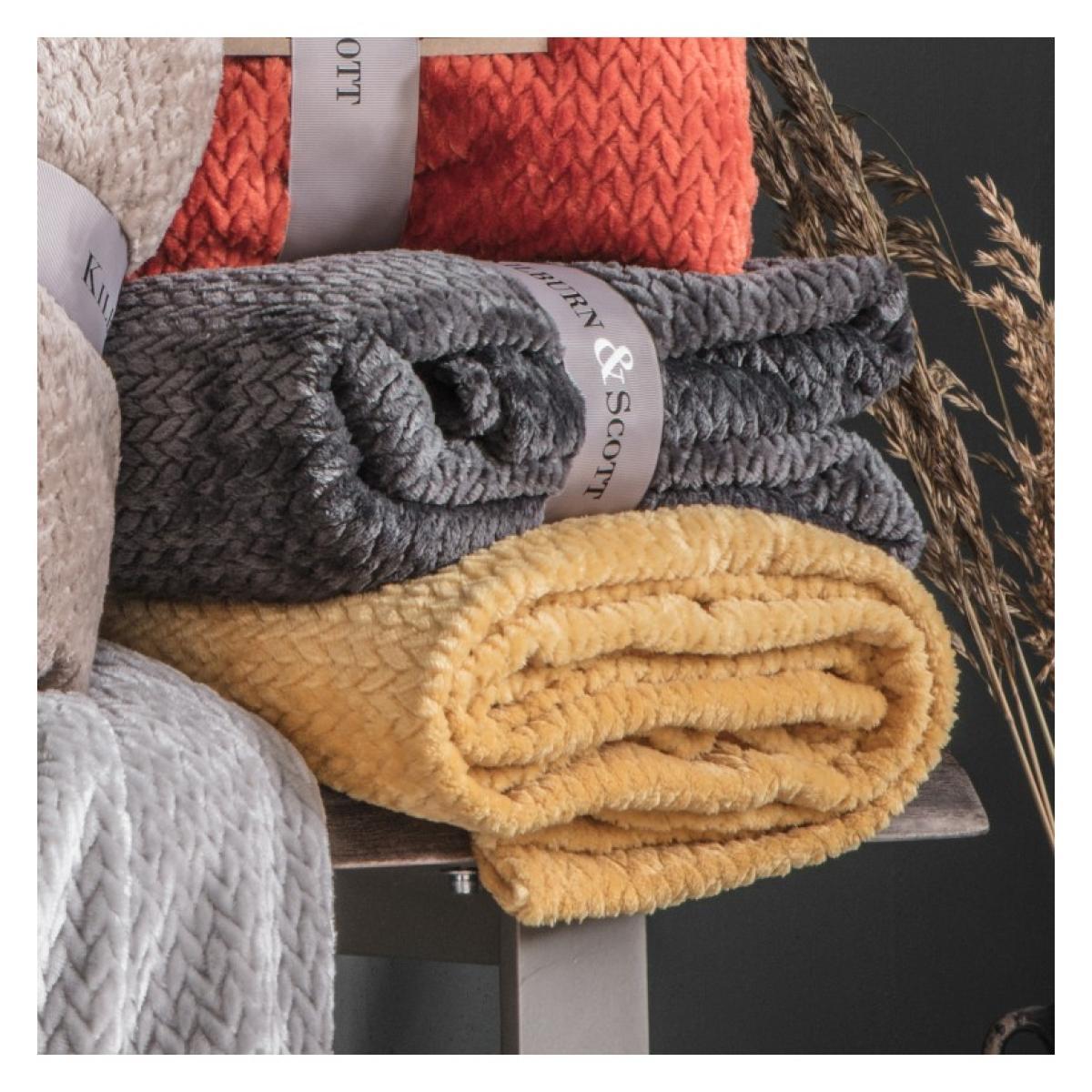 This cosy throw is a great addition to both modern and rustic interiors, thanks to its warm ochre colour and classic chevron pattern. I love it for adding both texture and colour to neutral sofas or beds without overwhelming the space. It works well layered over crisp linen or plush velvets, giving a relaxed yet thoughtful look. Practical styling tips include folding it neatly over the arm of a sofa or draping it across the foot of the bed for a pop of colour. Its fleece material makes it ideal for giving a space a warm, inviting feel - perfect for autumn and winter months.