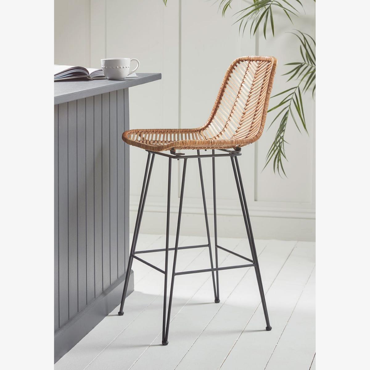 I’ve been using this chevron rattan stool for kitchen islands and breakfast bars because it strikes the right balance between comfort and style. The natural weave and black metal legs suit Scandi, coastal or industrial-inspired spaces, and the slim profile means it won’t crowd a smaller area. For easy styling, tuck a neutral linen cushion into the seat to soften the line and introduce a touch of colour or pattern. Pair with light timber or marble worktops and a few ceramic planters to reinforce the organic feel. It’s also straightforward to move around, so you can shift it between bar and dining table depending on your needs.