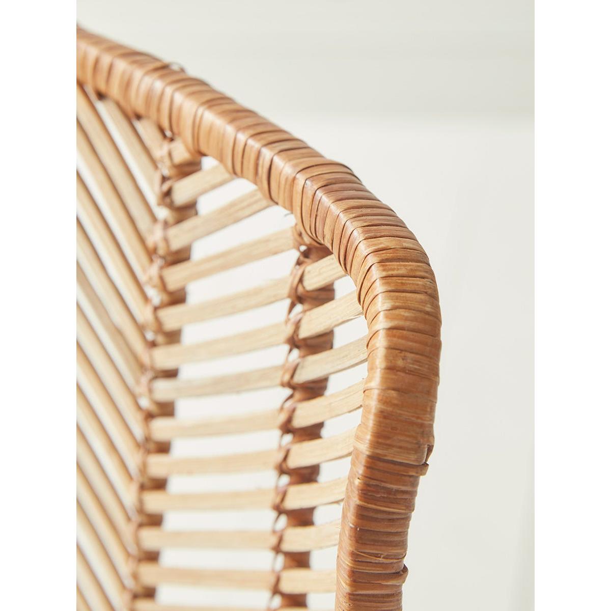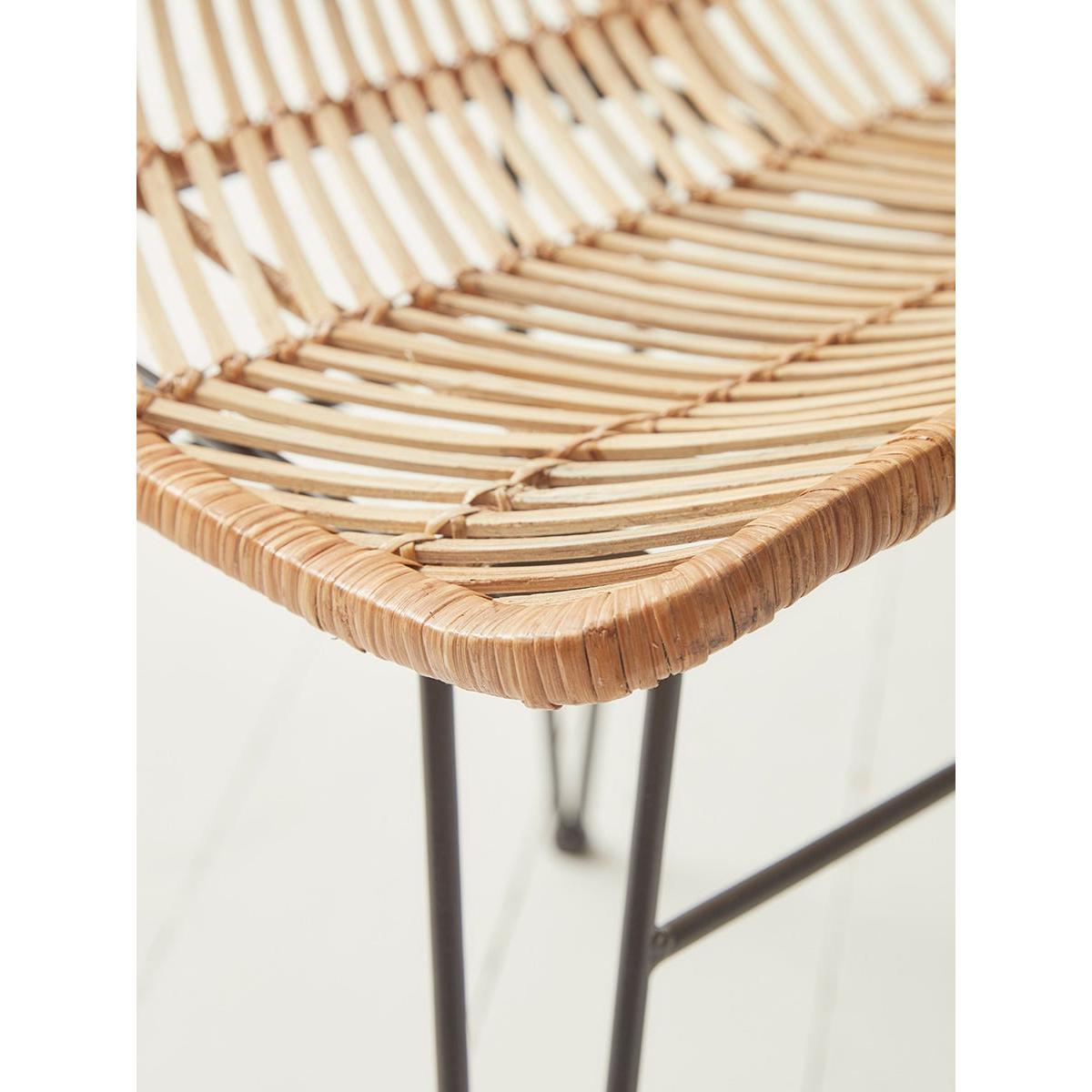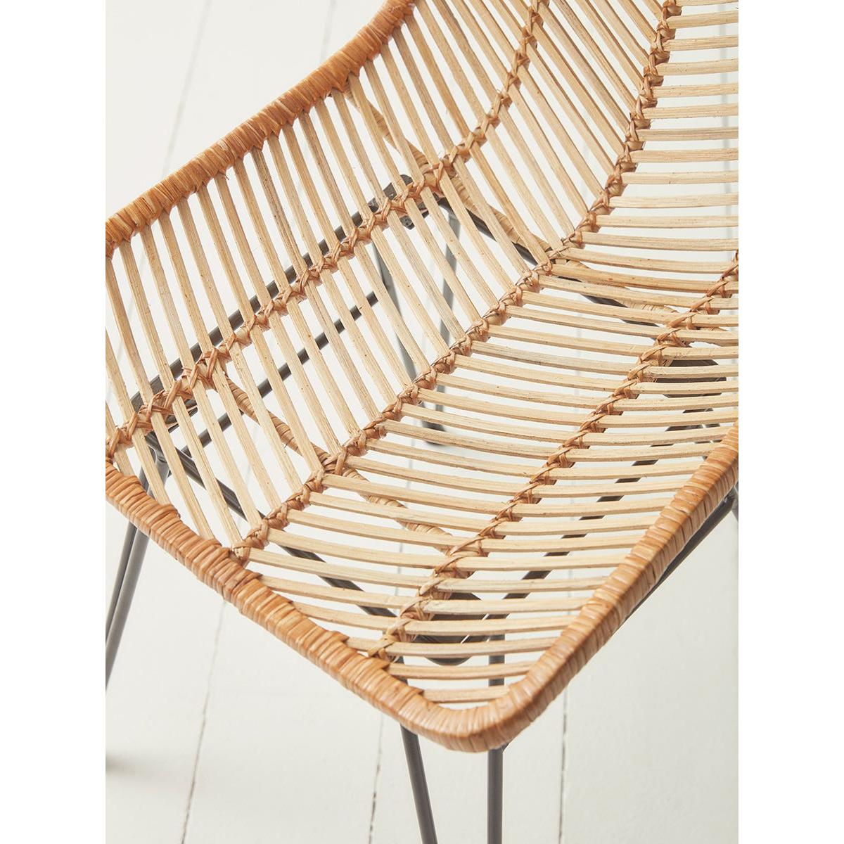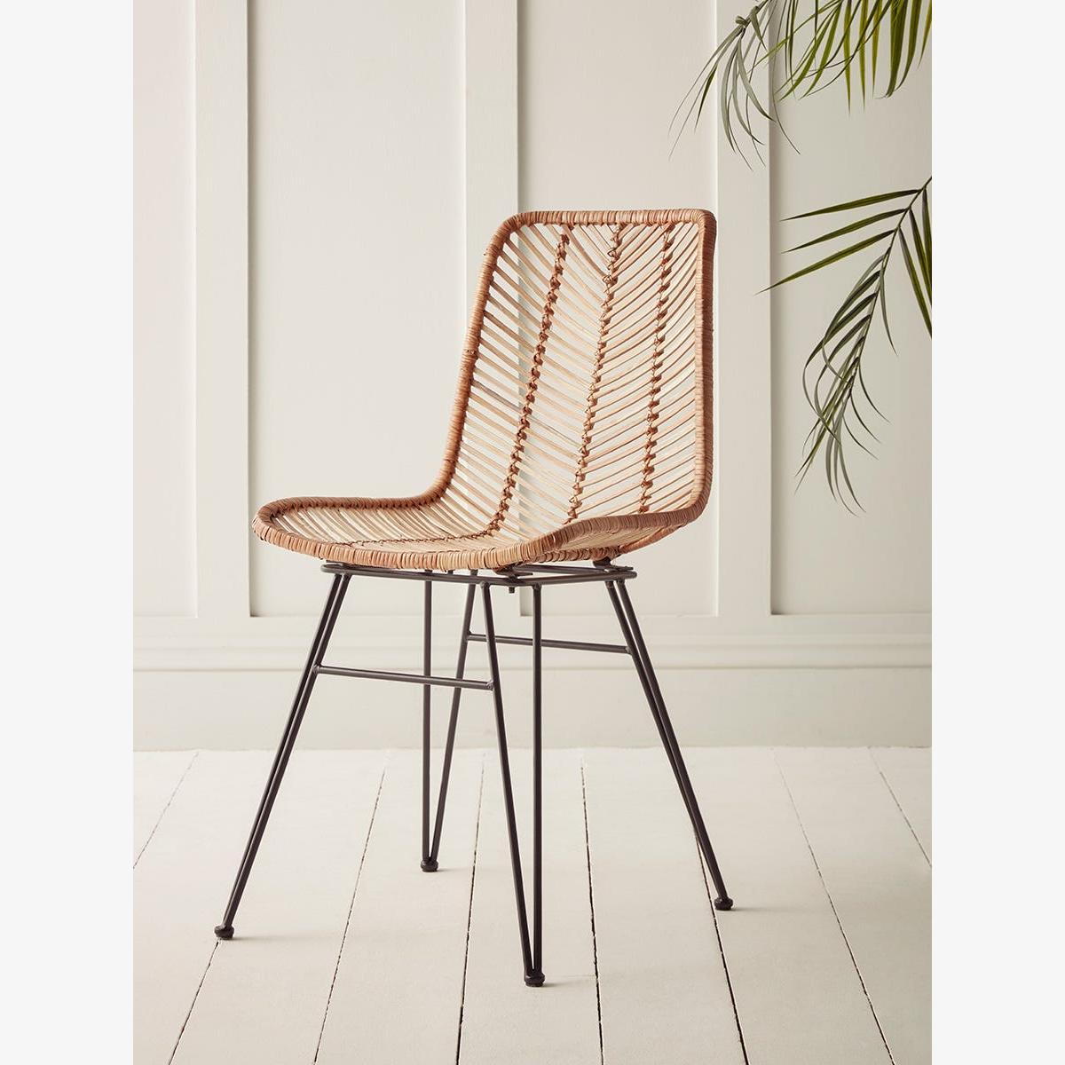 I love this rattan dining chair for its clean chevron weave and slim black legs, which give it a light, airy presence without sacrificing stability. It slots neatly into Scandi, boho or coastal schemes - just add a neutral linen pad or faux-sheepskin for extra cosiness. For a pulled-together look, pair with a simple oak or black-metal table, layer a jute rug beneath and scatter in woven baskets or sculptural ceramics to balance texture and tone.