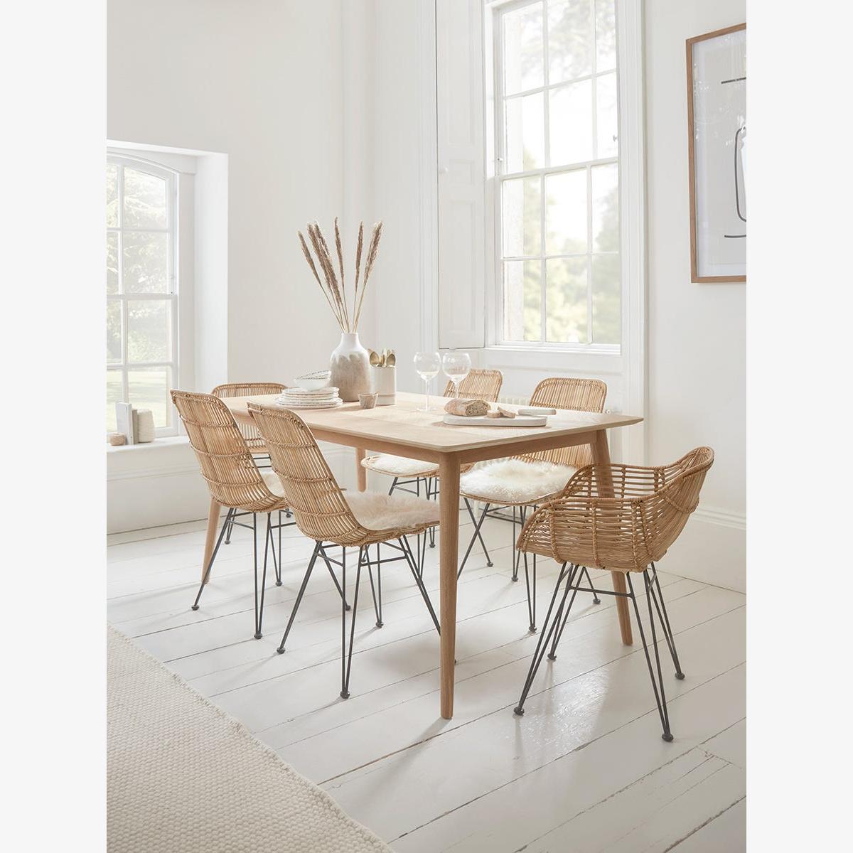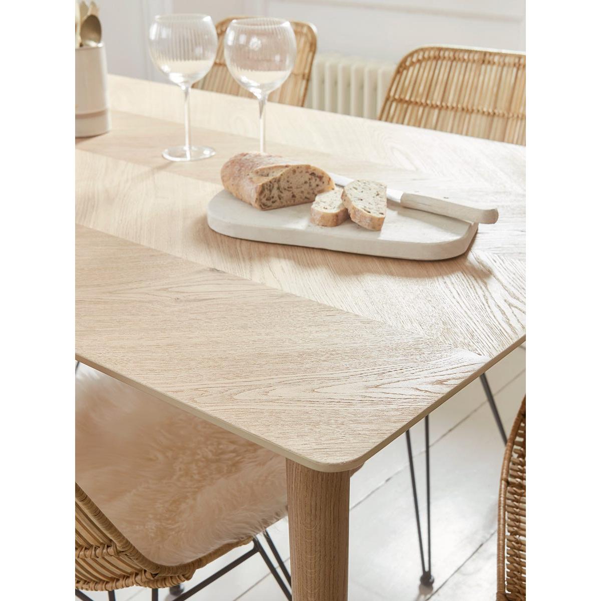 The Chevron Oak Dining Table is a fantastic choice for creating a warm, inviting centrepiece. I love how its natural wood tone and chevron pattern add visual interest without overpowering a space. It works particularly well in Scandi, coastal, or Hygge-inspired interiors thanks to its light, natural finish. To style around it, consider pairing with woven or rattan chairs for extra texture, or keep it streamlined with simple, neutral-toned accessories. Practical tips include keeping the surface clutter-free for a clean aesthetic and adding a statement piece like a bold centrepiece or colourful placemats to bring a personalised touch. It’s versatile enough to work in formal or relaxed settings with the right complementary furniture and decor.