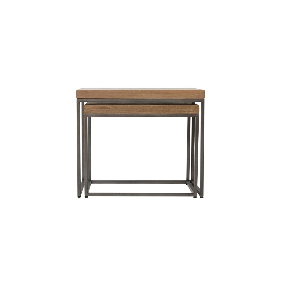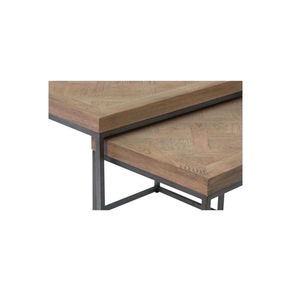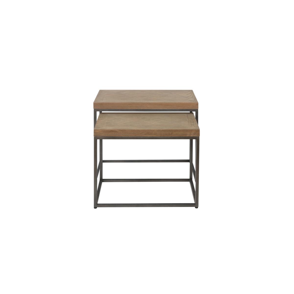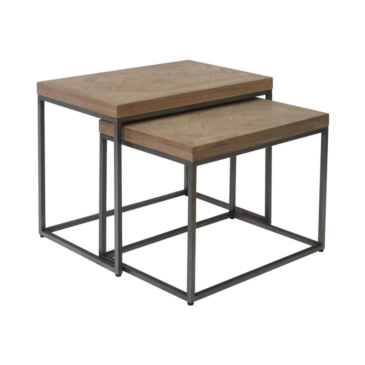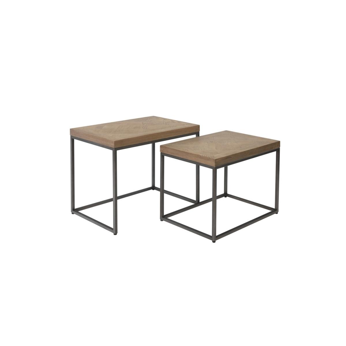 These chevron nest of 2 tables will make a unique and stylish addition to your living space. They have a sharp, minimal design. The angular legs are finished in a light gun metal grey which brings the traditional and modern together for an stylish look.