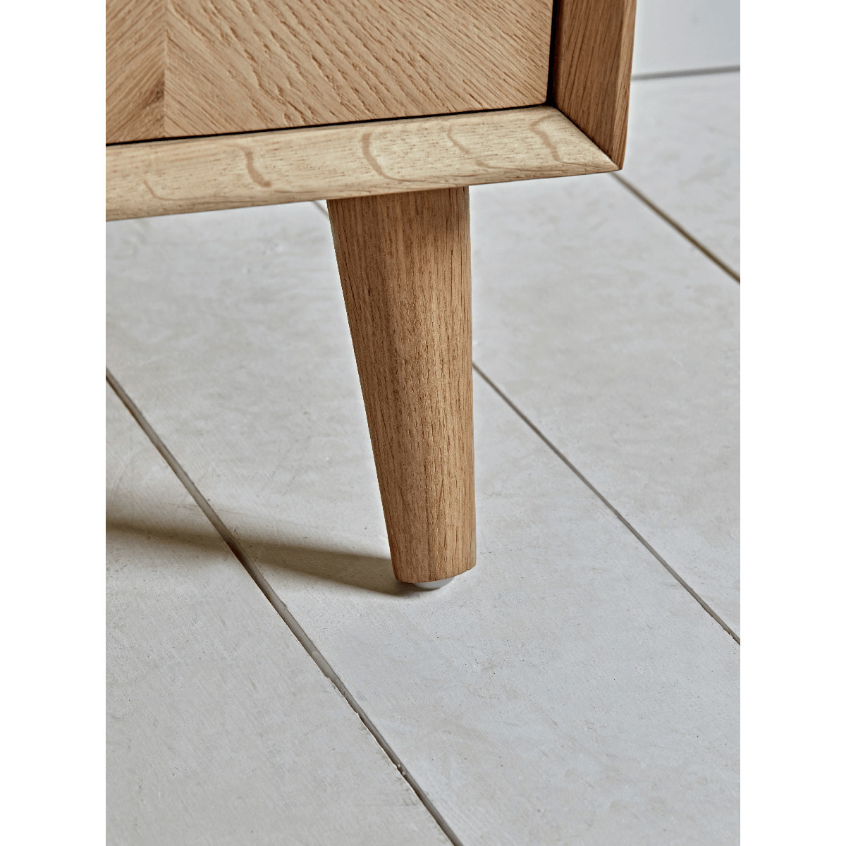 The perfect sideboard for a neutral or Scandi inspired interior, our stylish blonde oak chest of drawers features four slender, tapered legs and a subtle chevron finish. Each piece has six drawers for maximum storage, and pairs beautifully with other pieces from our Chevron Oak furniture collection.