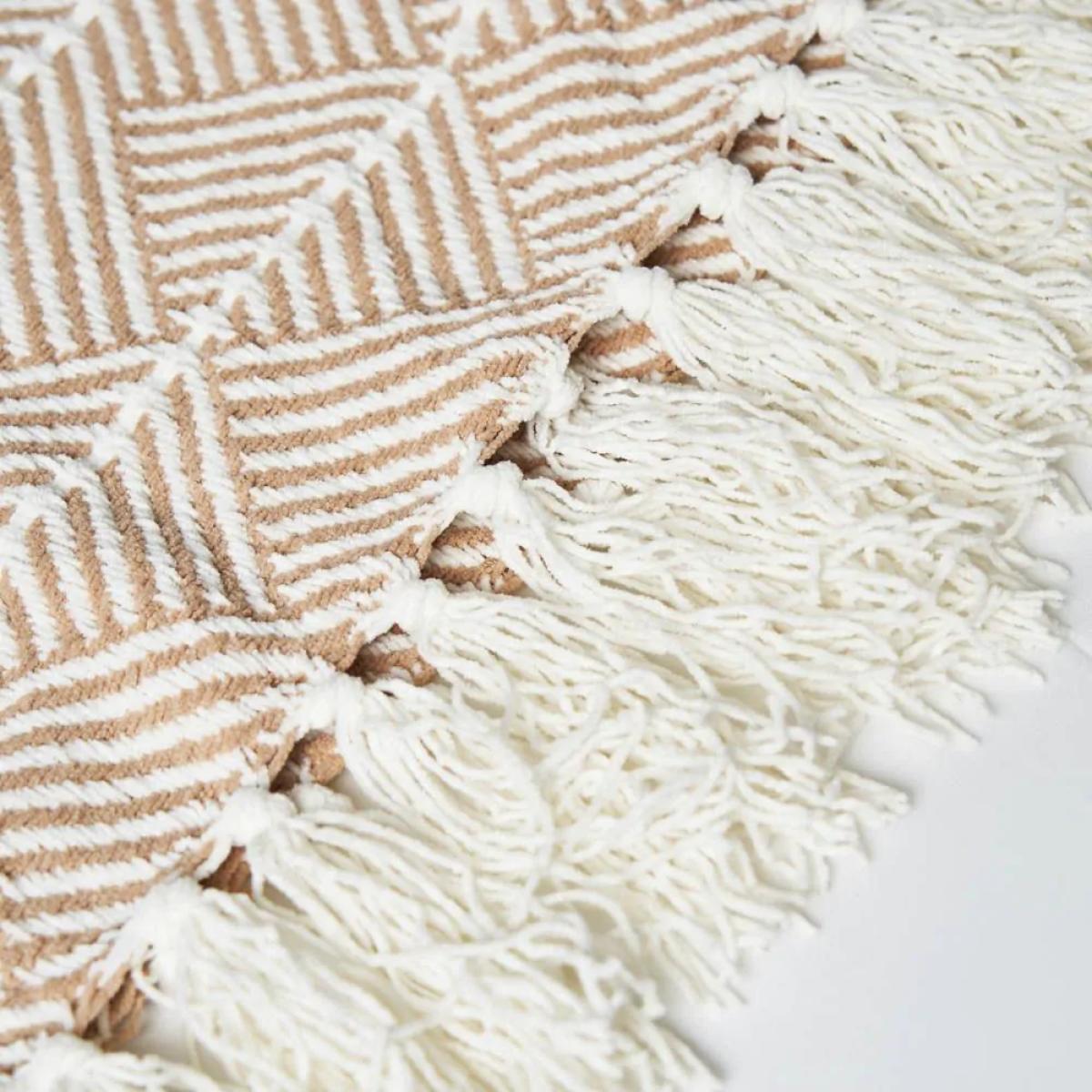 Create a cosy atmosphere with the Chevron Throw in a Natural hue, ideal for Scandi interior décor. This throw is perfect for draping over your sofa or bed measuring 127x152cm and comes in gorgeous natural and white colour tones. The timeless chevron design adds a hint of sophistication to your home decor while the fringe detailing brings a delicate touch to the rooms.