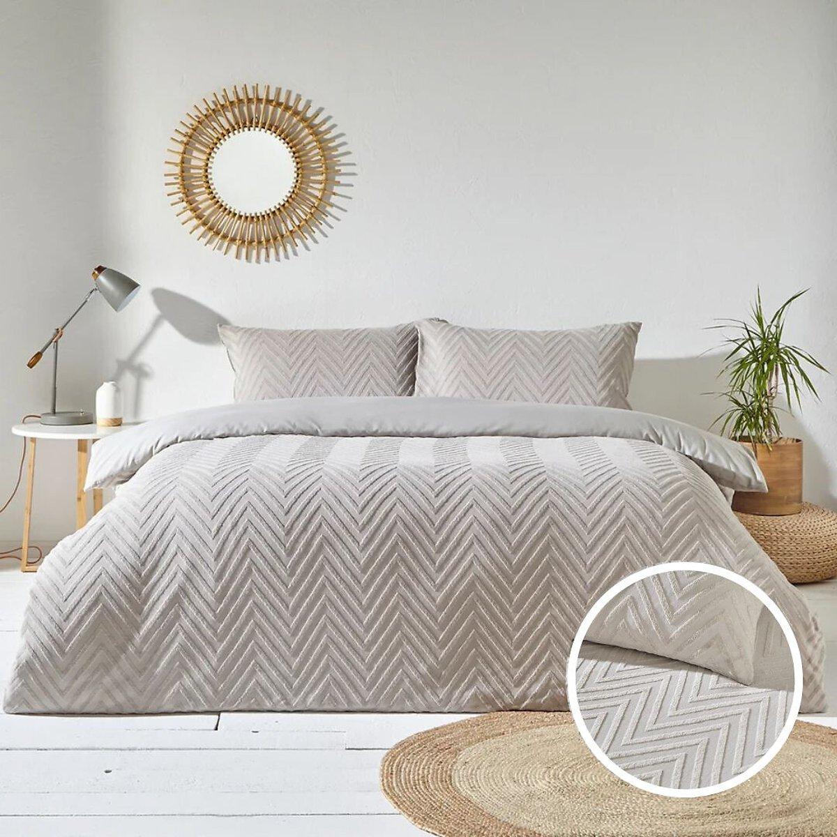 Add texture to your home with the Chevron Tuft duvet cover set. Made with 100% cotton and featuring an angular tufting detail, our chevron bedding will add a cosy, textural look to your bedroom. With a comfortable, breathable cotton percale reverse to help you have a better night’s sleep, this bedding feels as good as it looks. Please note that the Single Set comprises of a Duvet Cover and 1 pillowcase, the Double, King and Super King all come with a Duvet Cover and 2 Pillowcases. Product Dimensions:Single: 135x200cm. Double: 200x200cm. King: 230x220cm Super King: 260x220cm. Composition: 100% Cotton. This product will be dispatched by one of our trusted suppliers. You’ll be contacted by their selected courier about your delivery. RIVAH01