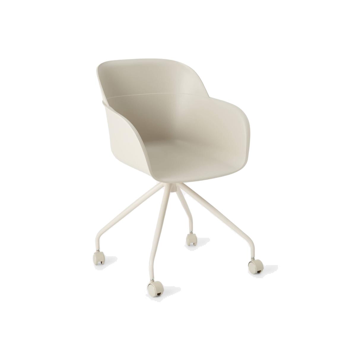 Take your home office for a spin on our Chez armchair. Once you’ve found the ideal desk for your space, this gently curved chair will fit right in. Chez's curved tub shape wraps around the back and continues in its gentle curves around to its arms. Hooded casters complete the piece, allowing you to glide over surfaces. This modern desk chair will dress up your interior and suit the living room, children's room, office, or craft room. If you have a comfy, fashionable office chair, you'll be happier while you're working. Chez is available in khaki, charcoal, and beige, so you can mix and match them around a board table or in a creative studio as much as add these soothing colors to your home.