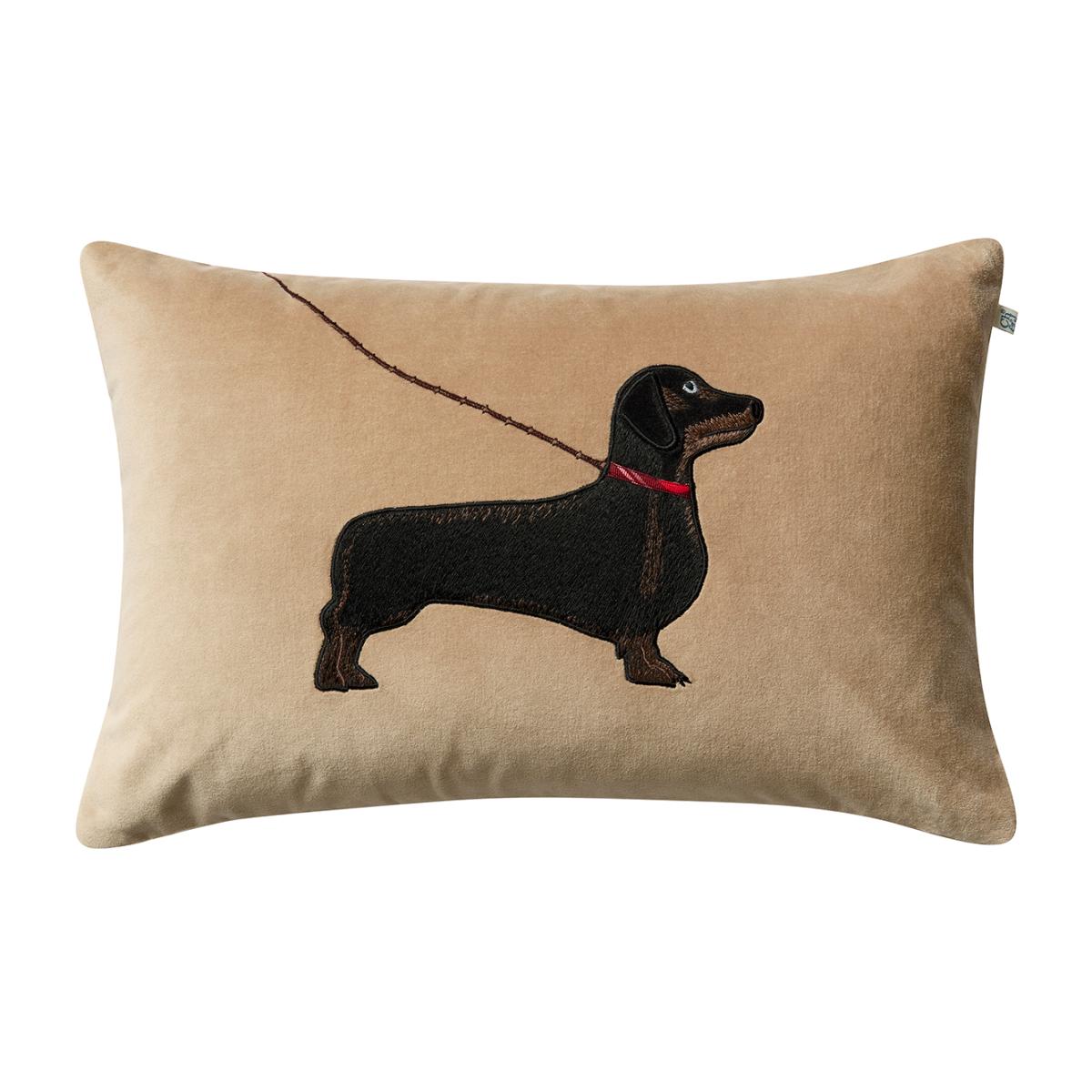 I love this cushion cover for its playful yet sophisticated design, making it a versatile addition to many interiors. The tan colour and the embroidered dachshund give it a timeless, Scandinavian feel that works especially well in casual lounges, cosy reading nooks, or even bedroom settings where a touch of humour is appreciated. For styling tips, try pairing it with neutral-toned textiles or layered with other textured cushions to bring depth without overwhelming the space. It also lends itself well to pairing with natural materials like wood or linen to create a relaxed, inviting vibe. Despite its whimsical motif, it’s a practical piece that adds personality without being overly decorative.