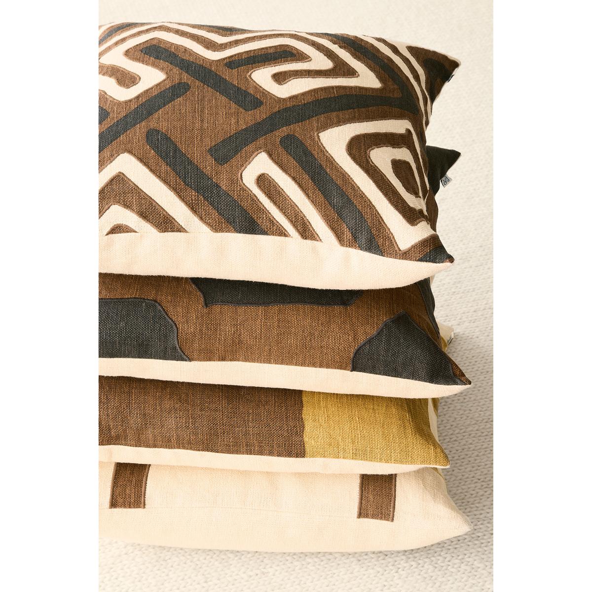 I love this cushion cover because of its rich, earthy palette that effortlessly introduces colour and texture without overwhelming a space. The taupe, spicy yellow, and cactus green combine to create a versatile look that works well in both contemporary and more relaxed interiors. It’s perfect for adding a touch of warmth to neutral sofas or beds, and it pairs beautifully with natural fabrics and wood tones. Practical styling tips include mixing it with other patterned cushions for a layered, eclectic feel, or using it as a standalone accent piece to bring colour into minimalist setups. Due to its colour combination and design, it’s especially suitable for living rooms or bedrooms aiming for a cosy yet sophisticated vibe.