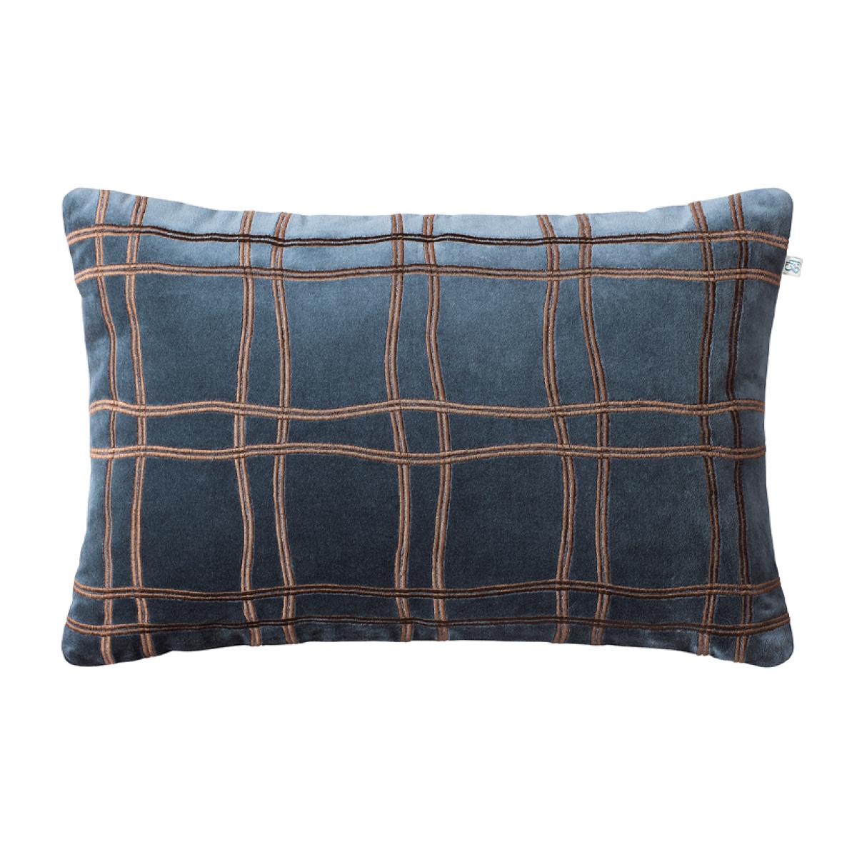 Chhatwal & Jonsson Tattersall cushion Sea blue/cognac 60x40 cm