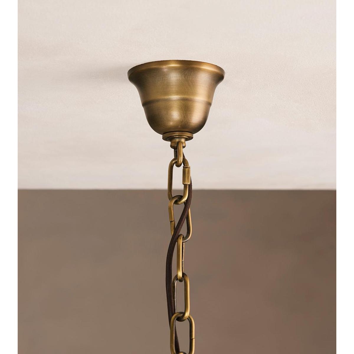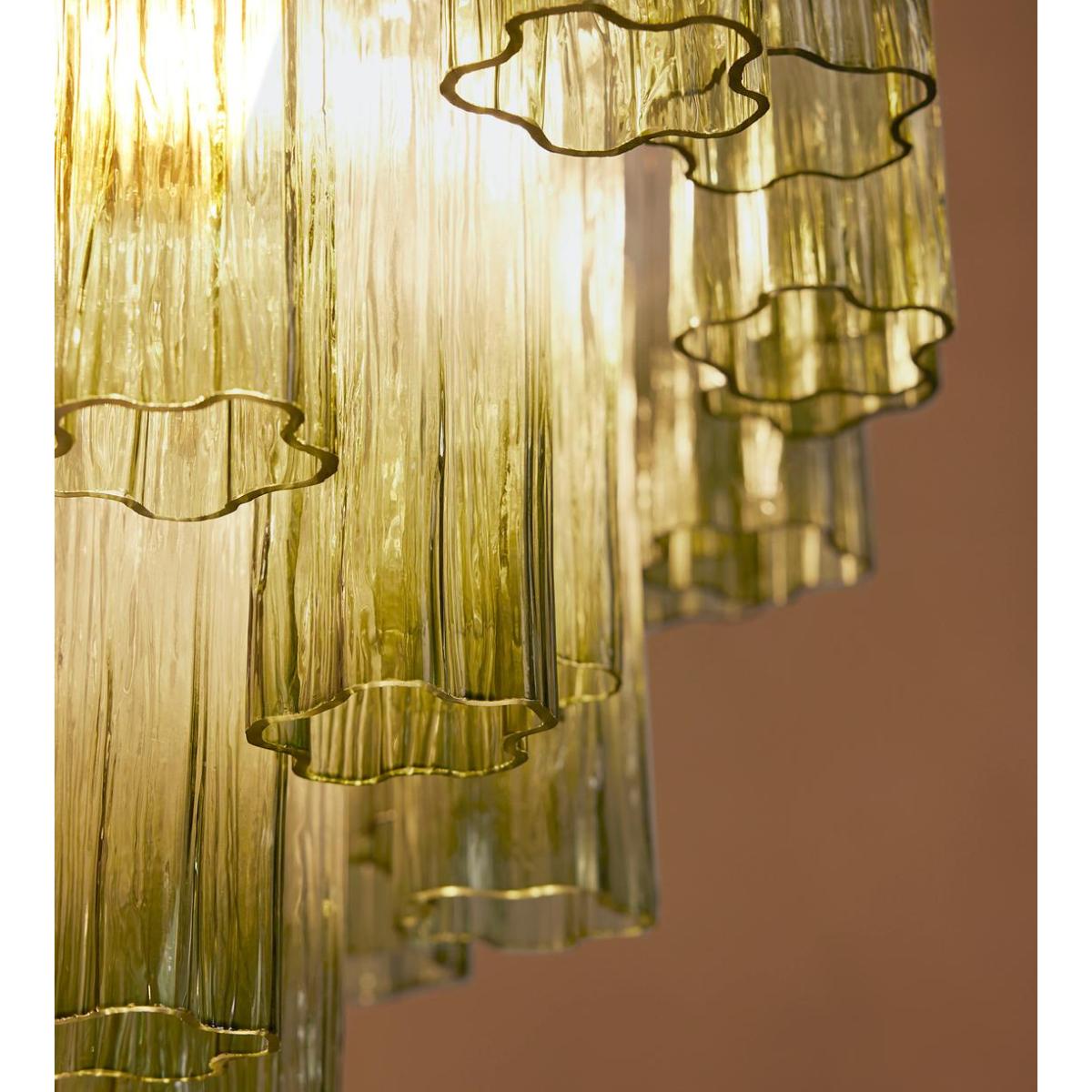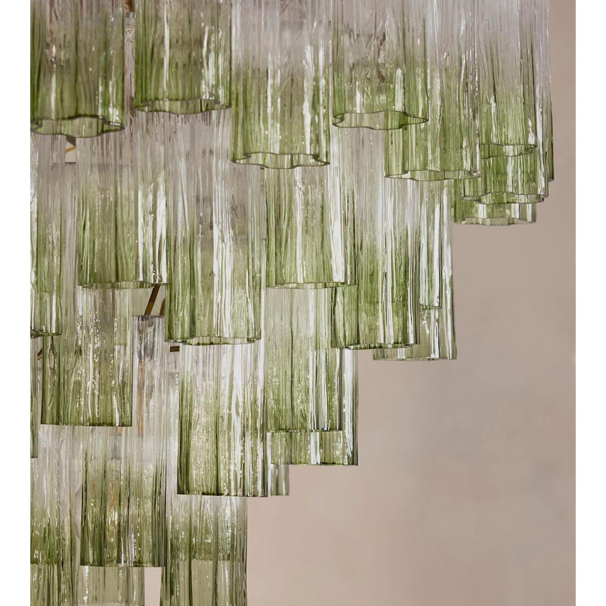 You will see multiples of our Chiara chandeliers hanging in DUMBO House. Each one features dozens of green ombre, scalloped glass tubular sections, which are mouth-blown and hand-finished by skilled artisans. These create a beautiful variation of tonal colours to bring depth, texture and opulence to any living space. Hang in an entryway or living room for elevated drama. Glass chandelier Mouth-blown using traditional artisanal techniques Scalloped, green ombre tubular glass sections Glass sections suspended from aged brass-finish metal frame Flex woven through decorative brass-finish chain Recommended bulb: 7 / E27 / 60W maximum As seen in DUMBO House