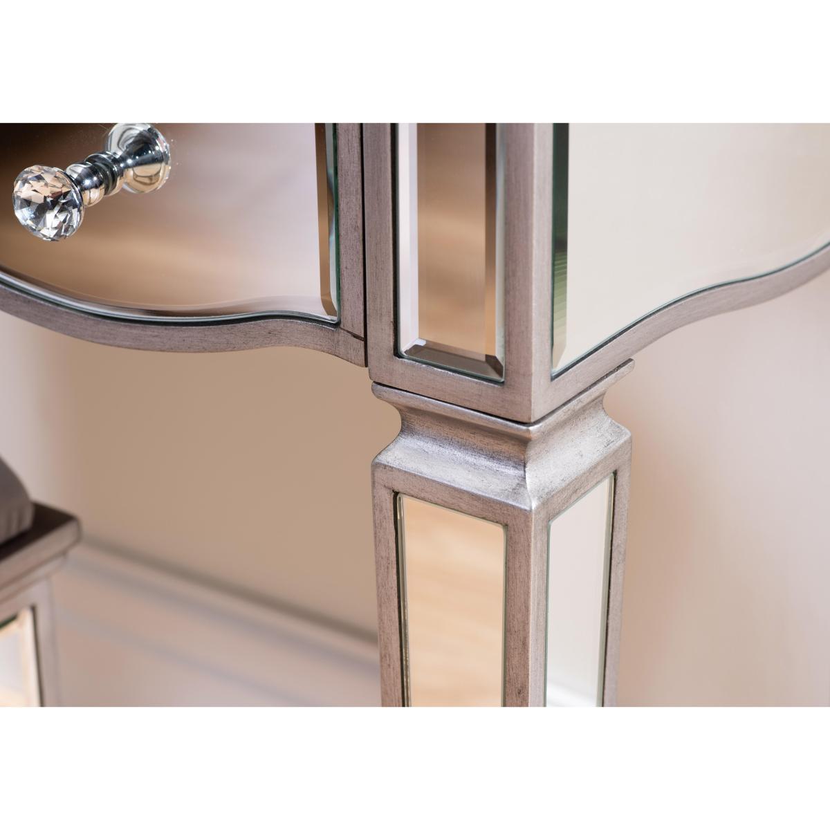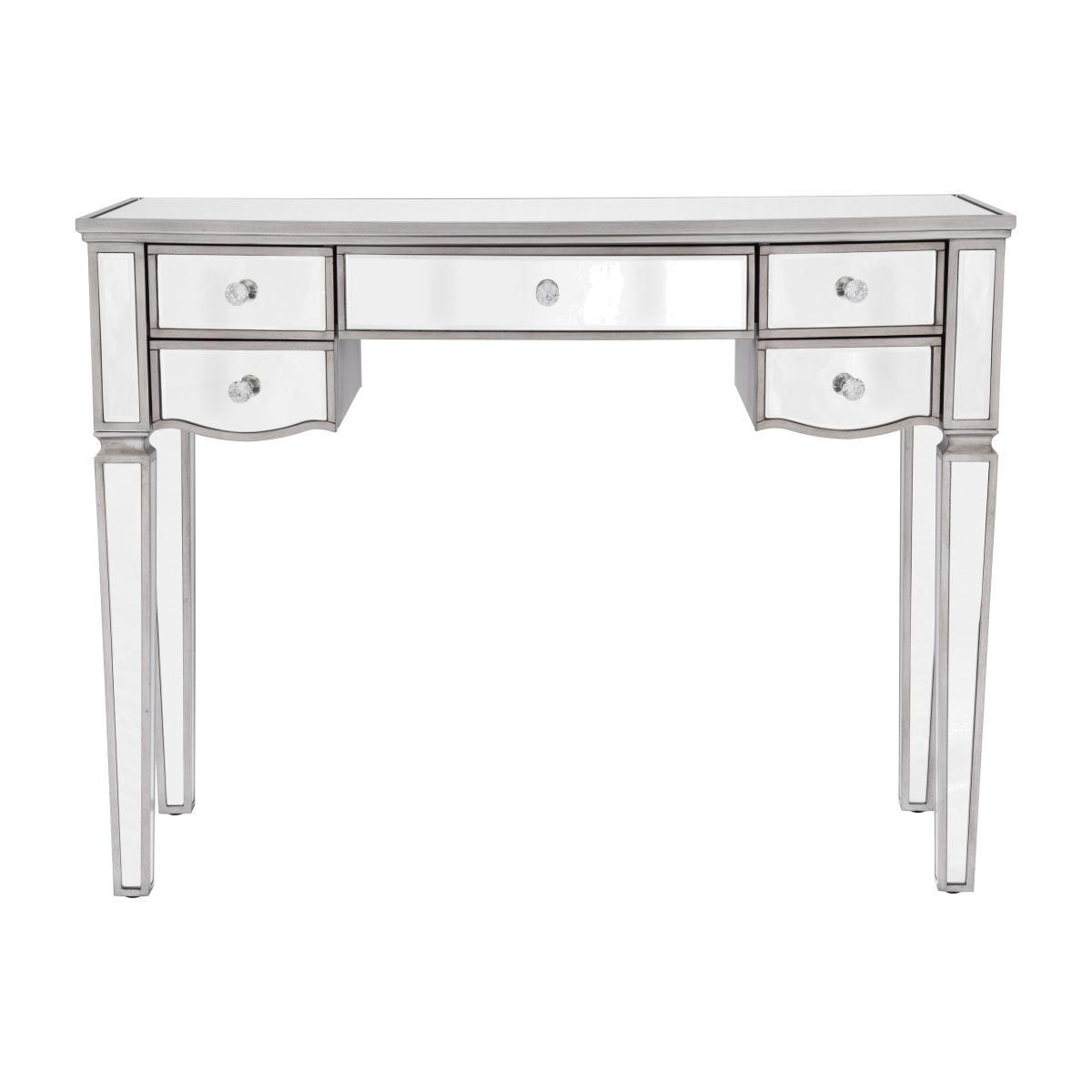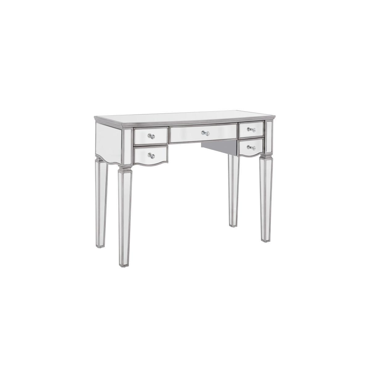 Start each day feeling your best glamorous self with the Chiara Dressing Table. Inspired by Hollywood’s “Golden Era”, this stunning design features reflective bevelled edges and crystal decorations for a decidedly decadent look. Why you'll love it Hollywood Regency style for an opulent and glamorous interior. Elegant glass design sits gently on tapered glass feet. Mirrored finish amplifies light and creates the illusion of extra space. Stunning bevelled edges add distinctive character. Crystal effect handles and decorations. Practical yet incredibly stylish storage solution. What you need to know Delivered fully assembled. MDF and glass construction. Hinged doors. Care for glass by wiping with a damp, microfibre cloth to remove finger marks. Only use furniture polish and cleaning materials suitable for glass. Avoid abrasive cleaners. Do not place heavy items on glass. While glass is water resistant, using coasters is recommended. Glass can scratch, so take care when placing items on a glass surface. For deep scratches, seek professional advice. Part of the Chiara bedroom range. WARNING! Furniture can tip over unexpectedly and cause injury. This item shall be fixed to a wall using the anti- tip kit provided with the furniture. Be sure to use the correct wall fixings suitable for the walls in your home.