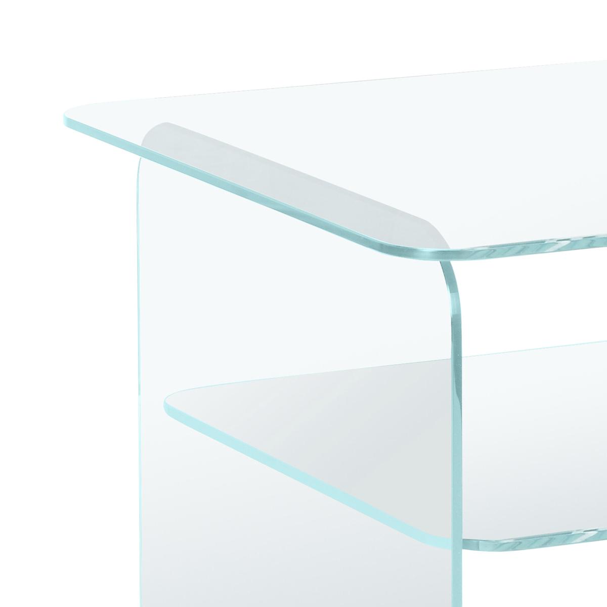 Light, modern, and effortlessly elegant, the Chiaro Clear Glass Square Side Table brings a fresh sense of openness to any room. Its smooth, curved edges and seamless bent glass design create a refined, minimalist look that works beautifully in contemporary, airy, and sophisticated interiors. The lower shelf offers practical storage without disrupting its clean silhouette, making it perfect for displaying décor, keeping essentials close, and enhancing your space with subtle, modern charm.