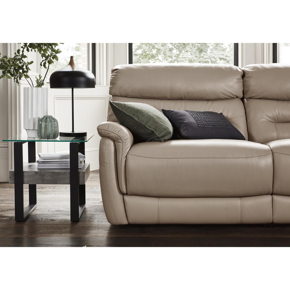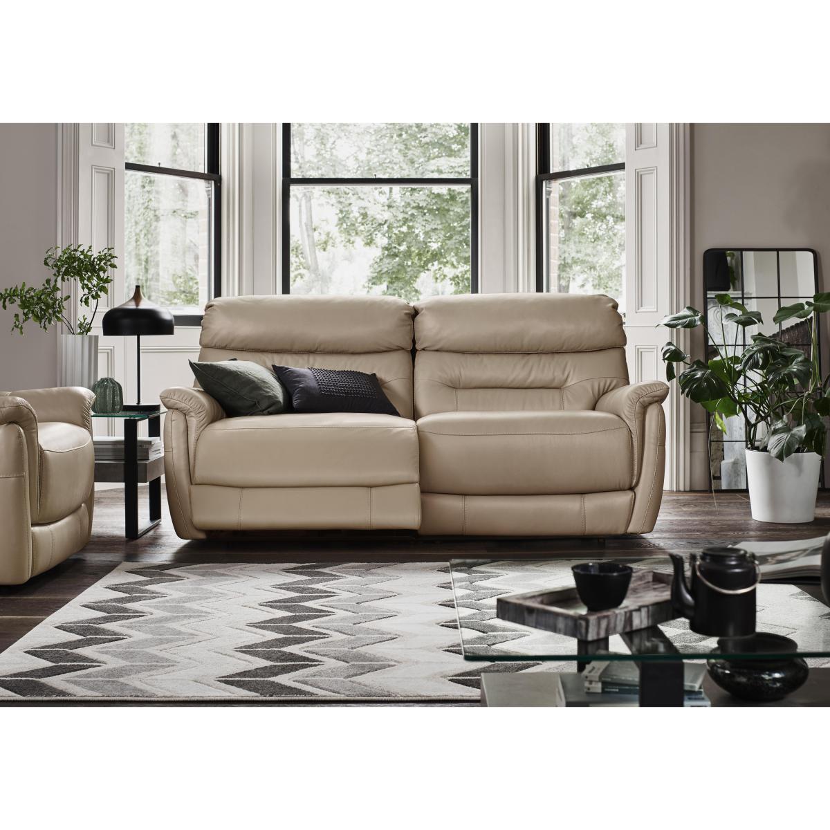 Spacious, deeply comfortable three seater leather sofa. With soft leather upholstery, sumptuous cushioning, feature stitching and outstanding lumbar support. With recliner options. Why you’ll love it. Sumptuous comfort, with supportive lumbar cushioning. Clean lined, contemporary design. A storage and cup holder unit is available to buy separately. Soft, family friendly leather in a wide choice of colours. Foam with a fibre top seat cushion, luxury fibre back cushions. Resilient coil springs help the seat cushions keep their shape. Luxury fibre filled back cushions. Wrap around foam and fibre arm cushions. Battery power recliner option comes with a rechargeable battery pack so you don’t have to rely on mains power. Exclusive to Furniture Village at a great value price. What you need to know. Medium comfort level. Choice of no recliners, power recliner or battery-power recliner. The power recliner models has built-in USB ports. Sprung seat suspension. Webbed back suspension. Strong hardwood frame, hidden glide feet. Natural leather has unique marks and characteristics with variance in colour and texture, and softens with use. Smoothing seat cushions prevents puddling. Please read our. Upholstery care guide. For more advice. Allow time for recliners to settle. Minor gaps for motion vary by floor type. Manual recliners may feel stiff at first, but will ease with use. Slight variance in alignment and back cushion levels and small gaps between units is perfectly normal in modular sofas, closing as interiors settle. Part of the World of Leather Chicago range of sofas and chairs, in fabric and leather.