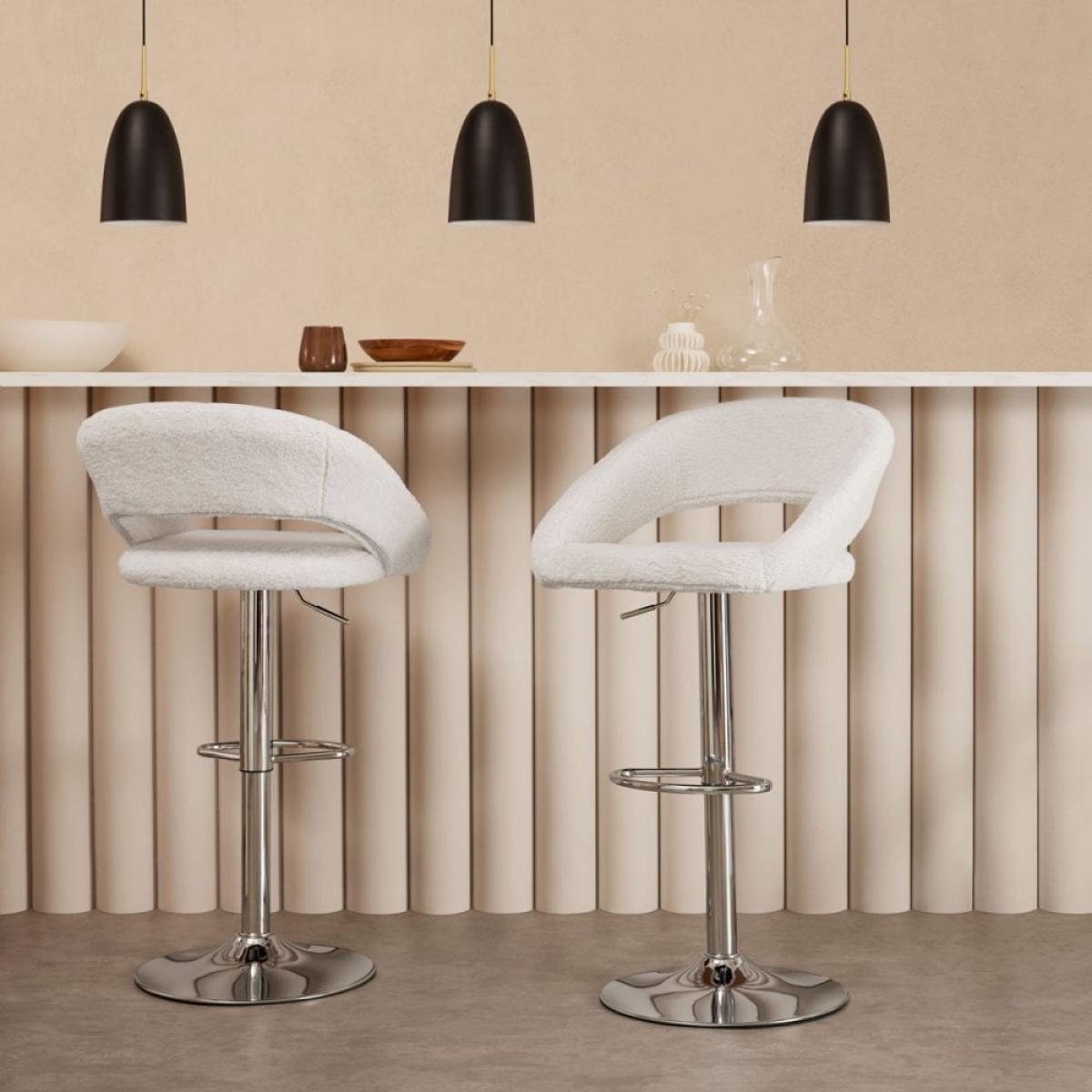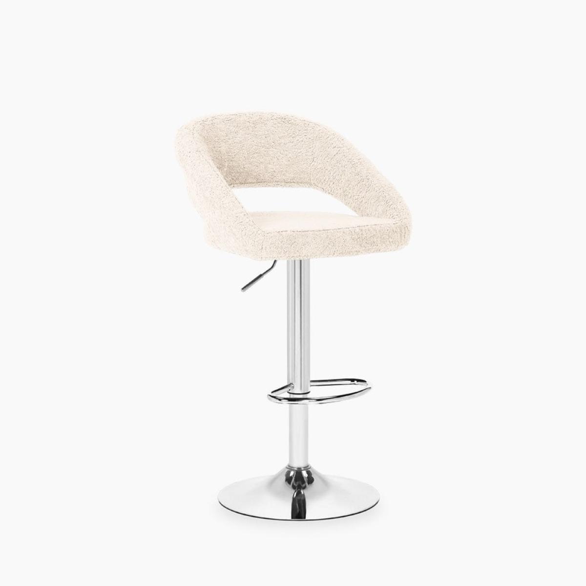 Chicago Adjustable Kitchen Stool, Ivory White Boucle & Chrome Leg Colour: Chrome