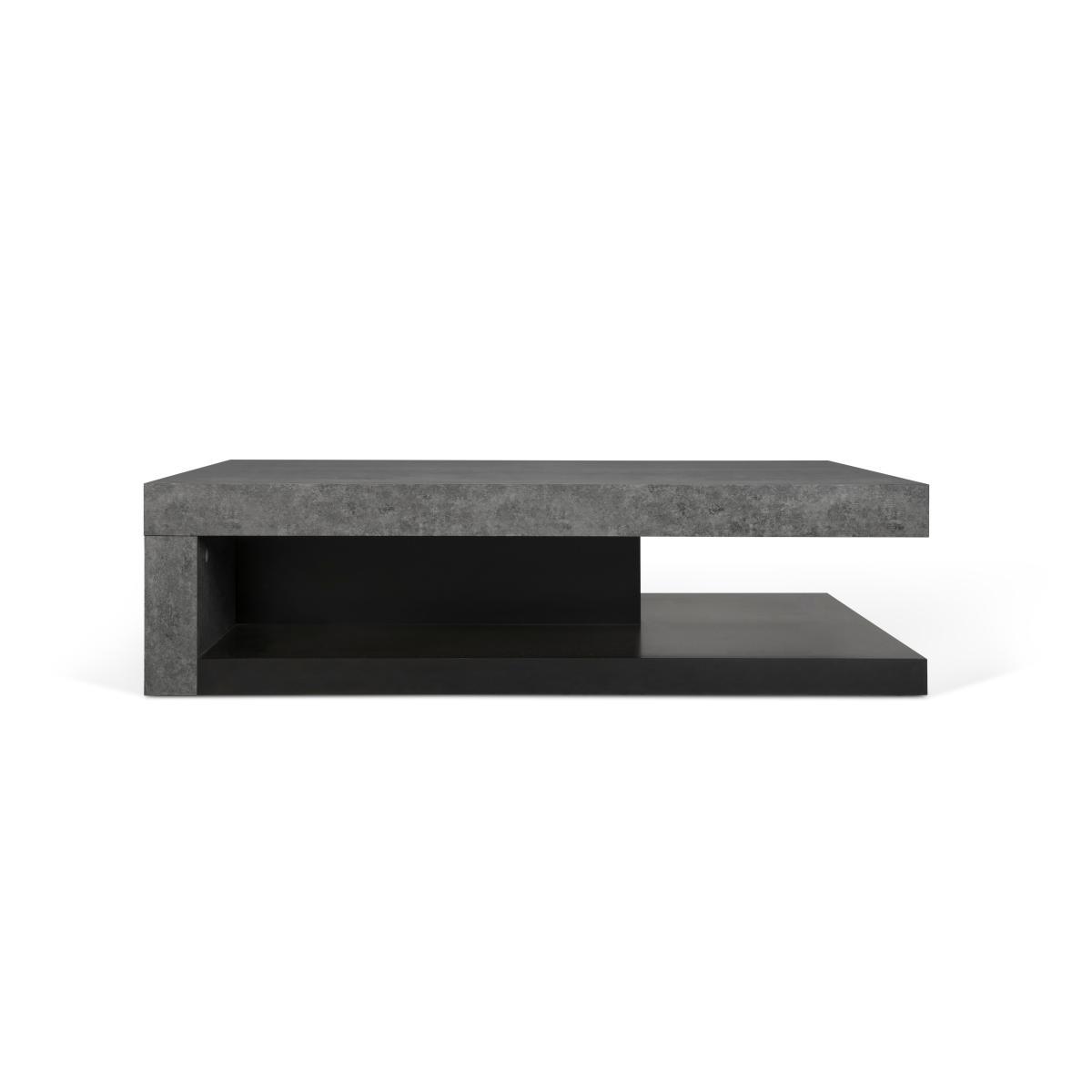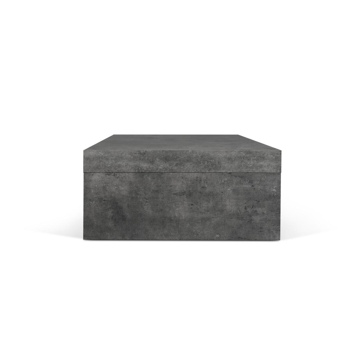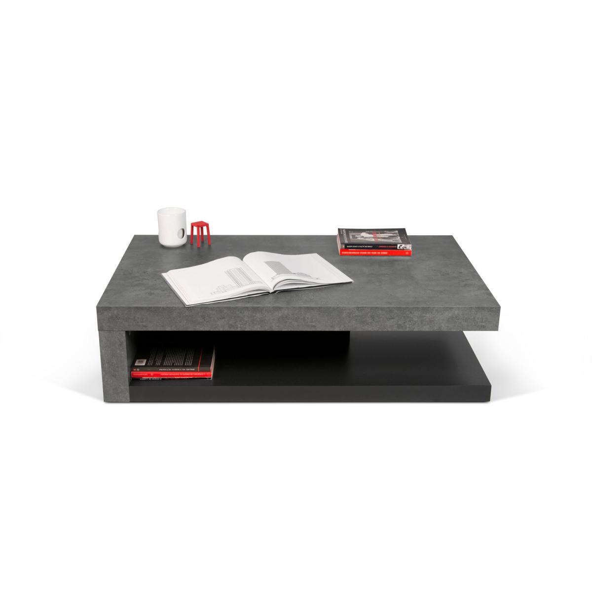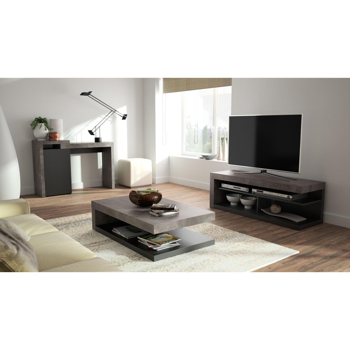 An industrial look for this coffee table which combines melamine with an ultra-realistic concrete effect with a lacquered black satin finish. The lines are solid and destructured. Under the tabletop is a vast storage space which is ideal for magazines, remote controls, baskets and boxes… This coffee table is composed of high-density particle and fibre panels made from recycled wood. Delivered as a DIY kit to facilitate transport and reduce its carbon footprint (easy to assemble, instructions included).
