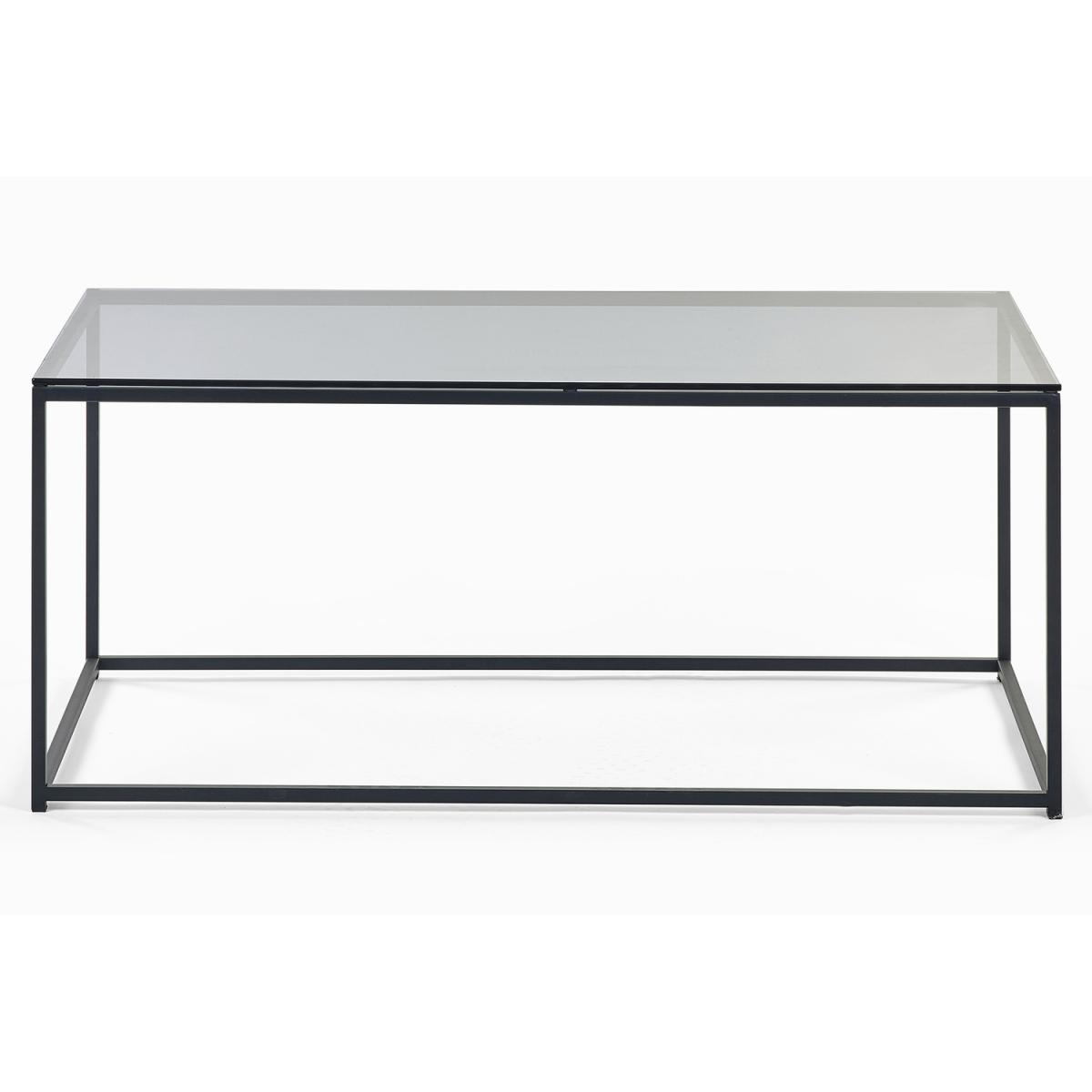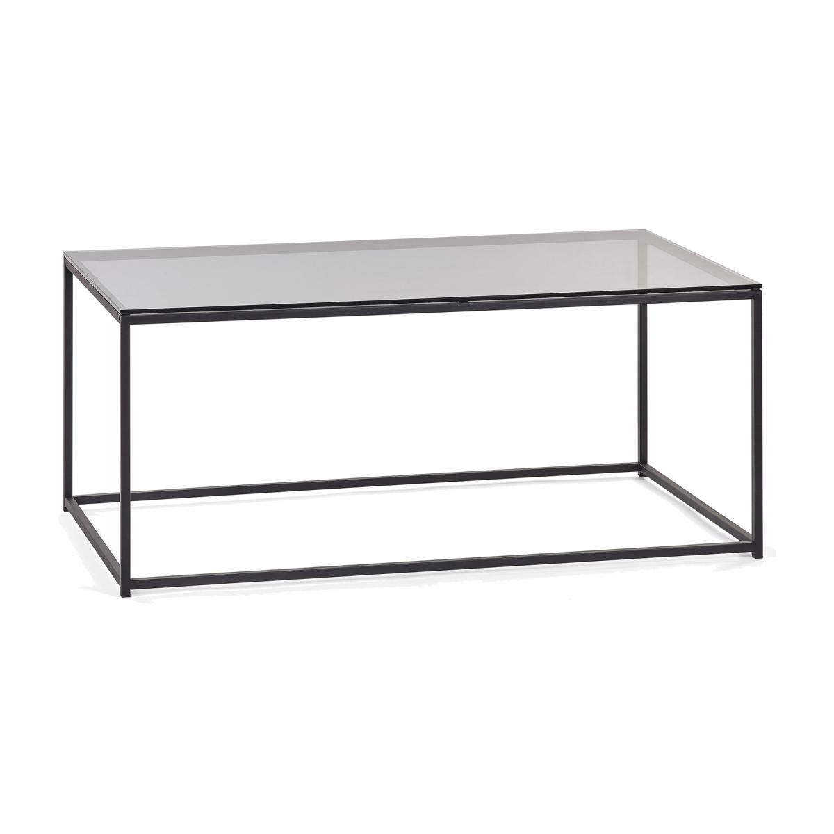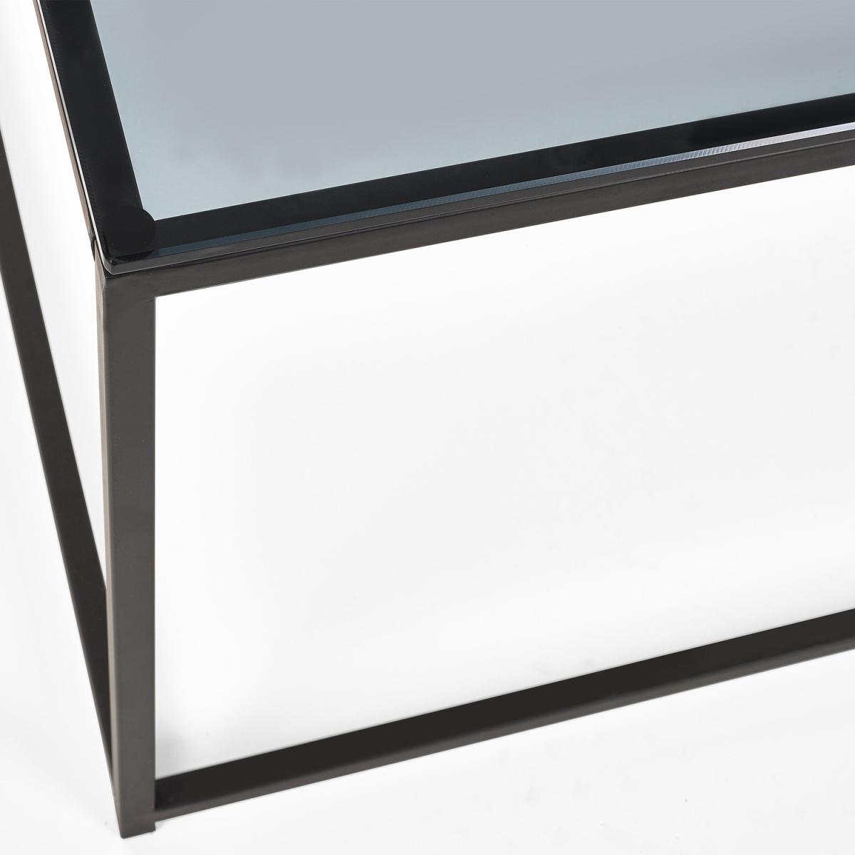 I often reach for this smoked-glass coffee table for its clean lines and sense of lightness - the slim black frame keeps a room feeling open rather than cluttered. It sits naturally in modern, industrial or Scandinavian schemes and pairs well with neutral upholstery or richly coloured rugs. For styling, try a low ceramic vase, a small stack of design books and a matte metal tray to keep things organised; avoid overcrowding so the table’s airy quality remains the focus.
