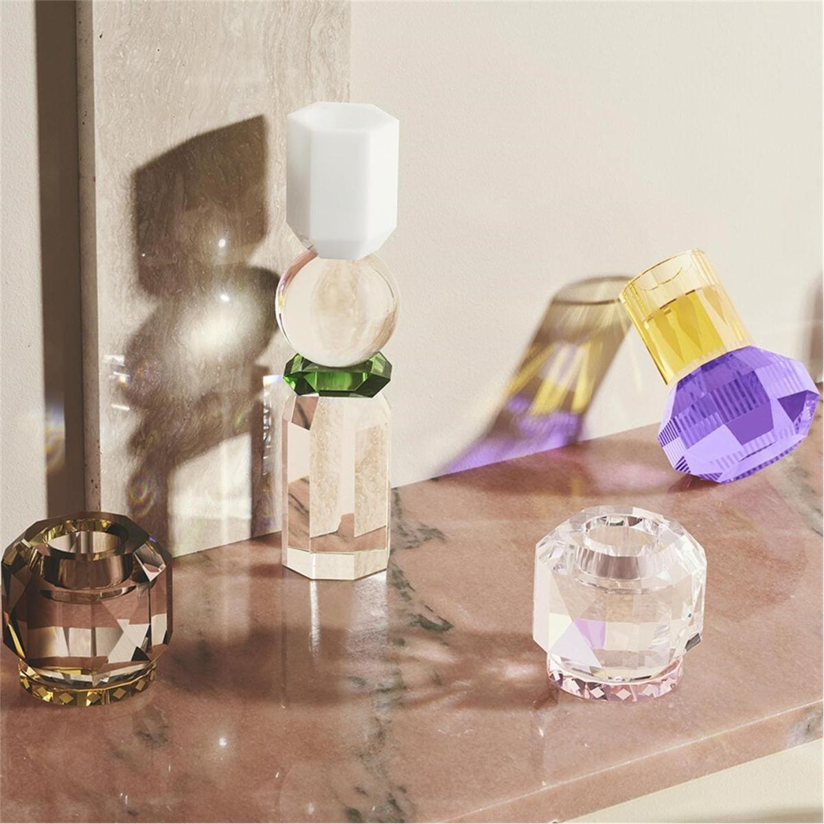 I’m a big fan of this crystal tealight - its sharp facets catch the flame beautifully, adding a subtle glow without overpowering a room. It works equally well in a pared-back Scandi scheme or a richer, maximalist setting, thanks to its clean lines and punchy colour. For styling, group two or three on a marble or mirrored tray alongside a low vase of foliage, or position one on a bedside table to create a soft, warming light at night.