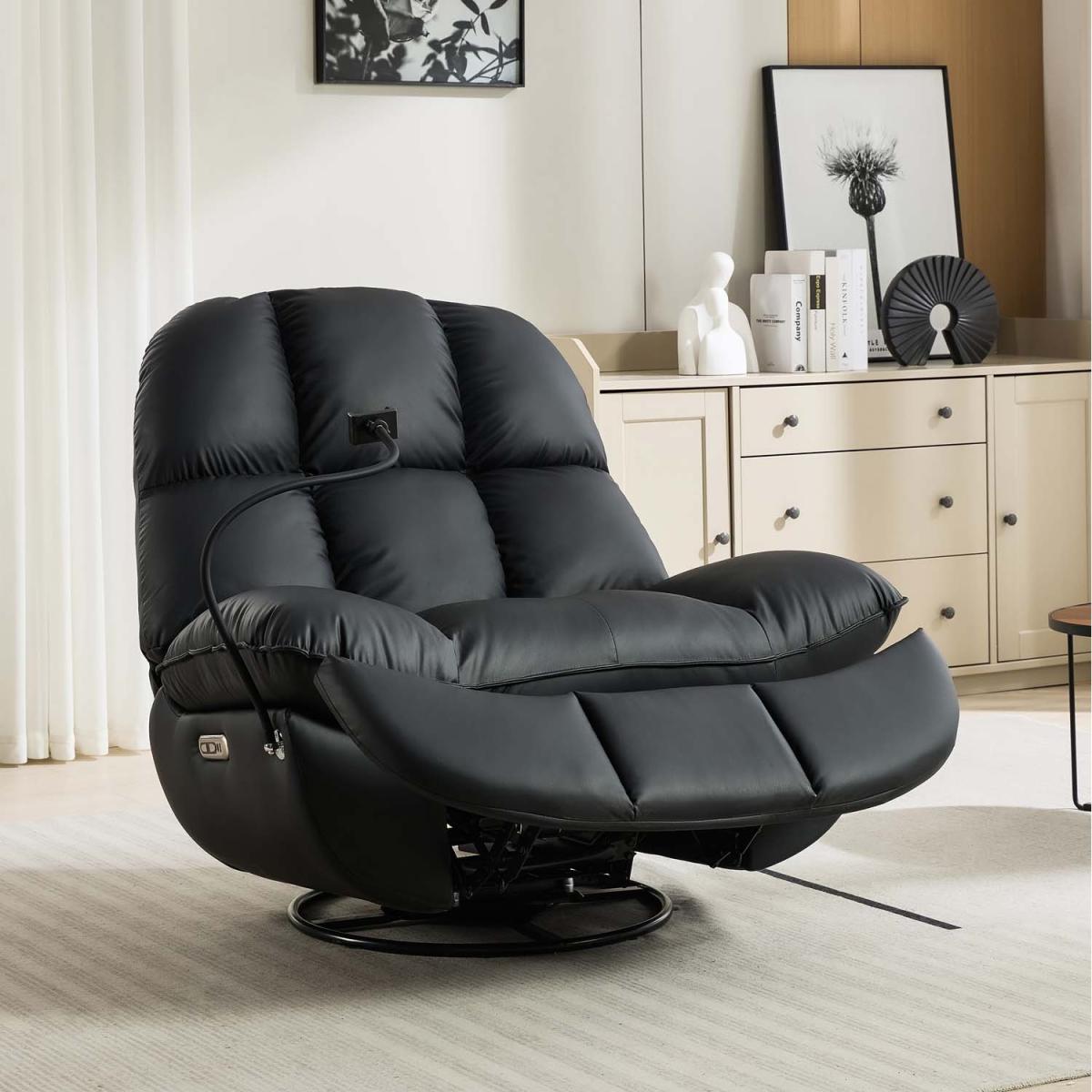 Introducing the Chicago Recliner Chair a modern twist on ultimate relaxation. Designed with a sleek profile, the Chicago seamlessly fits into any decor while offering maximum comfort. Featuring an electric recliner mechanism, you can easily adjust the seat to your preferred lounging position with just the touch of a button. Make use of the built-in USB and USB-C ports right next to the recliner button. The 360-degree swivel and smooth rocking motion add dynamic movement and flexibility, making this chair the ideal choice for any room. Upholstered in soft, durable Faux Leather, the Chicago combines foam padding and pocket springs for lasting comfort and support. The clever hidden storage under the arm provides a convenient space for your essentials, whether it's a book, tablet, or remote. Furthermore, make use of the brilliant hands-free phone holder. Adjust it to the optimal position, sit back and relax. Whether in your living room, office, or bedroom, the Chicago Recliner Chair offers modern design and multi-functional features, ensuring comfort and style at every angle. Available as an Electric Recliner and as a Manual Recliner. Dimensions: Height: 101cm Width: 106cm Depth: 98cm Seat Width: 52cm Seat Height: 52cm Seat Depth: 55cm Backrest Height: 61cm Recline Dimensions: 101x106x98cm