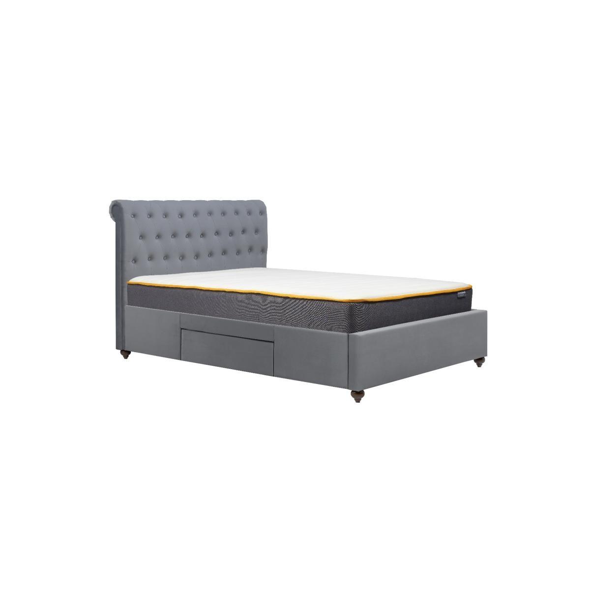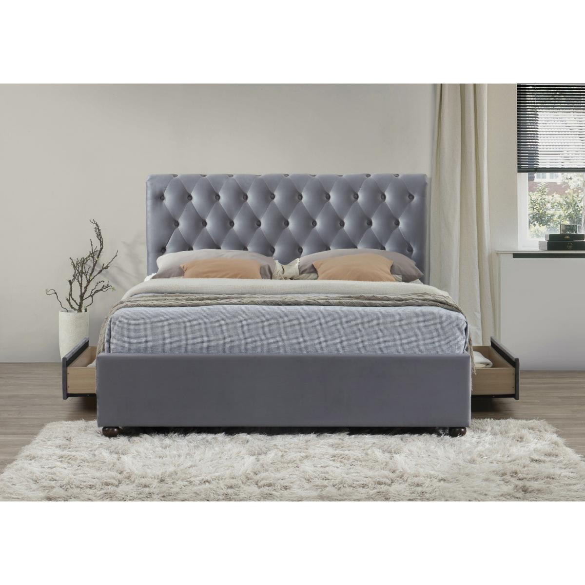 The Chicago is an exceptional bed which features a stylish tufted headboard and is upholstered in luxe grey velvet. Offering a modern twist on a classic look, making the Chicago bed the perfect addition to any bedroom. Upholstered in a Luxurious grey velvet. Two spacious drawers Sprung slatted base