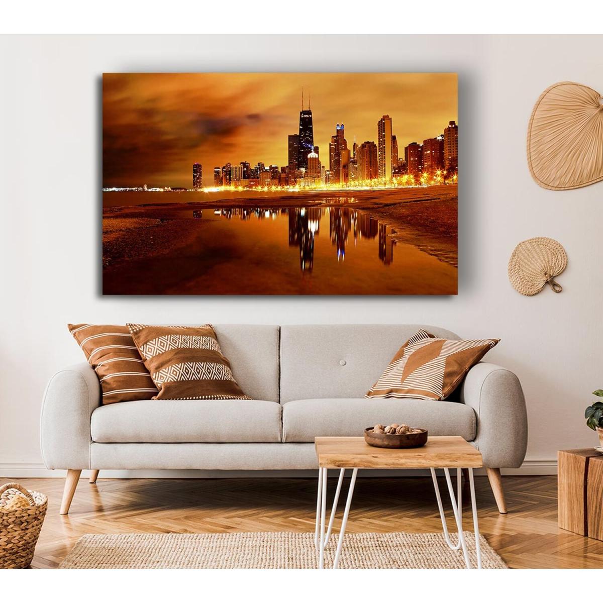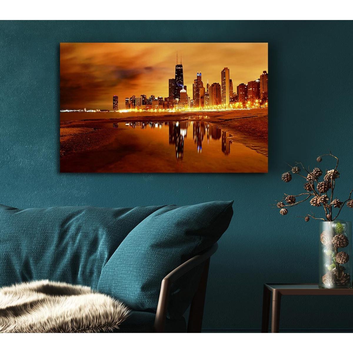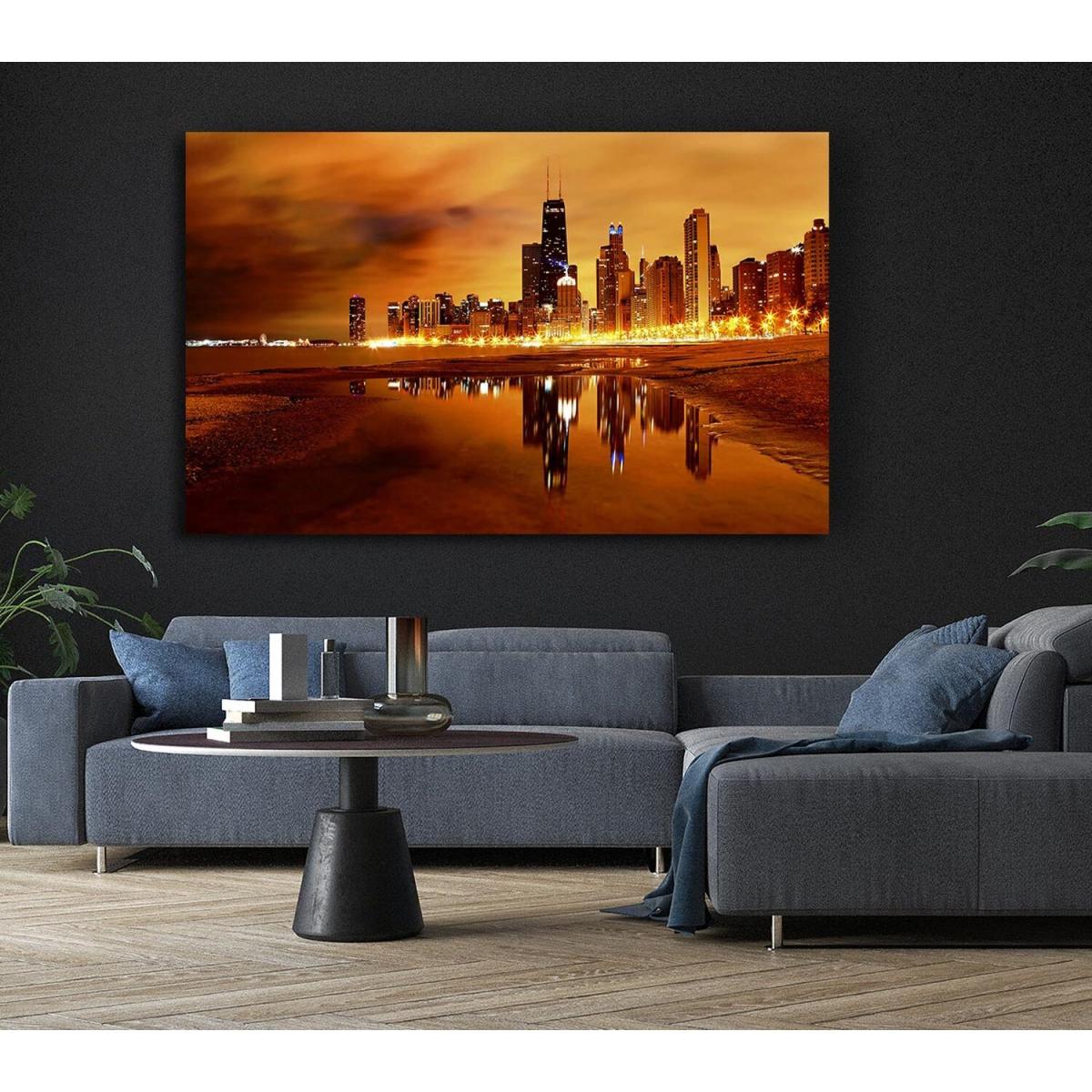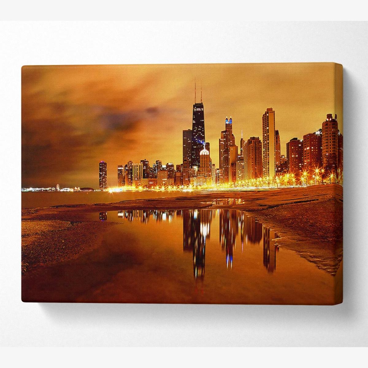 Chicago Late Evening Canvas Print Wall Art - Yellow / 101.6cm