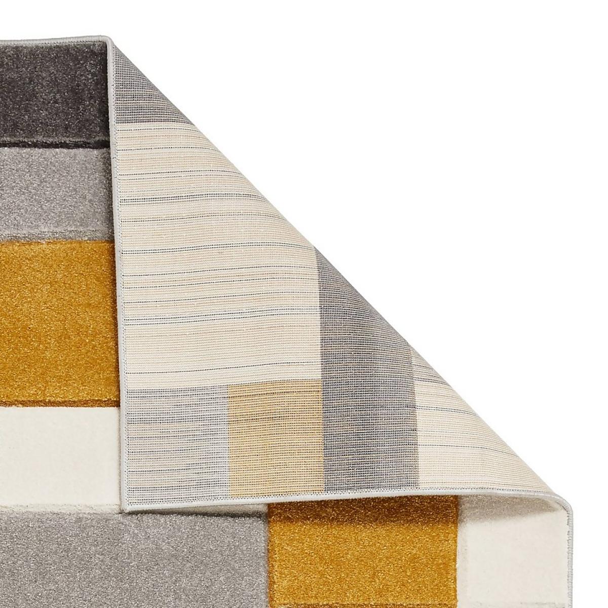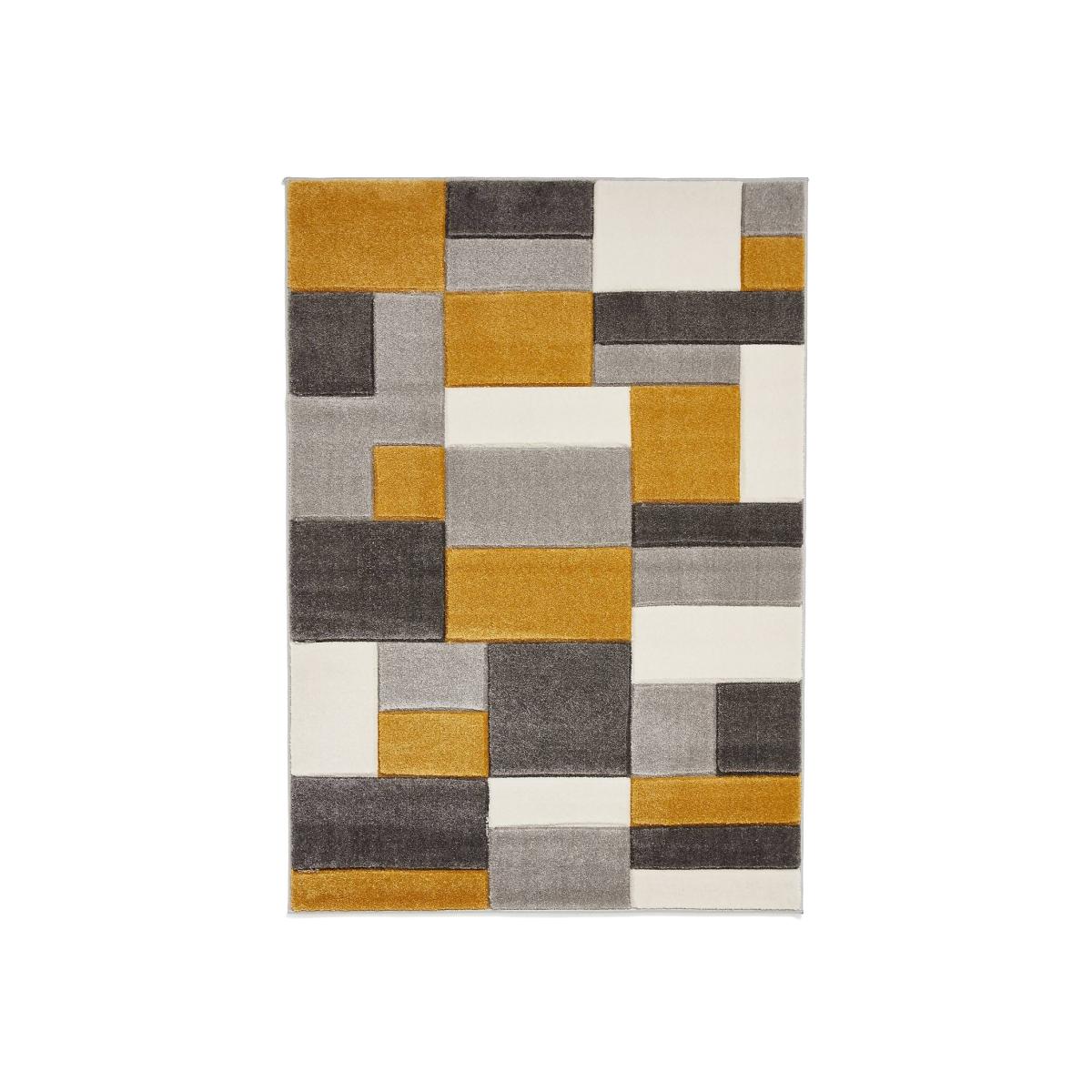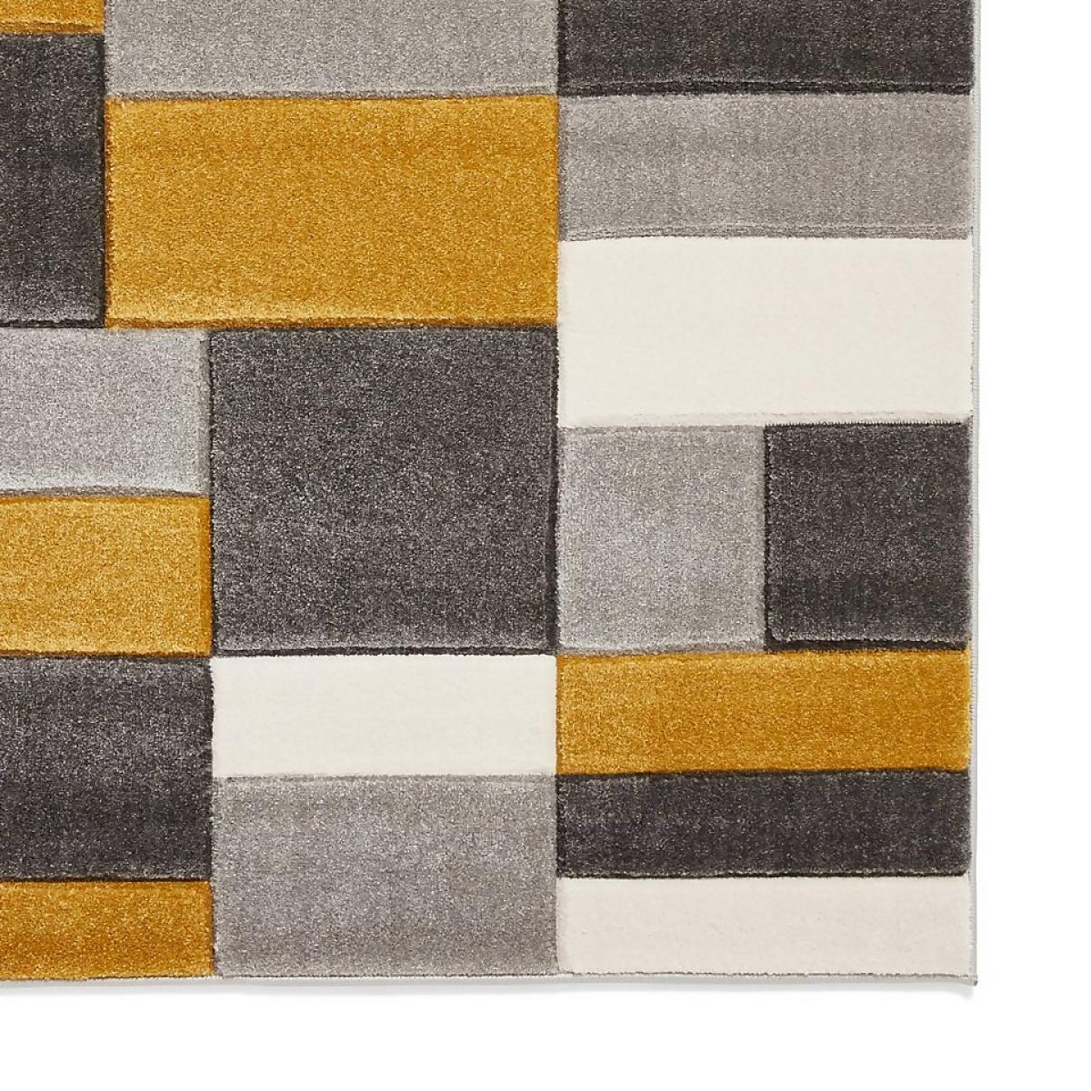 The Chicago Carved Geometric Rug, an eye-catching addition to any modern living room. With its unique geometric pattern and stylish blend of grey and yellow tones, this rug is the perfect way to add a touch of contemporary flair to your home decor.