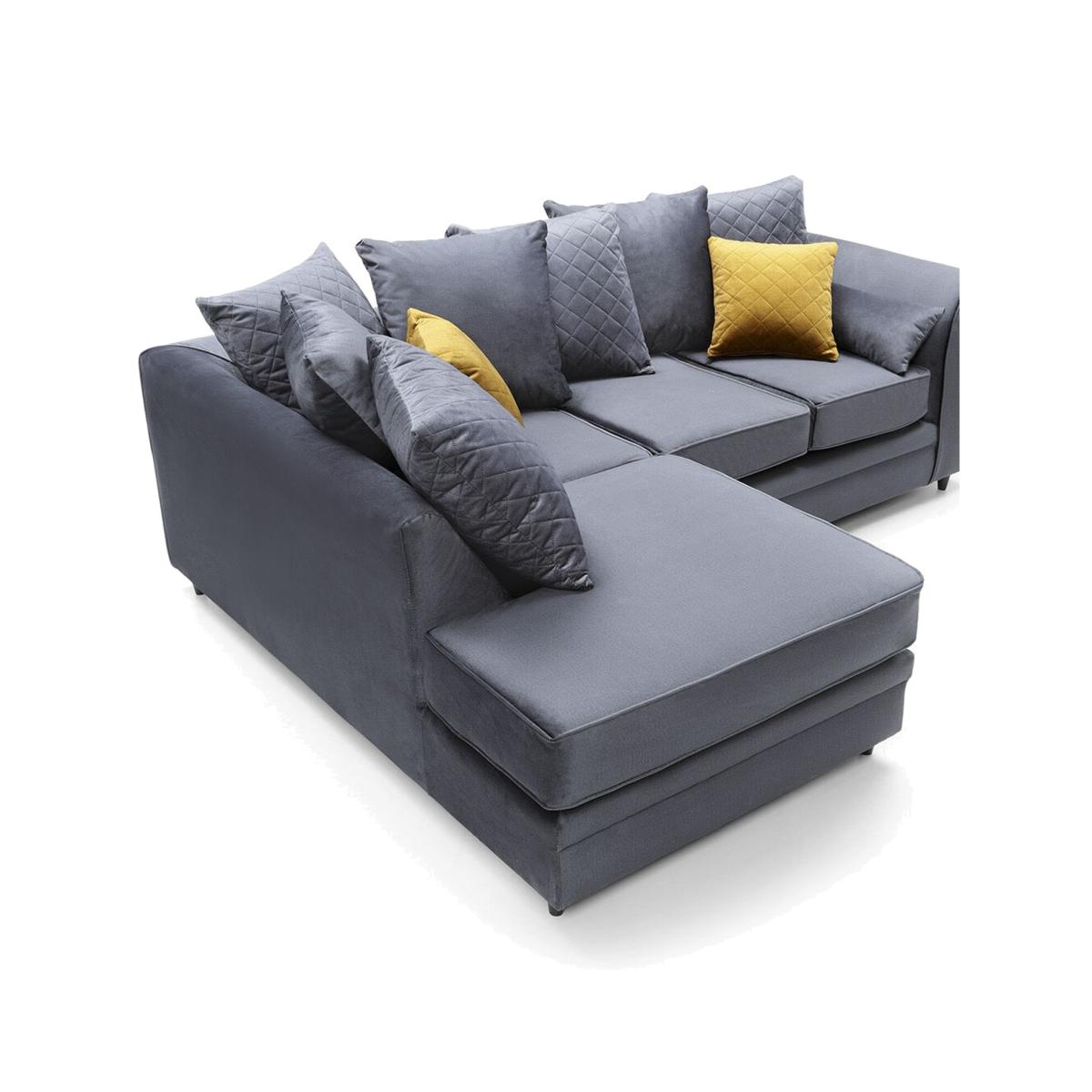 A sophisticated velvet corner sofa with fashionable and decisive clean lines. Available in understated, bold and neutral colour shades. Perfect for any contemporary living space. Angular arms, scatter cushions and a couple of tasteful toss pillows provide an elegantly modern look and feel. The luxurious feeling velvet fabric is coated with a special hydrophobic coating that will prevent stains, allowing you to simply wipe away accidental spills, spills that you know will happen! Short tapered legs give this corner beauty just enough lift to speak out its style.