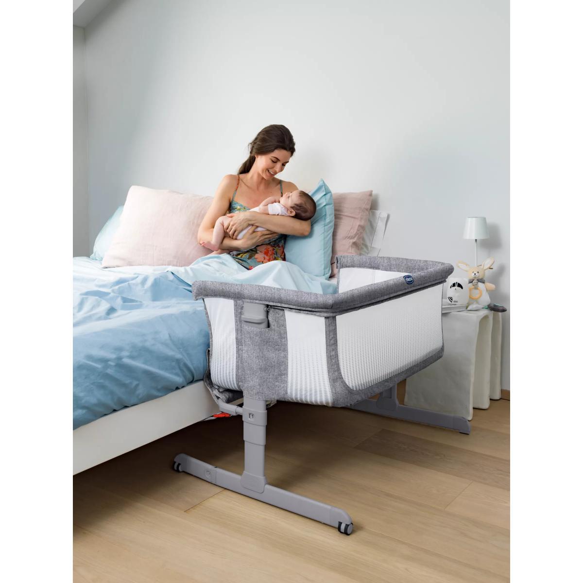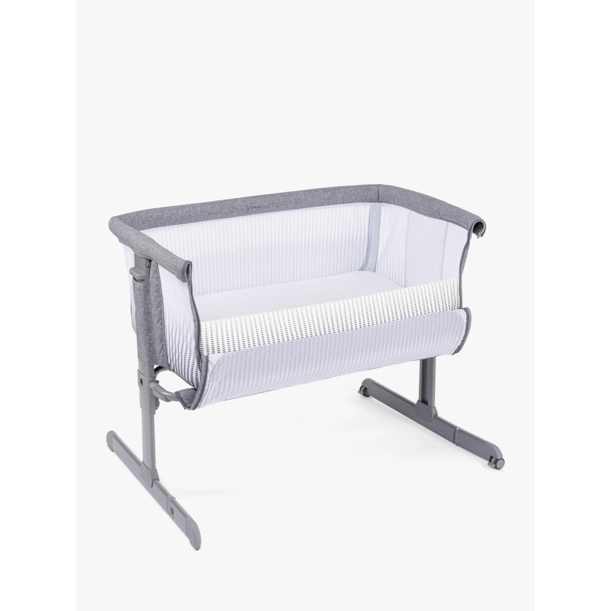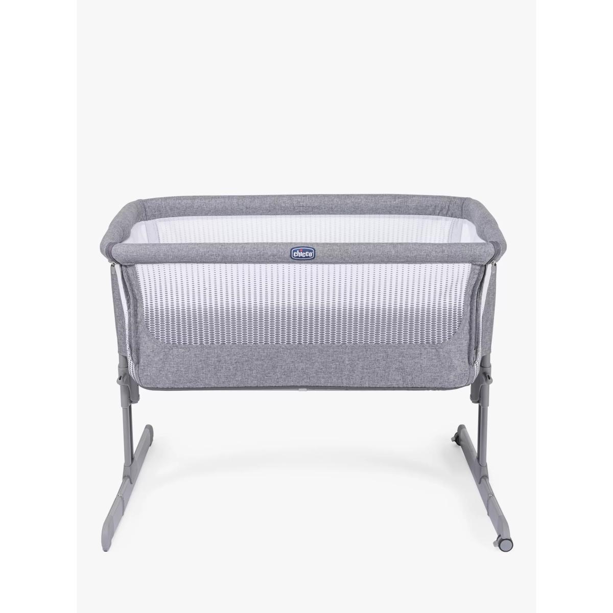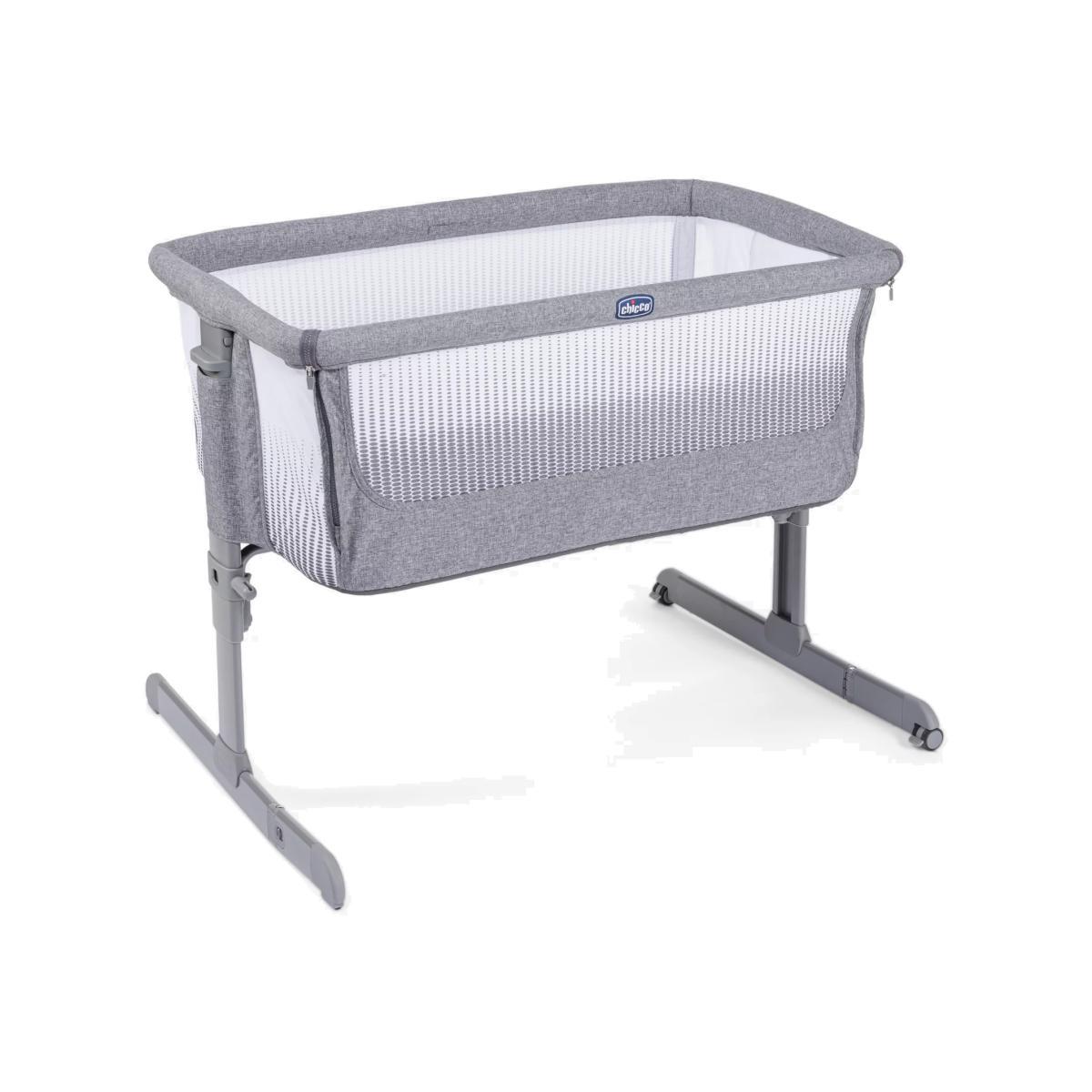 The Chicco Next2. Me Air is designed to allow your baby to sleep safely next to you without sharing the same bed. A 3 in 1 solution, it adapts to your needs as a side-sleeping crib for safe co-sleeping, a stand-alone crib in your nursery or as travel crib thanks to the travel bag included. With its wider netted sides to improve airflow around the crib, and enhanced visibility into the crib, you can rest assured that baby is comfortable, and can check up on baby from the comfort of your bed without disturbing their sleep. Designed with a rounded, cocooning shape to create a cosy sleeping environment for your baby, it has a special safety harness that attaches to your bed frame to securely hold the crib in position for baby’s safety. Adjusting to 6 different height levels to easily adapt to any bed, it can also be used in a tilting mode to help support with reflux and congestion. Key Features: Suitable from birth to 6 months Tilt mode to help with congestion and reflux 6 adjustable height levels Soft mattress included with removable and washable lining Padded sides for extra comfort 2 wheels with brakes for easy manoeuvring around the home