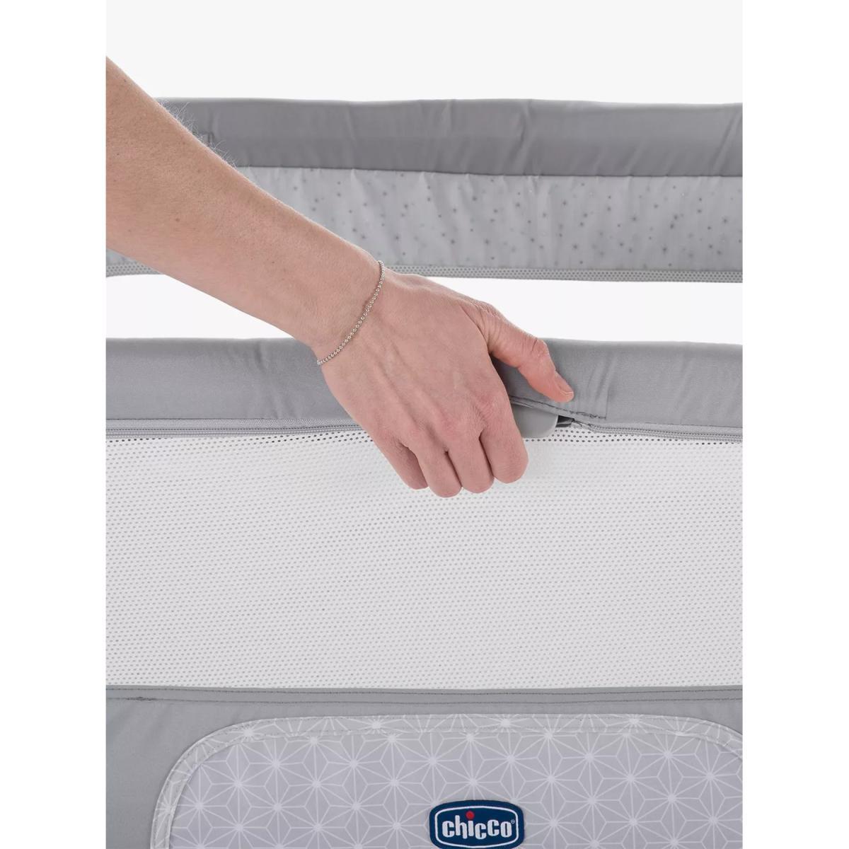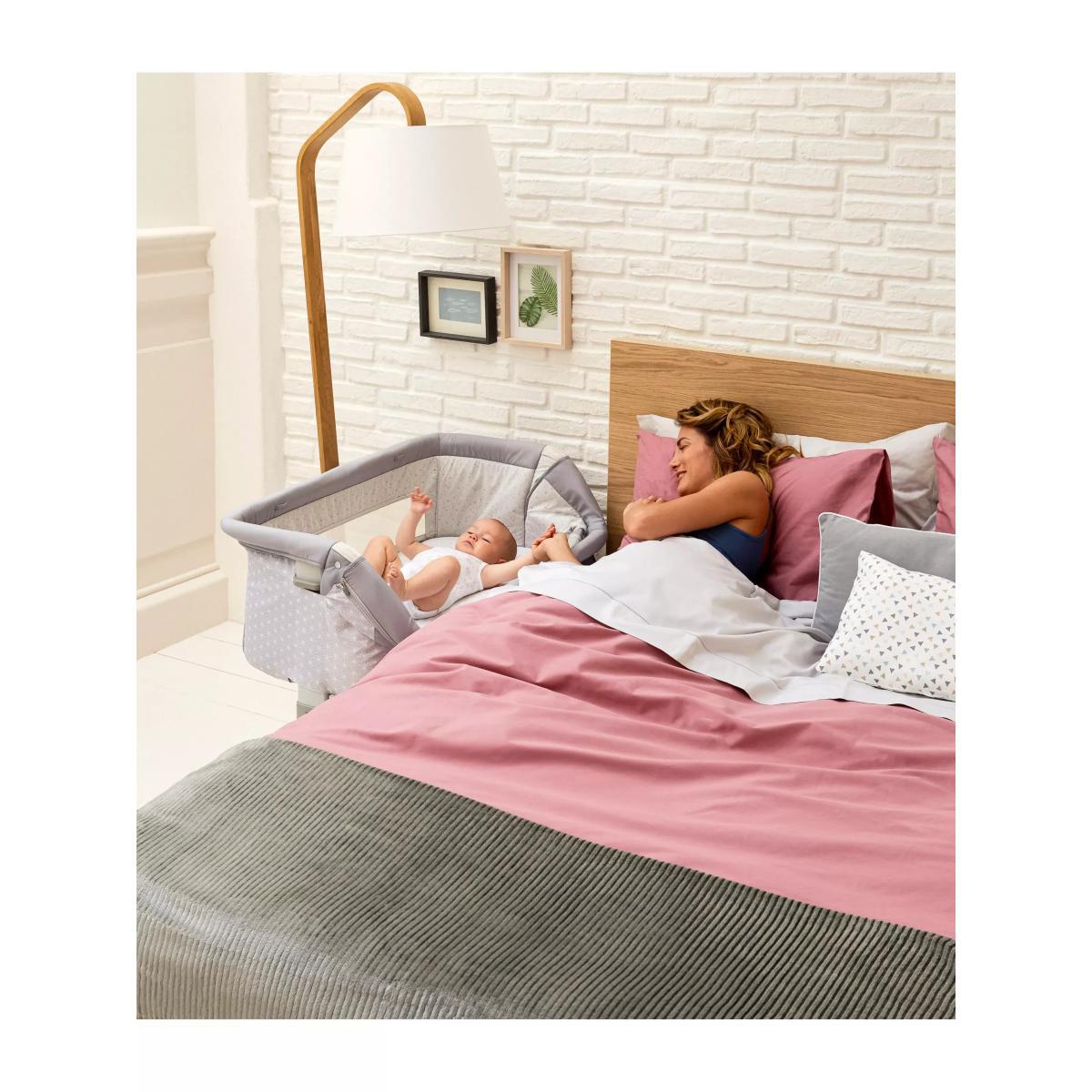 The Chicco Next2me Dream is the new side-sleeping crib of the Chicco family, designed to allow you to sleep next to your baby without sharing the same bed. A 3 in 1 solution that can be used as a side-sleeping crib, stand-alone crib or as travel crib thanks to the travel bag included. It features all the benefits of the classic Chicco Next2me, with three additional features: One-hand side panel to easily change configuration Double mode: fixed or rocking 11 adjustable height levels Please note: The height of the parents' mattress must be higher than or the same as that of the side of the crib. If this is not the case, use the adjustment system to achieve this condition on both sides.