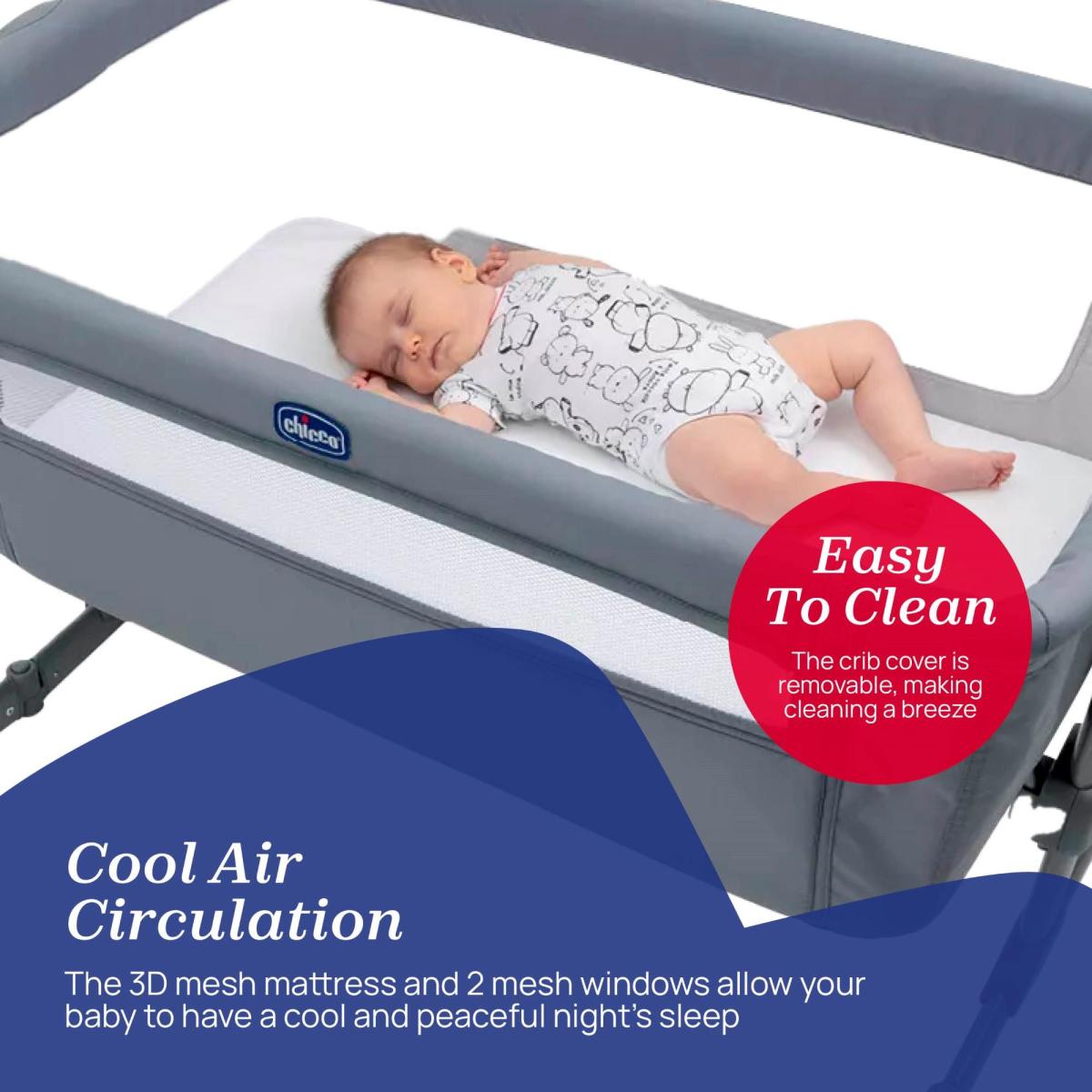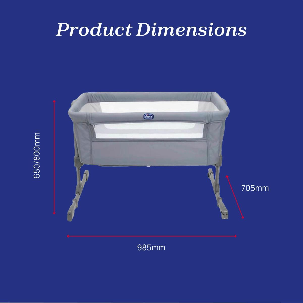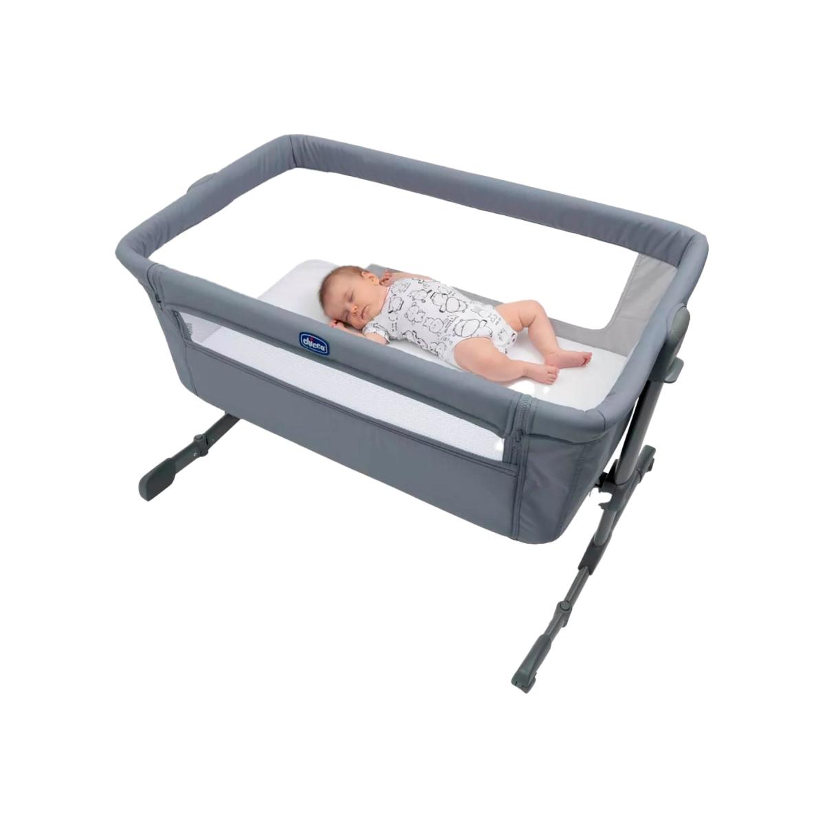 * Suitable for 0-6 months* Ideal for co-sleeping* Travel bag and mattress included* Foldable feet* 6 adjustable height levels The Chicco Next 2 Me Essential Crib 1 is perfect for babies from 0-6 months, with a maximum weight capacity of 9kg. It includes a travel bag for easy transport, foldable feet, and 2 swivel wheels with brakes. The mattress is included, and the crib can be tilted with 6 adjustable height levels. Compatible with beds from 49cm to 65cm in height.