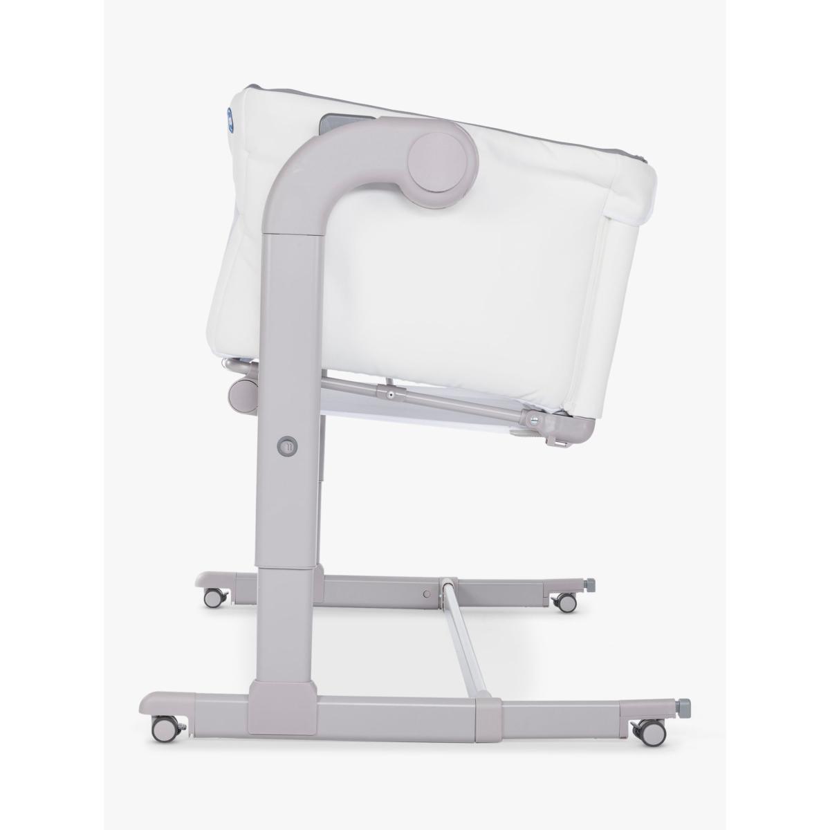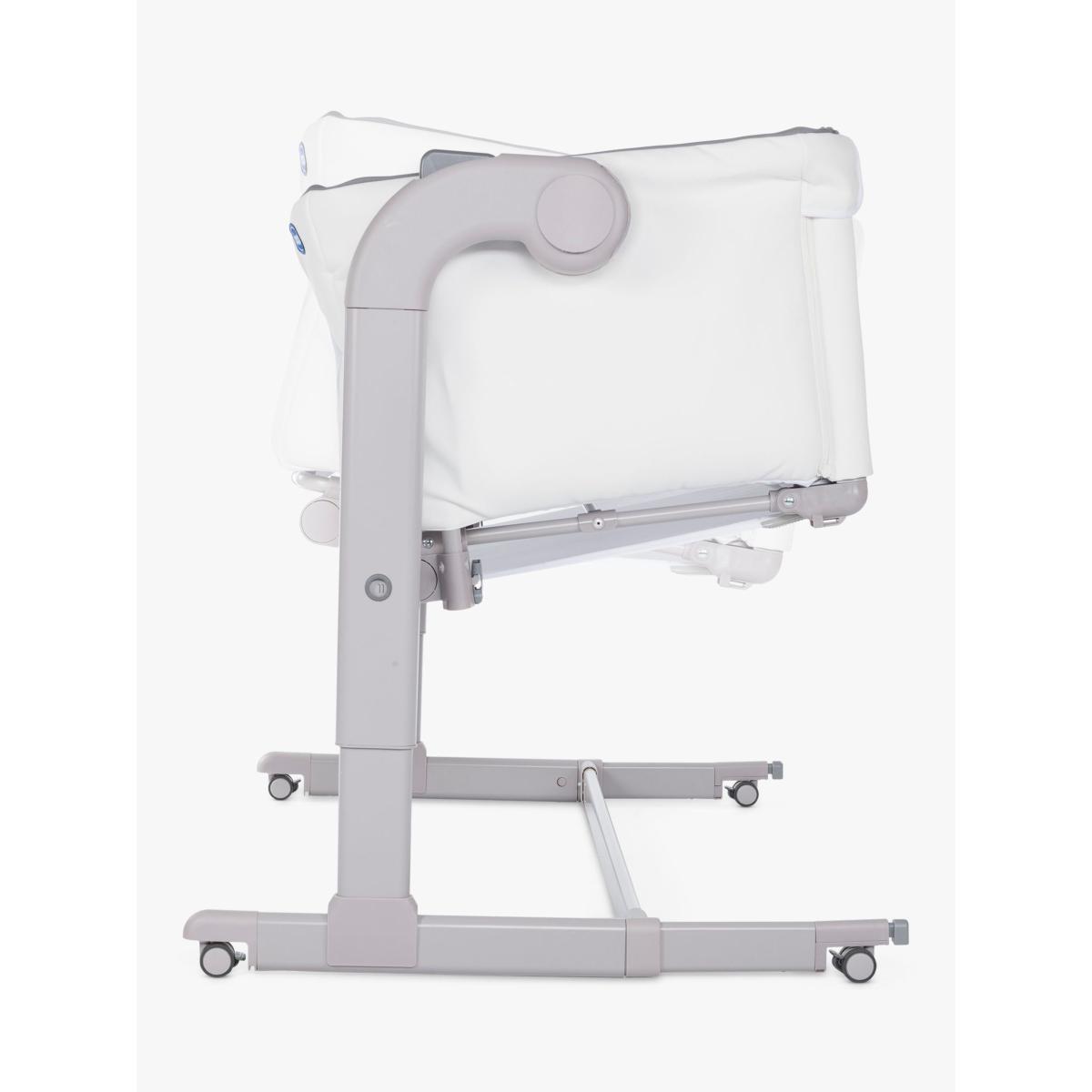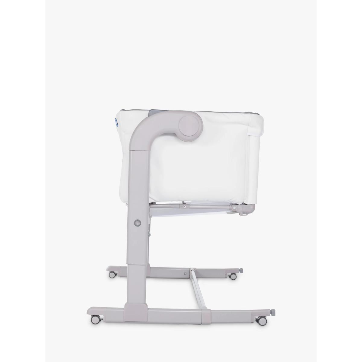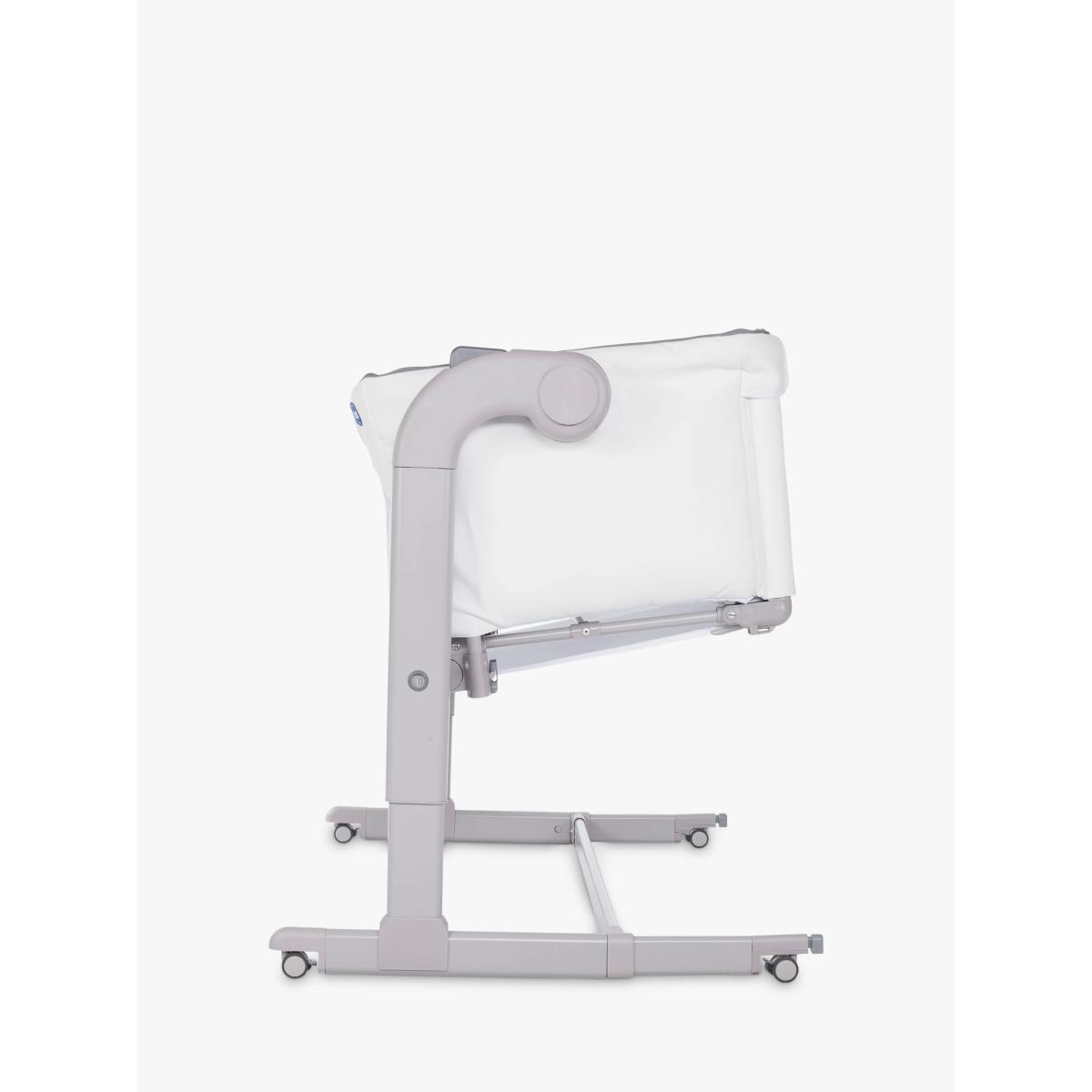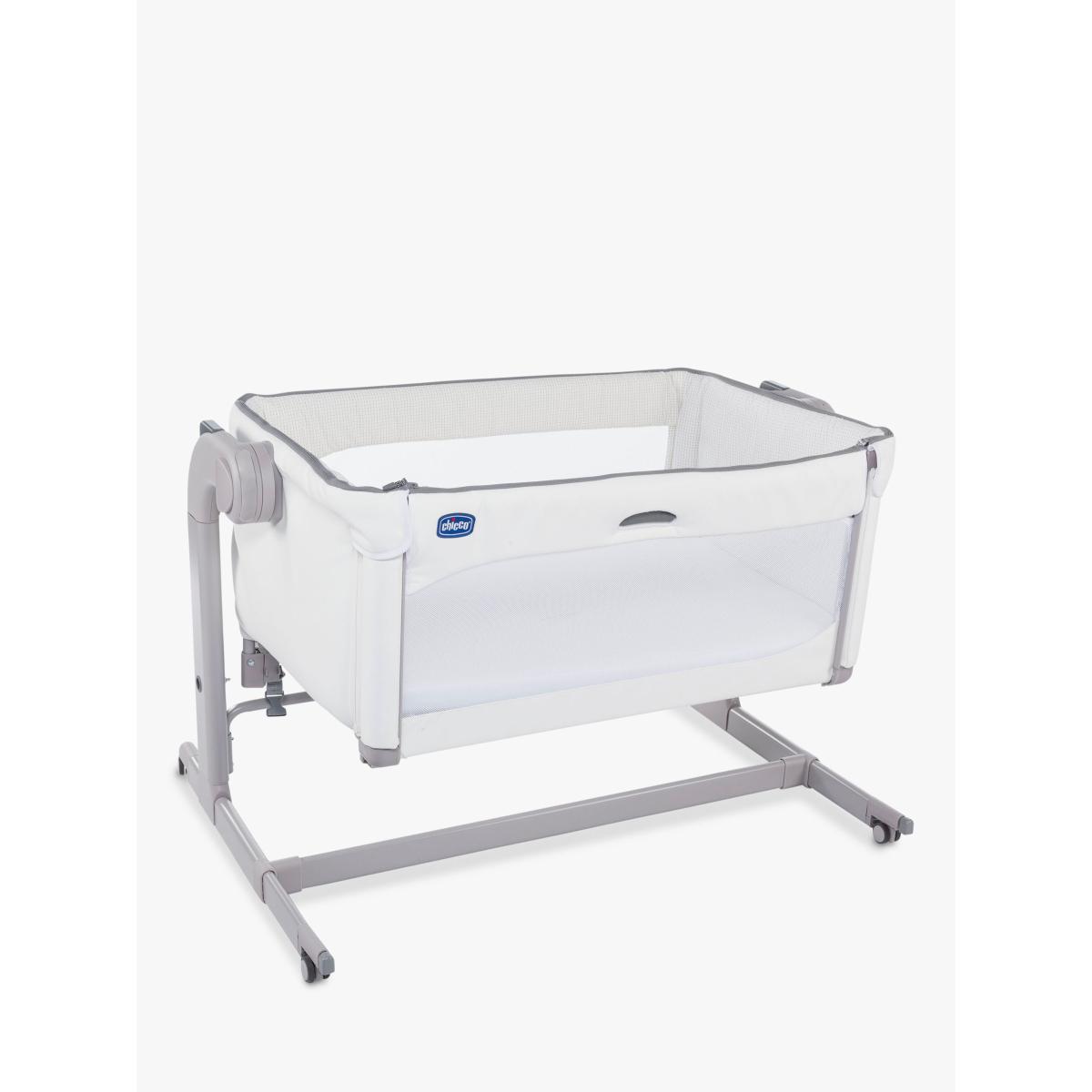 The award-winning Chicco Next2. Me Magic crib allows you to sleep next to your baby without being in the same bed. Your baby can safely sleep in the crib next to you, allowing you to respond quickly, whether for feeding, changing or night time snuggles. Boasting a one-handed sliding side panel for easy access to little one, and a rocking mode when in stand-alone sleeping mode, soothe baby back to sleep in no time. Easily attaching to most types of adult beds using the safety straps provided to enable safe side-sleeping, it has eleven height settings and clever telescopic feet so that you can also use it with beds with drawers or on divan base beds. Tilting by up to four levels to help baby's digestion, improve breathing and reduce reflux, Next2. Me Magic has two large mesh windows and a 3D mesh mattress cover to improve airflow throughout the crib. Built with four wheels to move around the house if needed, it also comes with a travel bag for easy transportation and storage. What's included: Chicco Next2. Me Magic Mattress Safety harness kit Travel bag Please note: The height of the parents' mattress must be higher than or the same as that of the side of the crib. If this is not the case, use the adjustment system to achieve this condition on both sides.