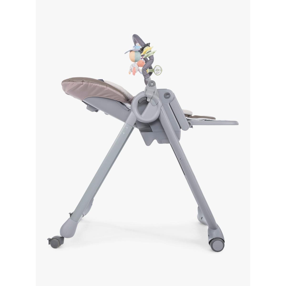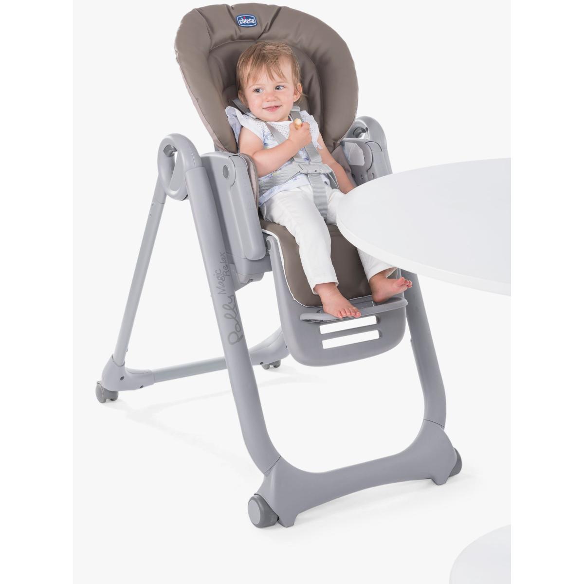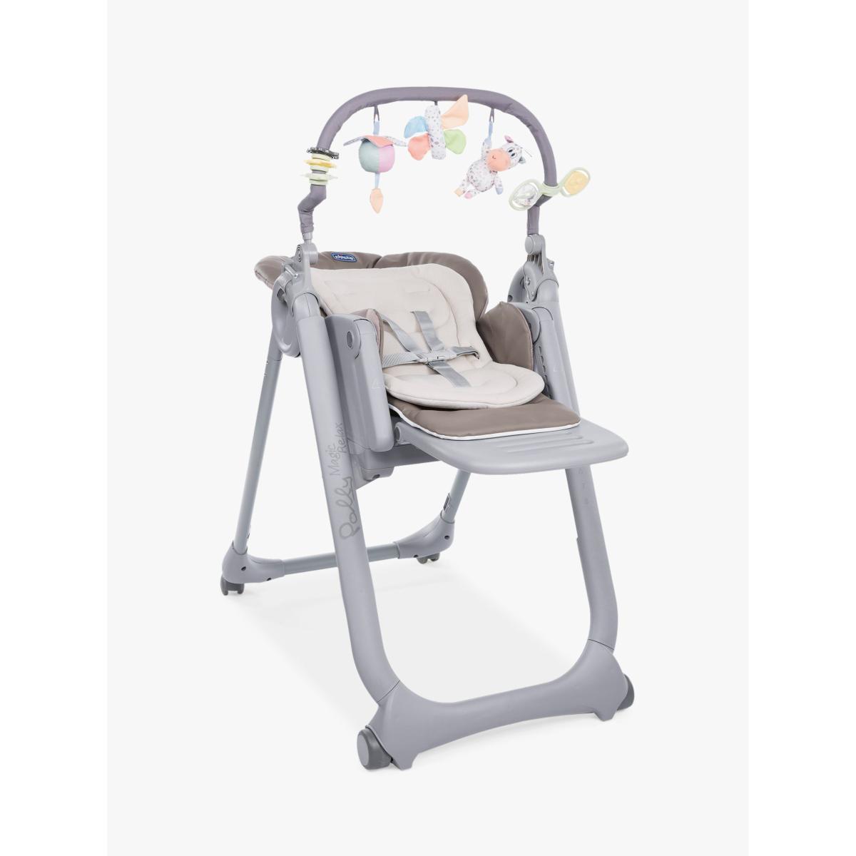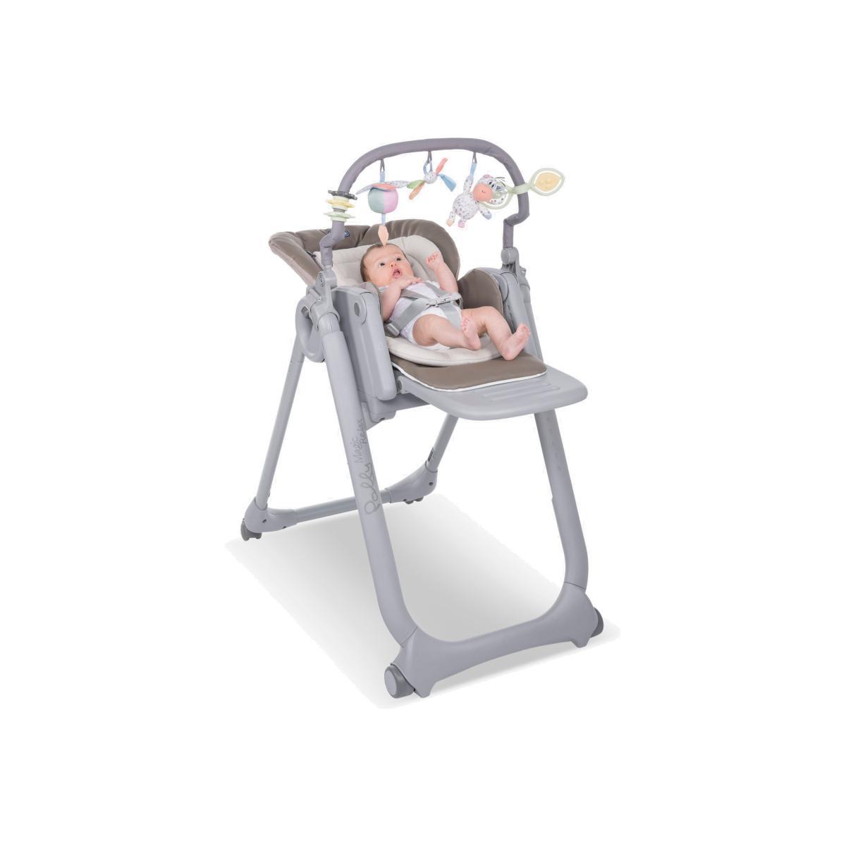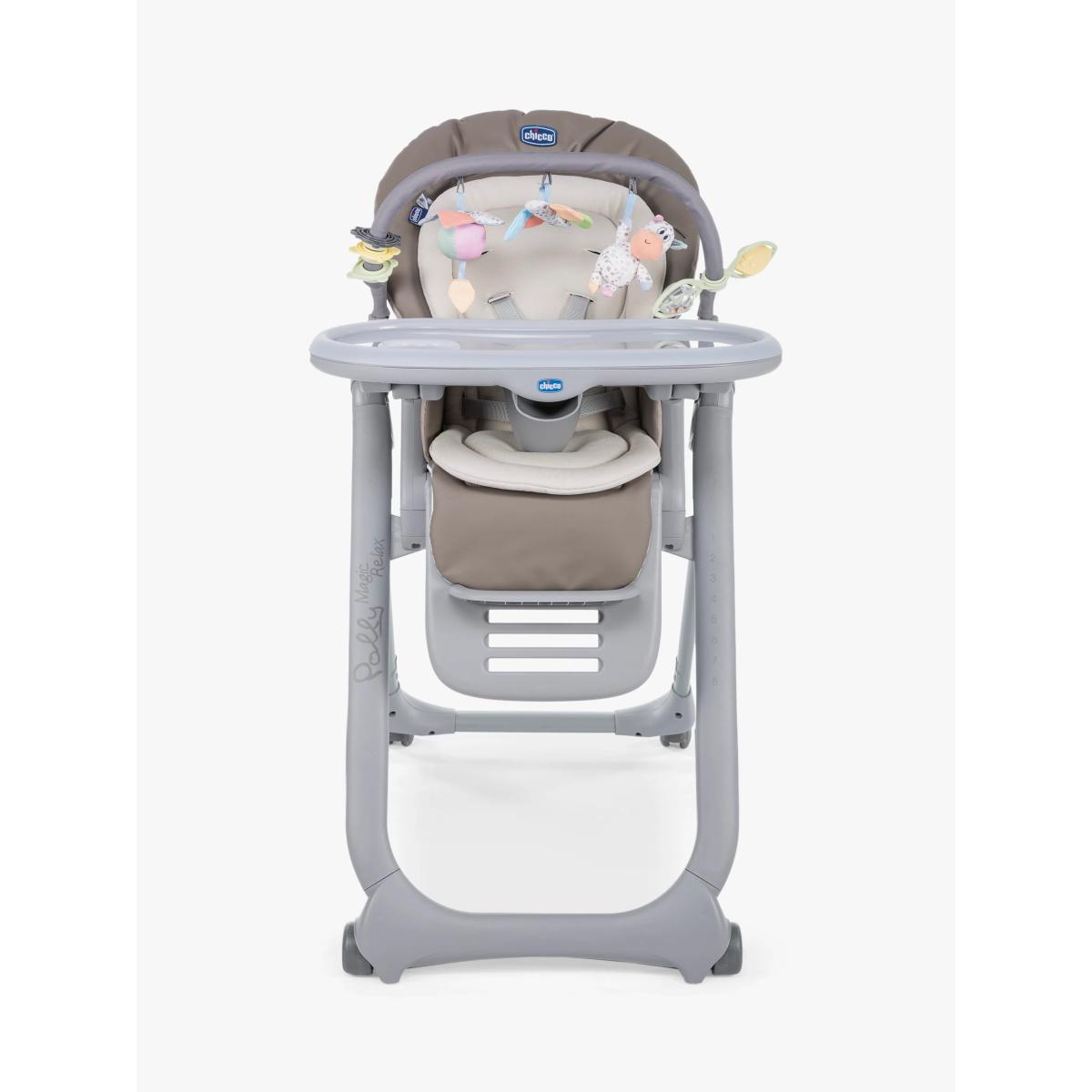 Meet the new Polly Magic Relax highchair, the cocooning that follows your baby's growth! Suitable from birth, it comes with a padded reducer and an entertaining toy bar to cuddle and stimulate your child, plus a whole host of other features. Key Features: The reducer is unique by being double face to ensure maximum comfort during summer and winter Super versatile thanks to 8 adjustable height positions Removable tray so you can attach it to the table and you and baby can enjoy meals together Both the footrest and the leg rest are adjustable to give maximum comfort to your baby It is easy to fold and free-standing, while the 4 wheels make it easy to move from one room to another Super soft, washable material that's stylish and practical 3 seat positions with a lie-flat position that makes it suitable from birth.