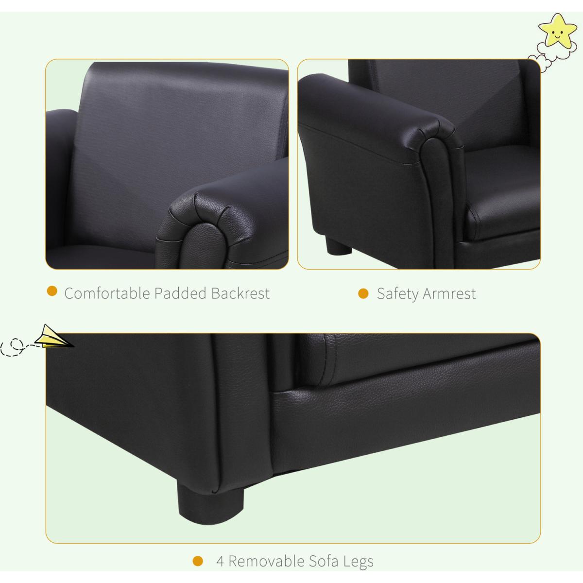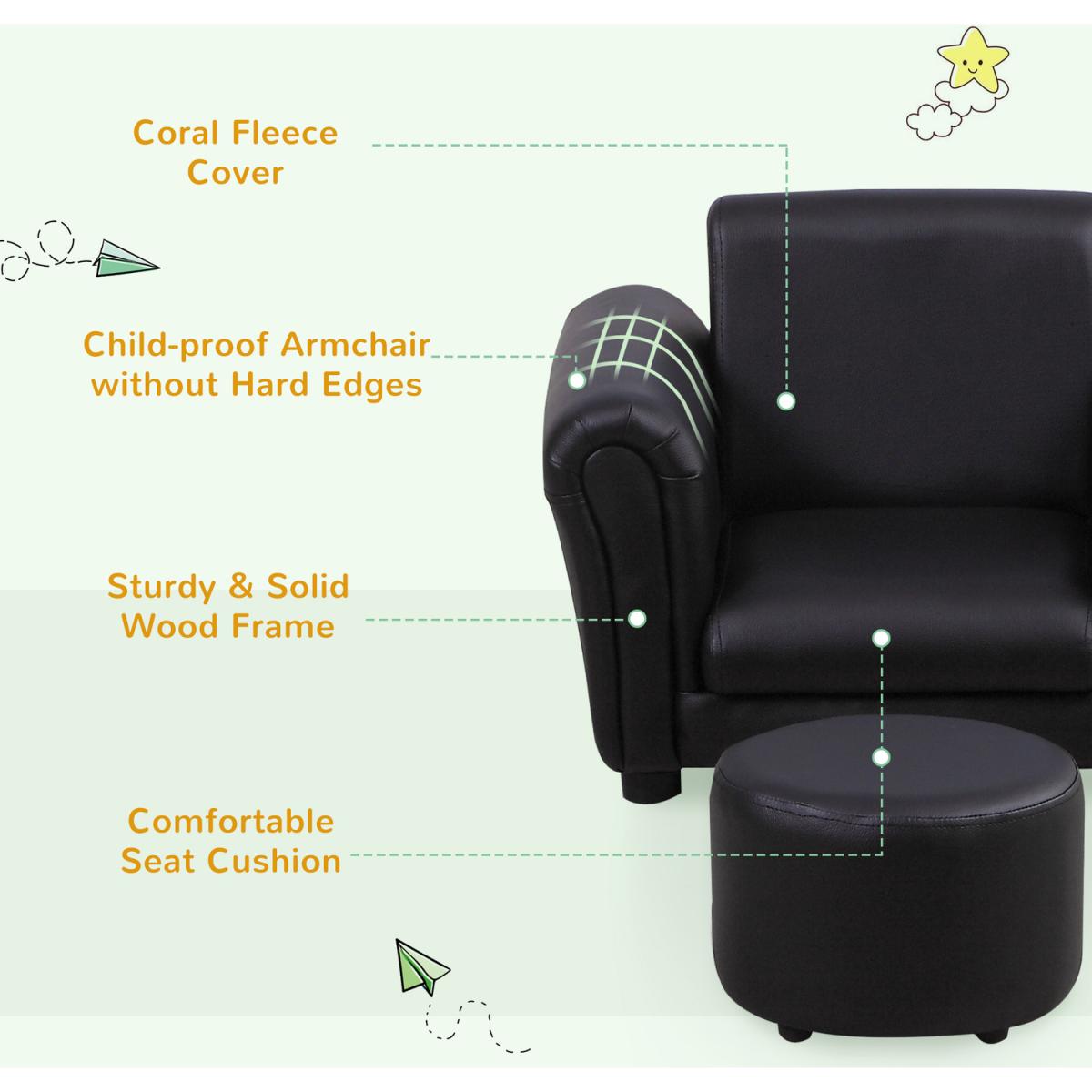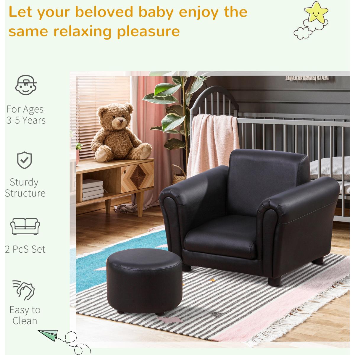 Why must adults always enjoy all the fun The HOMCOM children's sofa set allows your children to enjoy the same relaxation, but the size is small and suitable for children! It features an armchair of two-side armrest and a footstool, providing your children with ultimate comfort and security. The solid wood structure and soft padding can support a weight of 50 kg(sofa). Recommended for children from 18 to 36 months. An ideal gift for your little ones in their childhood and will be a perfect decoration in the nursery or playroom.
