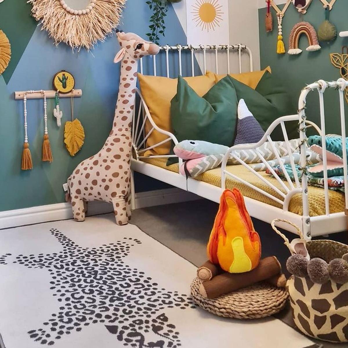 I love the children's cream grey leopard animal print rug for adding a touch of fun and texture to a nursery or playroom. Its neutral tones make it versatile, working well in both modern and eclectic interiors, while the animal print injects a playful vibe perfect for kids’ spaces. It can be styled seamlessly alongside colourful bedding or soft furnishings, acting as a calming base. Practical styling tips include layering it under a small table or reading nook, positioning nearby stuffed toys or plush cushions to create an inviting corner, and pairing it with other natural textures for a cohesive look. This rug’s size is great for defining play zones without overwhelming the room, making it a smart and stylish addition for any child's room.