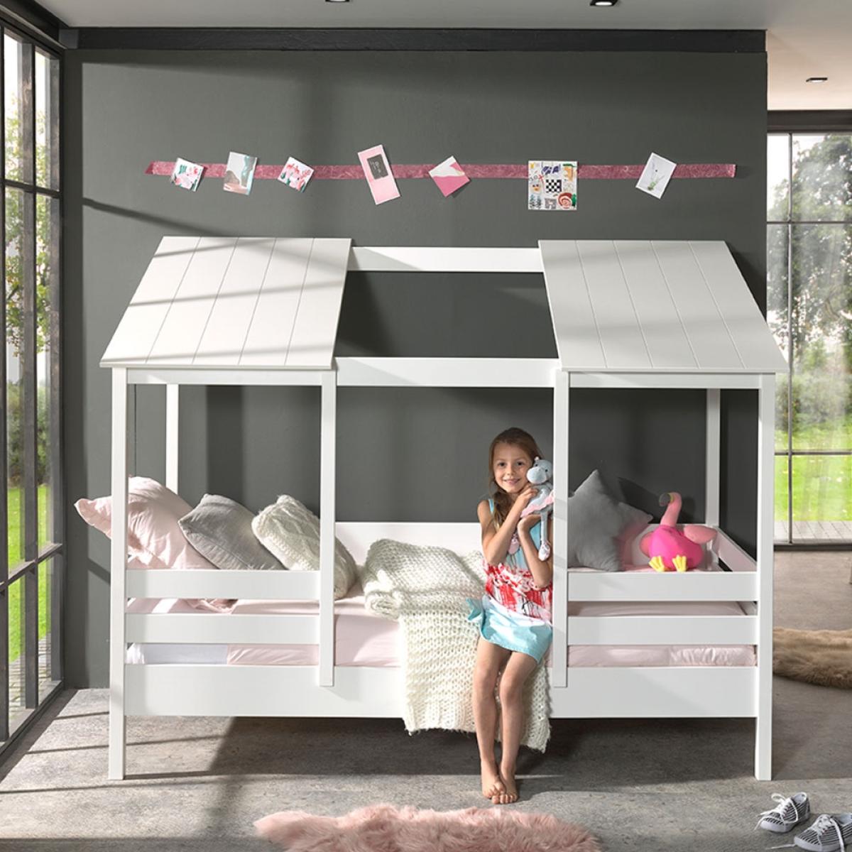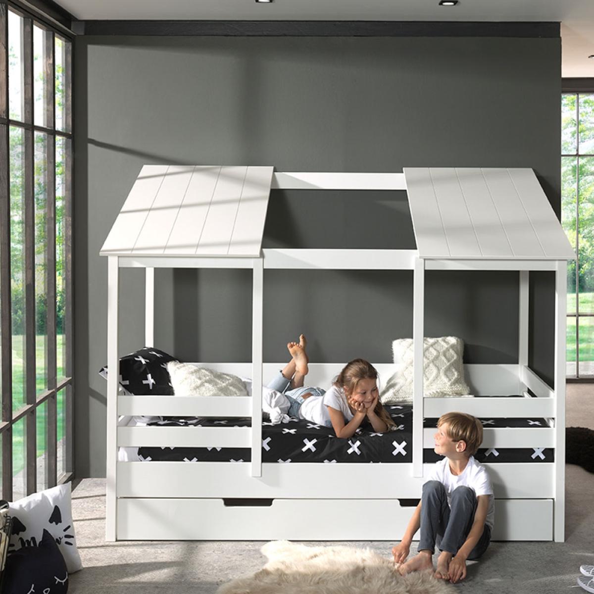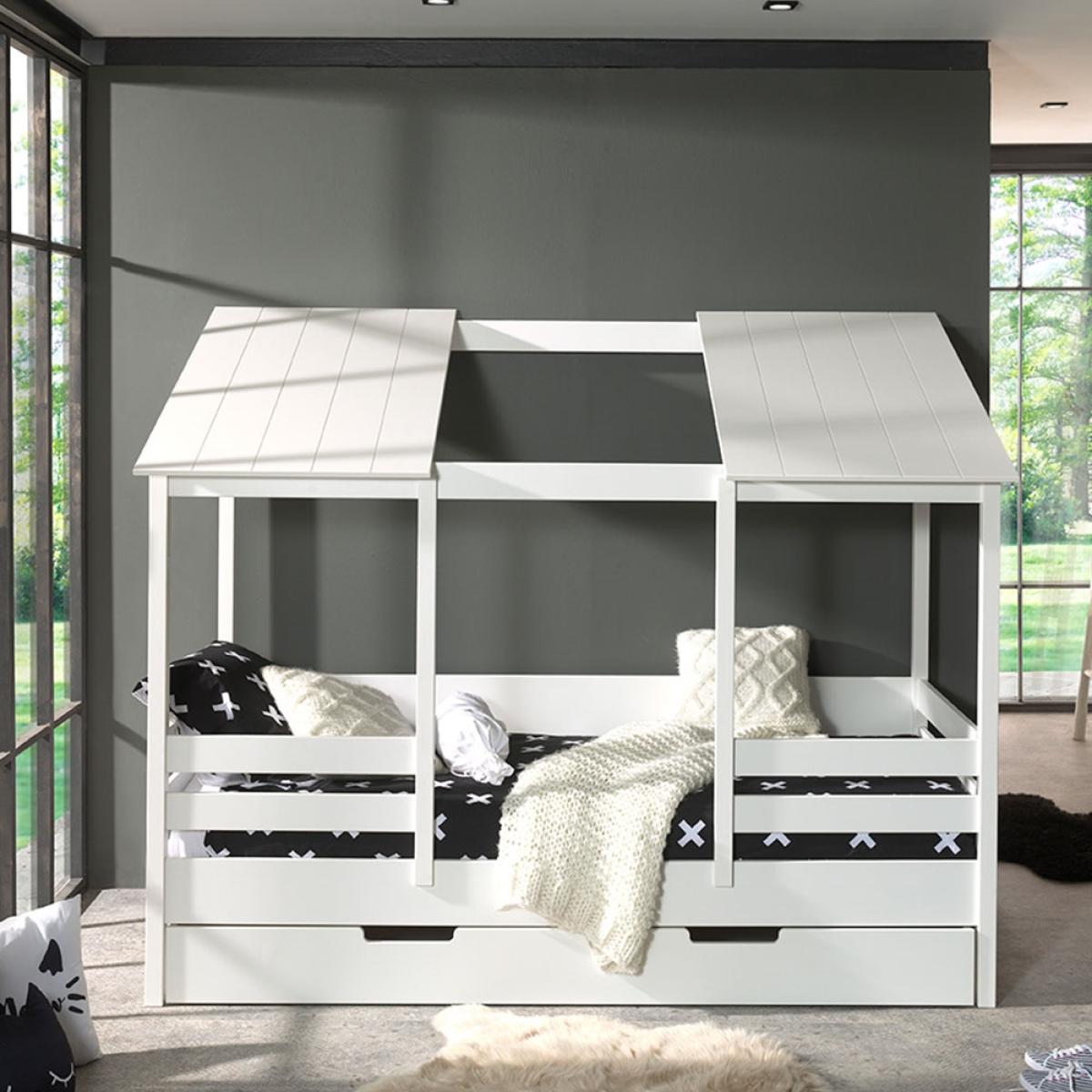 The Children's House Bed is sure to put a smile on your youngsters face!They'll be rushing to head up to sleep knowing this will be waiting for them. Manufactured from solid pine and MDF with windows and a cut out roof, they can stargaze as they drift off. Your kiddie will love making this house bed their home! Add some cosy cushions, string up some fairy lights and create a comfy den. You could even add the optional trundle drawer, making it ideal for sleepovers or just for a bit of extra storage. Whatever you choose it is sure to earn you some brownie points.