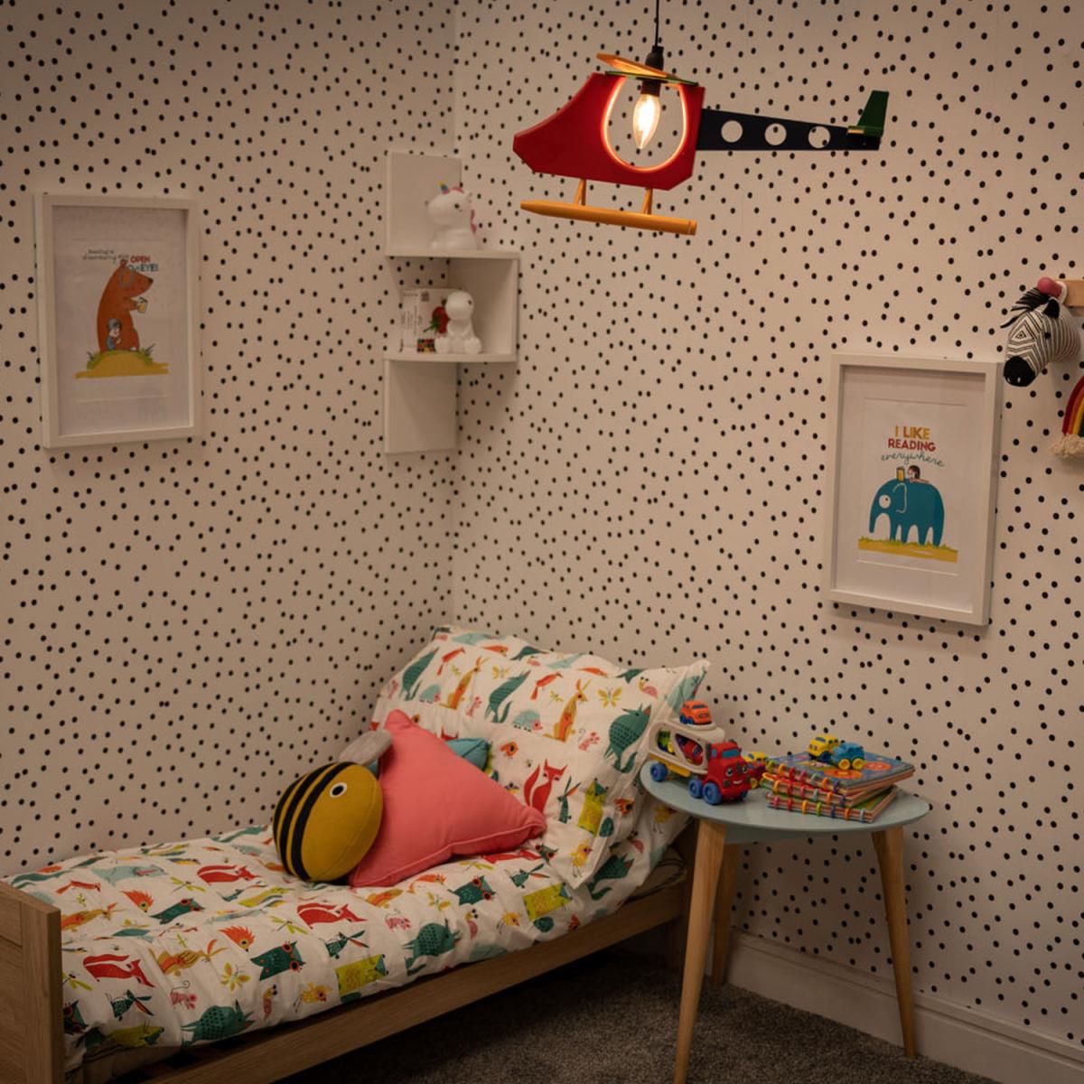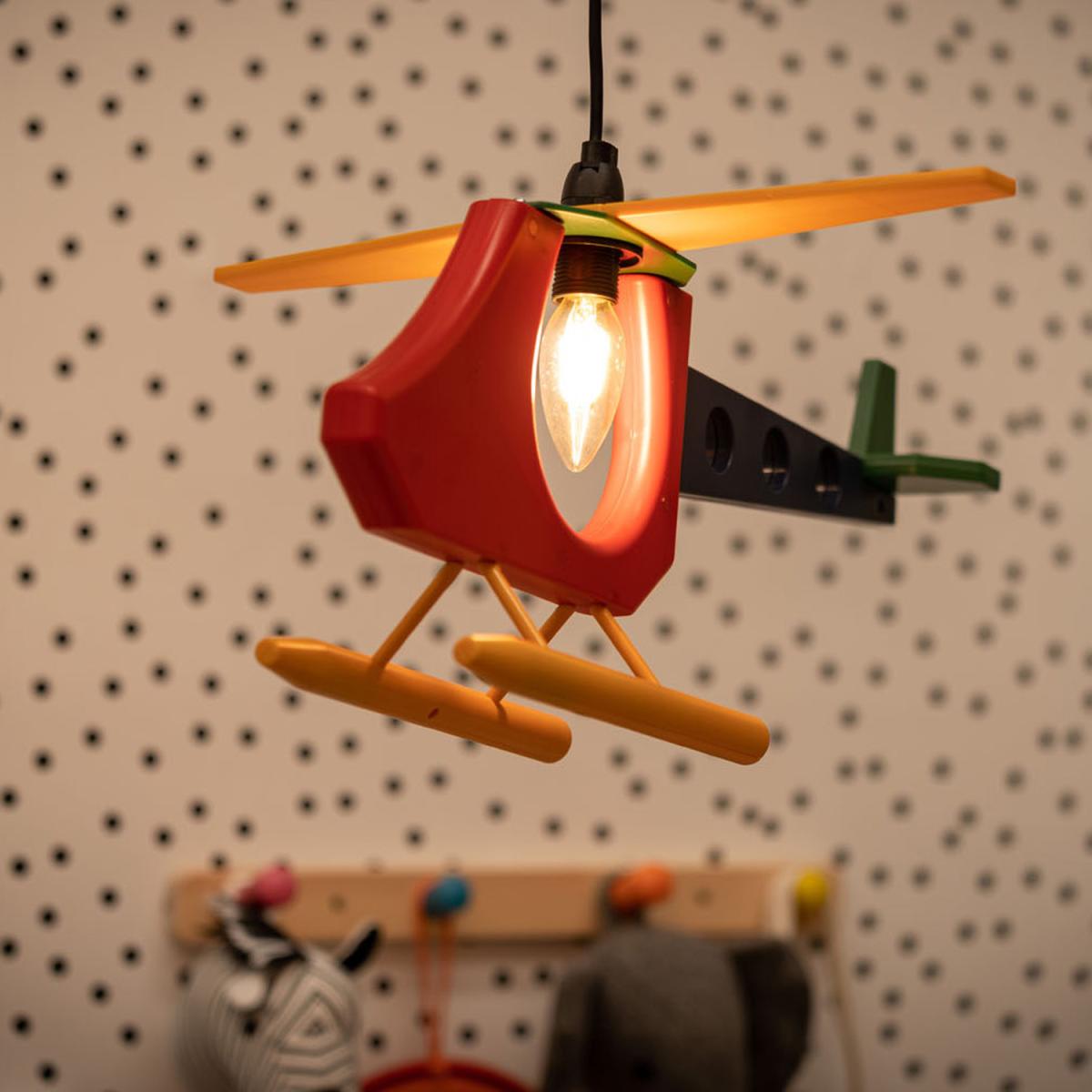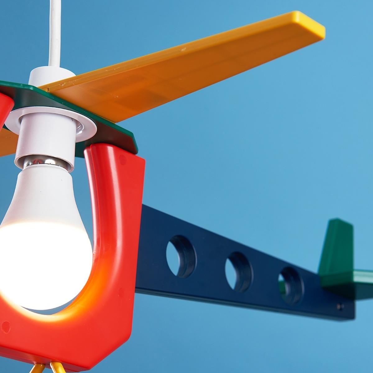 This children's multicoloured helicopter ceiling pendant adds a fun, playful element to any child's room or nursery. I love how it combines bright, primary colours with a whimsical design that captures a child's imagination - perfect for creating a lively, energising space. It works particularly well in modern or Scandinavian interiors where vibrant accents provide a cheerful contrast; it’s also great for themed rooms or playful eclectic schemes. When styling, consider pairing it with simple, neutral furniture to let the pendant be a statement piece, and keep other accessories minimal to avoid visual clutter. Practical tips include ensuring the light source is energy-efficient and adequately bright for the space, as well as positioning it at a safe height where it can be appreciated without becoming an obstacle.