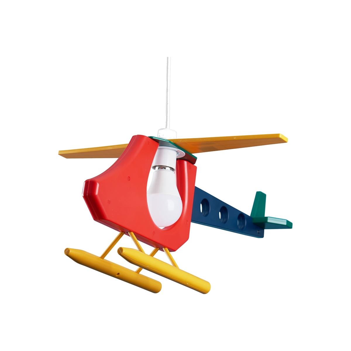 Children's Multi-Coloured Helicopter Ceiling Pendant Light Shade - Red