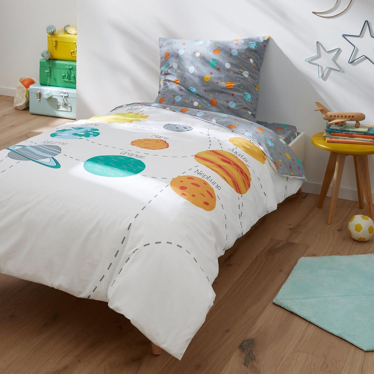 Planets Cotton Fitted Sheet. Find the whole collection online: Match this fitted sheet with the rest of the bedding in the range for total coordination. You can also mix and match it with different colours and designs from our other bedding ranges to suit your mood and add your own unique style to the bedroom. !