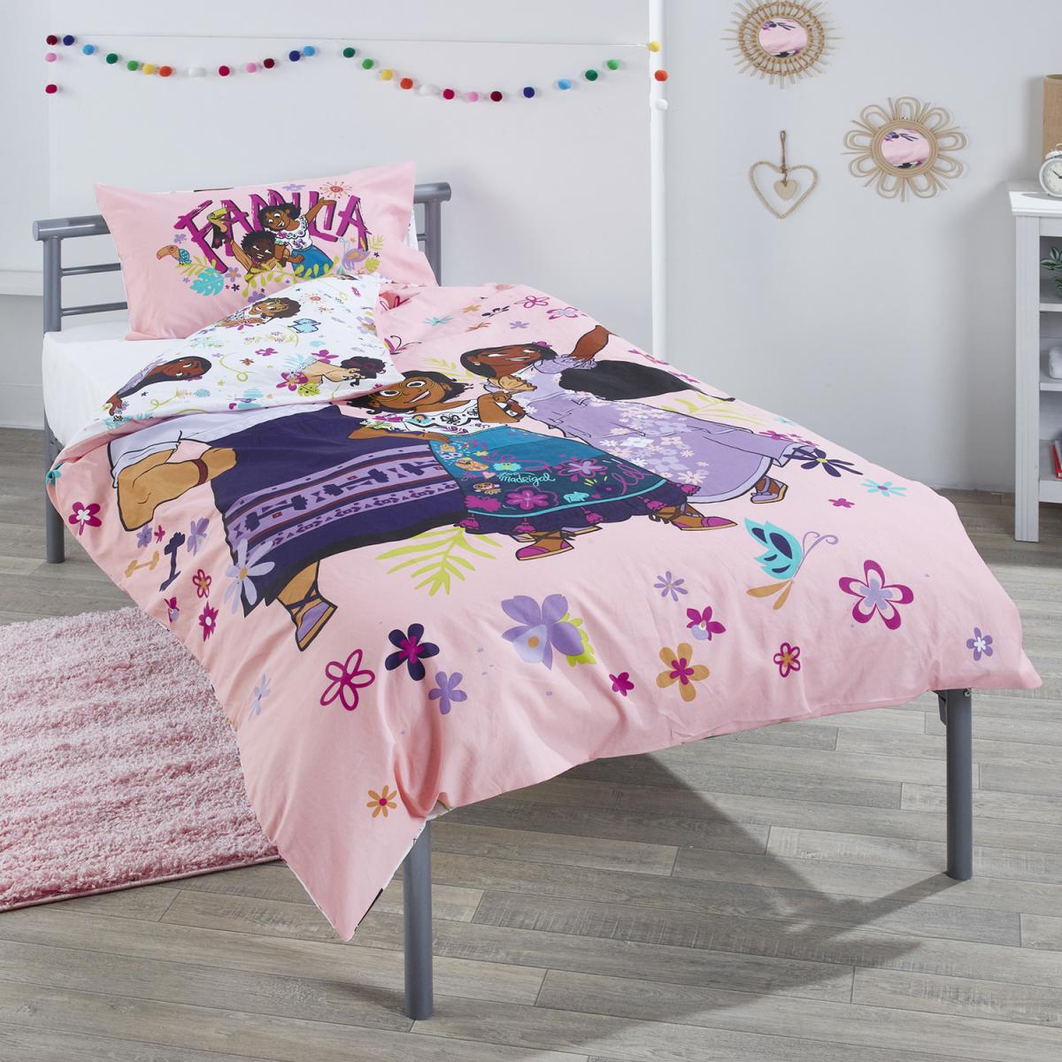 This awesome Single bed comes complete with everything you need for your child. A sturdy base, a superb quality handmade British mattress, sheet, pillow, duvet and an officially licensed Disney Encanto bedding set. Unlike the cheaper poor quality beds available, this set is real quality and should last a long time. The bed frame is tested to 350kg load test, which means it is durable and strong. The Bed has a 12-month warranty for normal household use, the mattress has a 12-month warranty for normal household use. The bed, mattress and bedding have been specially chosen by us for comfort, quality and long-lasting durability. Our premium delivery service means this set will be delivered by a 2 person team who will even carry it up a flight of stairs and put it in a room of your choice ready for you to assemble. The set comes with everything you need for easy assembly.