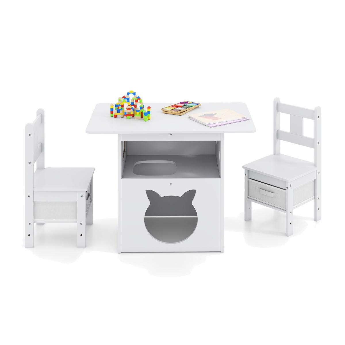Create a cozy study and play space with our kids table and chairs set! Featuring a unique cat house, the toddler table enables kids to enjoy pet companionship. The cat hole and internal entrance allow cats to explore. The kids table offers abundant space for different activities, meeting kid's different needs. Each chair is equipped with a fabric storage bin for stowing away toys, books, and craft supplies, keeping the play area tidy and organized.
