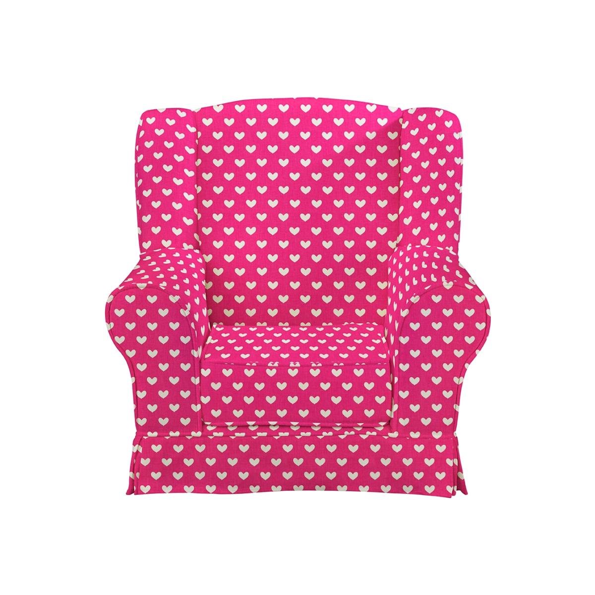 I love this little wing chair for its playful charm and vibrant pink heart pattern, making it a fun statement piece in a child's room. It works particularly well in colourful, eclectic interiors or alongside neutral tones to add a pop of colour. For styling, consider pairing it with soft textured textiles and cheerful accessories to create a cozy, inviting space. It's practical for smaller spaces too, thanks to its compact size, and its cheerful design makes it ideal for reading nooks, playrooms, or even as an accent armchair in a more grown-up seating area.