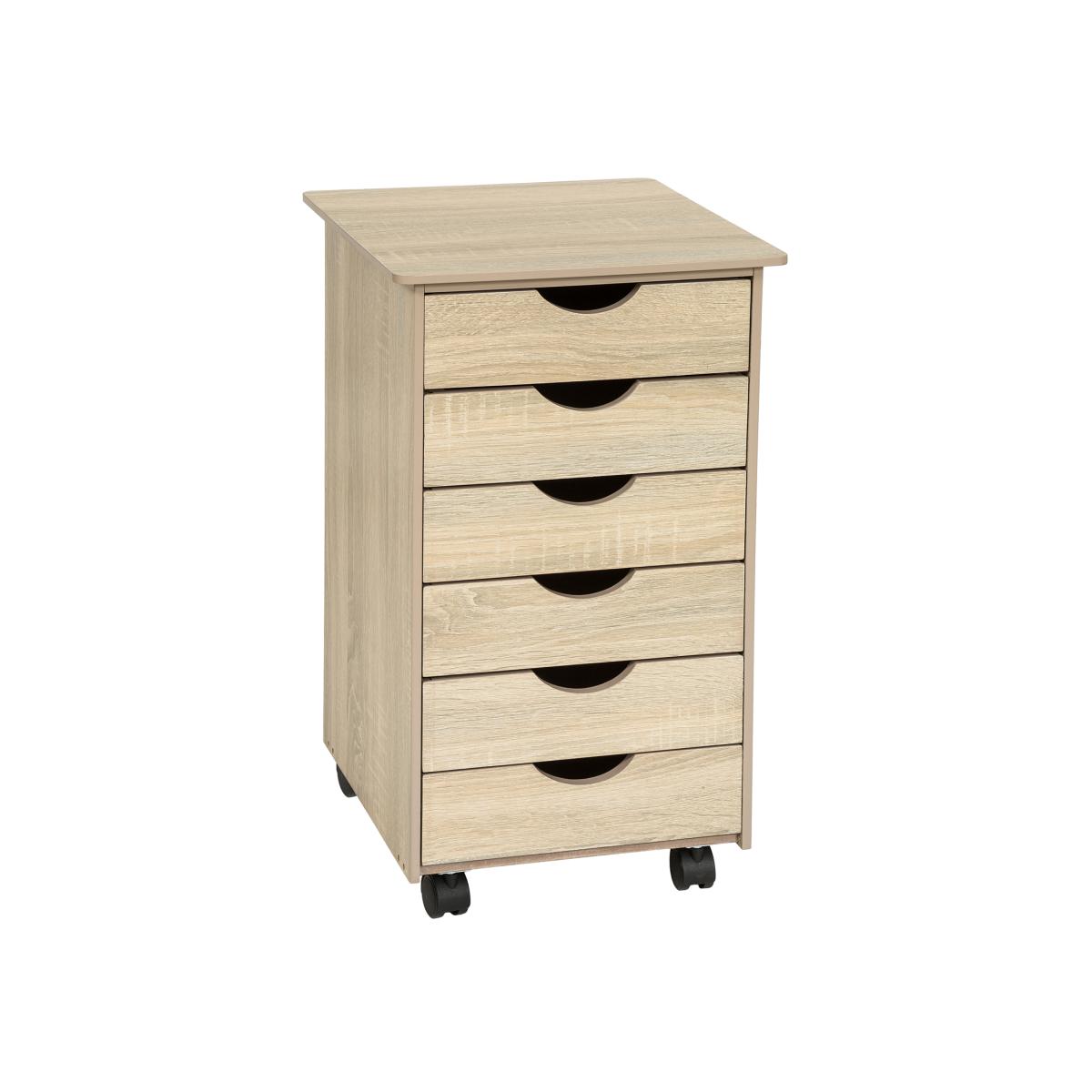 With this functional amp attractive chest of drawers from tectake, your children can easily organize their room. Six easy to open and close drawers provide space for stationery, exercise books, toys and more. Thanks to the four smooth-running castors and its low weight, the drawer cabinet can be easily pushed to the desired location. Parents have reason to be happy too - this sturdy desk trolley with its rounded edges on the shelf is not only easy to assemble, but just as easy to clean with a damp cloth.