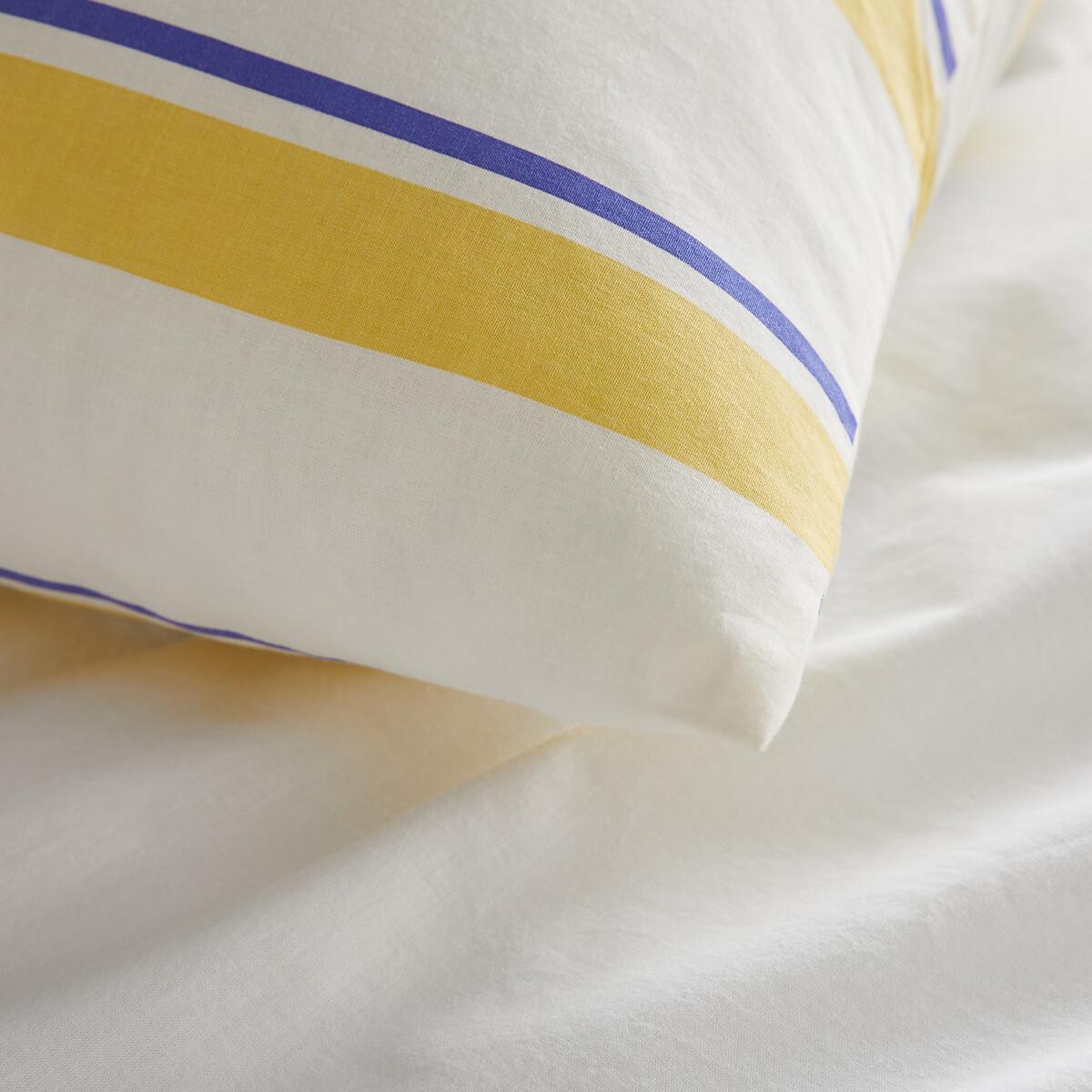 Fresh, sunny stripes and a pretty beach scene inspired by the Mediterranean... The Labhar pillowcase is designed by La Redoute Intérieurs. The washed cotton has been delicately bleached during its manufacture. Soft, supple and comfortable, it softens over time. Its slightly wrinkled appearance is incredibly on-trend, and it does not require ironing. Product Details • 100% cotton • Washed cotton • 144 thread count • Striped print on both sides. As the seasons change, add your own personal touch by mixing the Labhar range with our range of plain Scenario bed linen. Care Advice • Machine washable at 60°C • By washing your laundry at 40°C instead of 60°C, you limit energy consumption. Dimensions • 50 x 70cm: Rectangular pillowcase • 63 x 63cm: Square pillowcase • OEKO-TEX® Standard 100. Standard 100 certification by OEKO-TEX® tests textile products for harmful substances via an independent, international label.