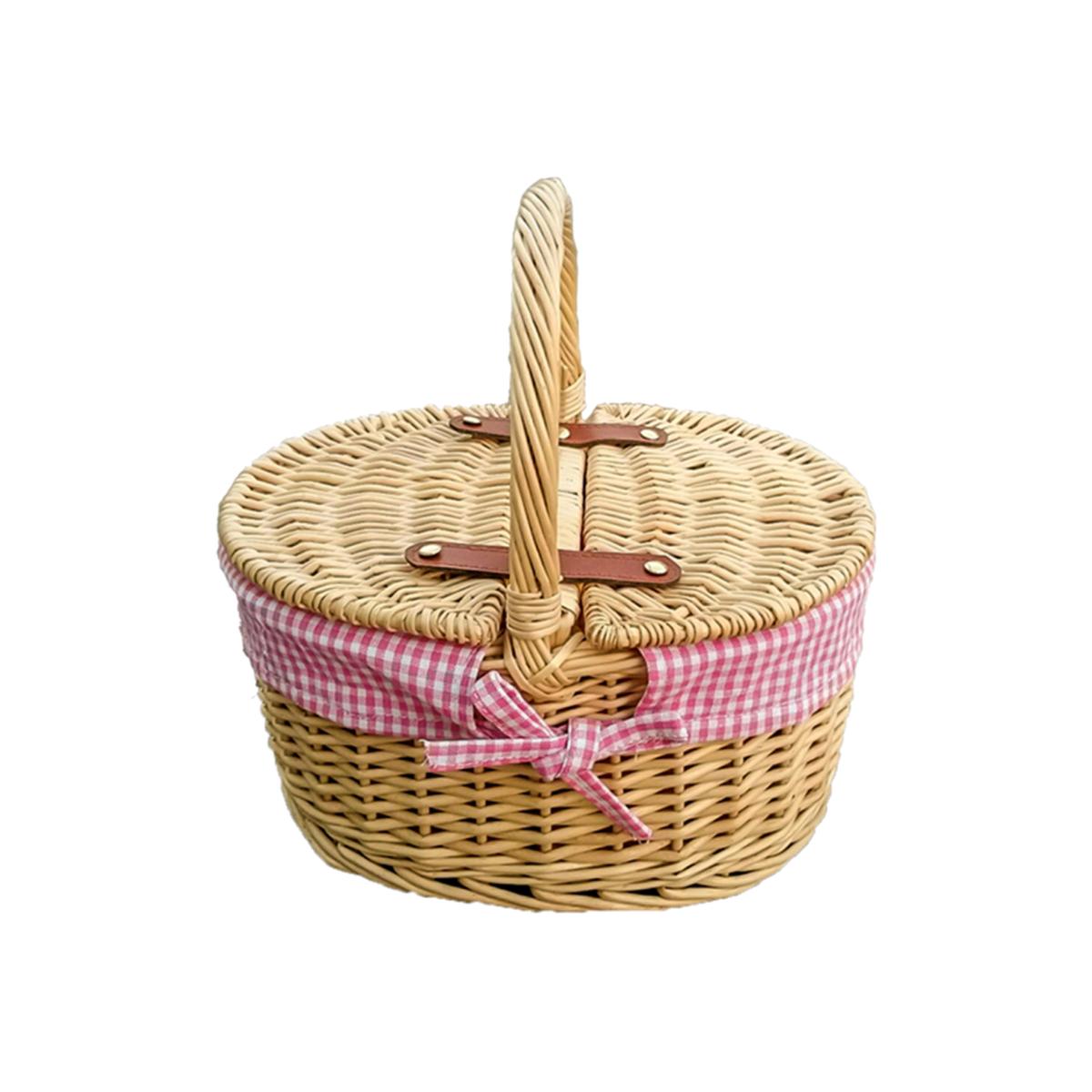 Made from full buff willow with a checked gingham lining. Attractive looking. High Quality, Well made Basketware. Natural product so dimensions can vary slightly. Manufactured from sustainable materials. Colours and finishes could vary.