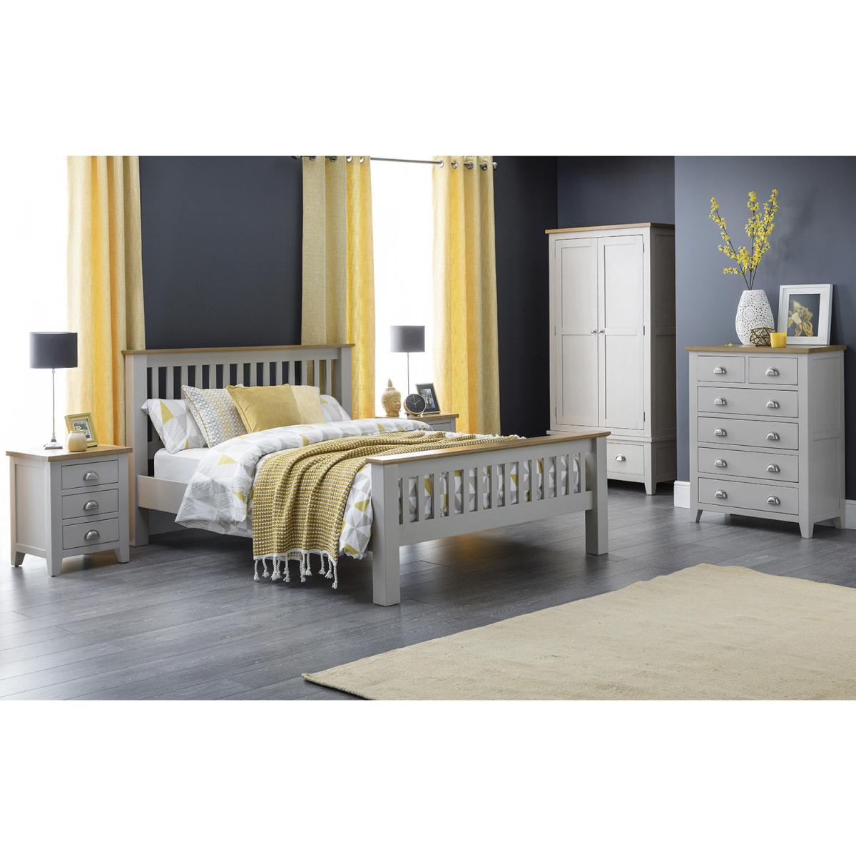 Traditional yet timeless in design, the Chilham 6 Drawer Chest is crafted from solid white oak with an elephant grey lacquer and polished metal handles. Sturdy and fully assembled, this chest offers ample storage space within its six large drawers and can be coordinated with other units from this modern country collection.