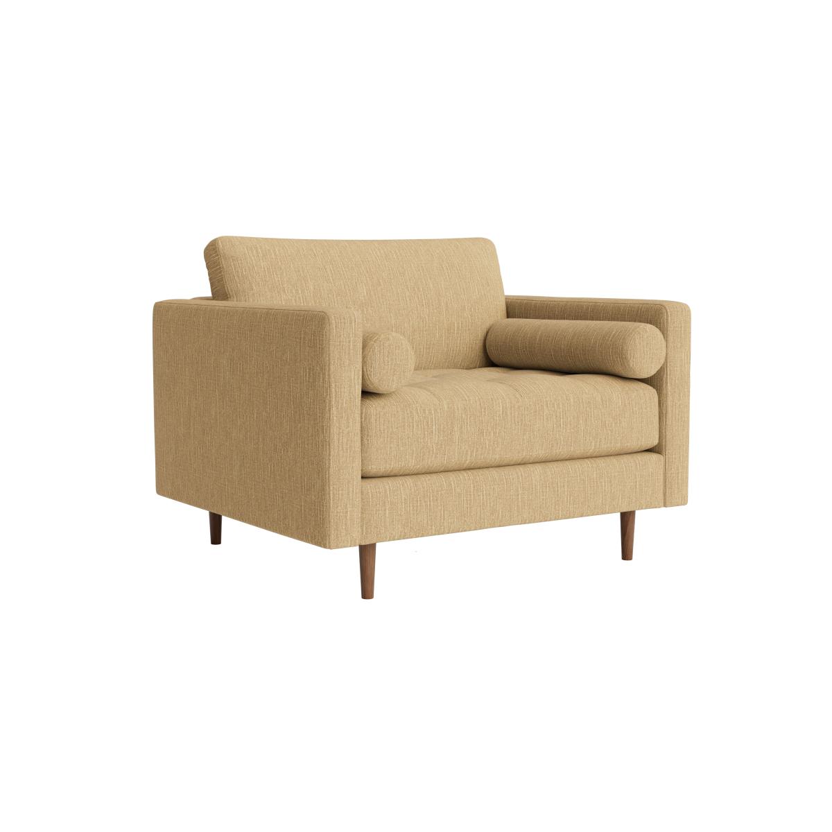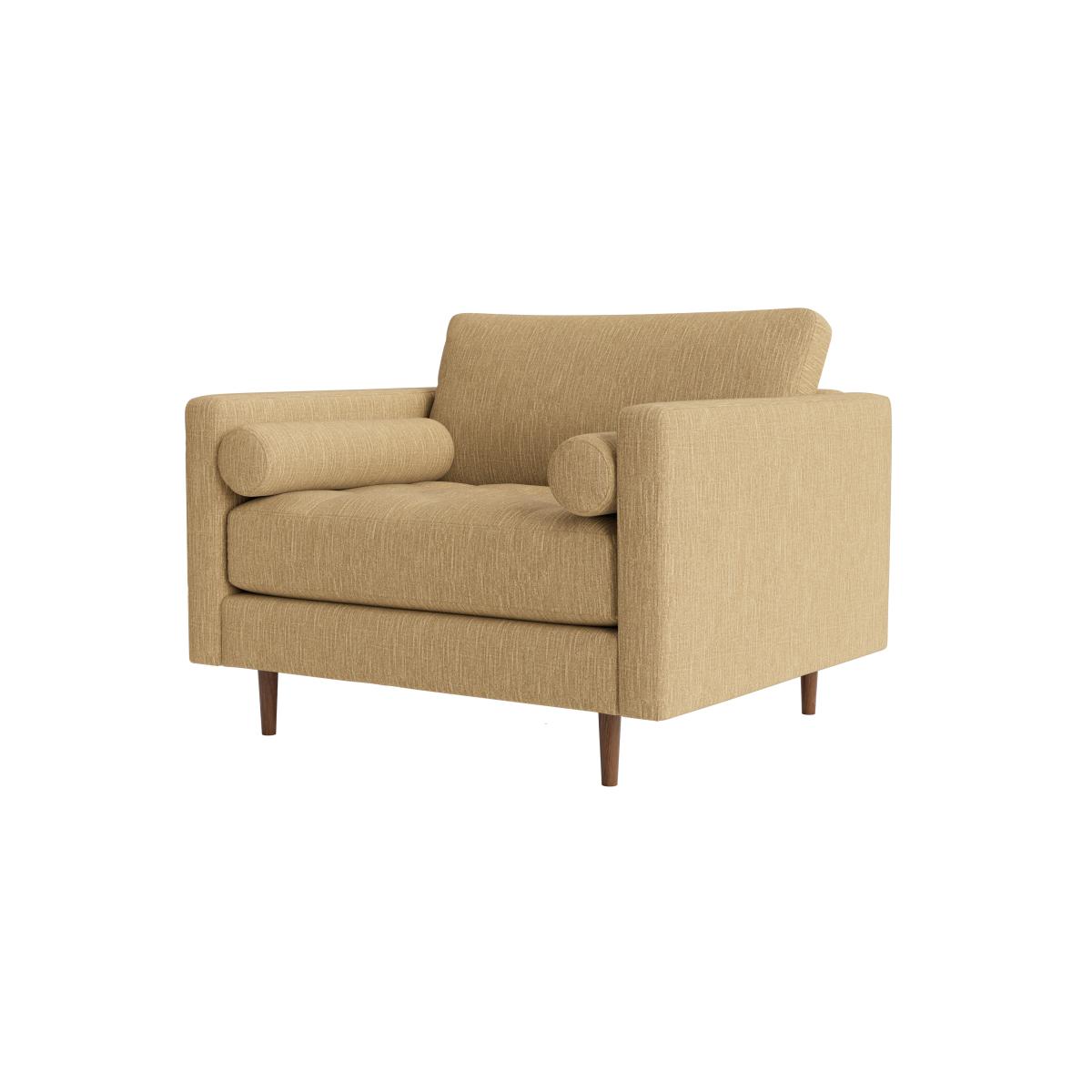 I love this love seat for its versatile, understated style and the natural warmth of its Straw Hat House fabric. It's ideal for creating cosy, inviting spaces, especially in modern or Scandinavian-inspired interiors where neutral tones and simple forms flourish. Its flat-packed design makes it a practical choice for those who like to alter their layout frequently or are looking for easy assembly. Styling tips include pairing it with textured cushions or adding bold, colourful throws to keep the look lively. It works particularly well in small flats or areas where a compact yet comfortable seating option is needed, and it can be easily integrated with greenery or minimalistic decor to enhance its cosy appeal.