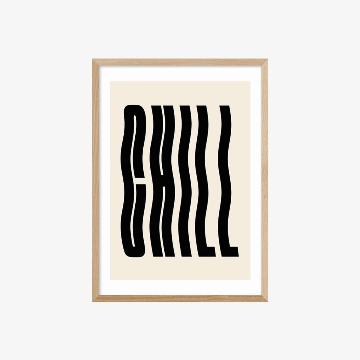 Chill out. Take it easy. Peace out! This vector-based pattern features bold typography to create bold pop-inspired wall art. This minimalistic poster of "Chill" is perfect for living rooms and bedrooms - any room where being horizontal is celebrated. Only giclée printing processes are used for this print resulting in the highest quality museum-level colours and sharpness. Choose between a number of different coloured frames and three sizes for the perfect print for your space.