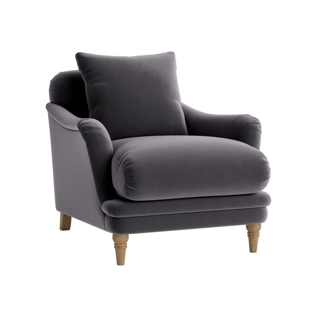 Gabriela Modern Soft Brushed Armchair with Light Wood Legs & Feather Fillings