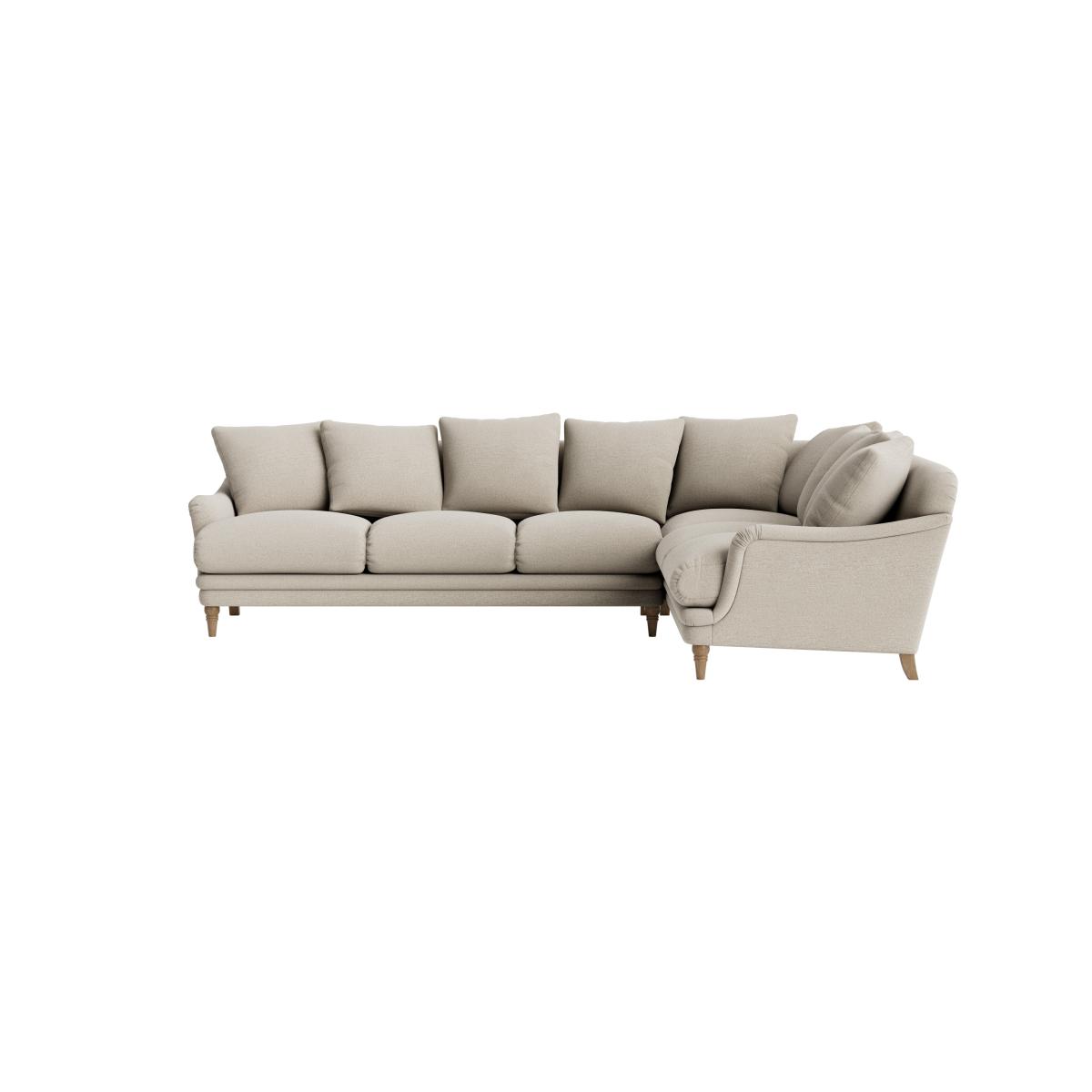 I love this corner sofa for its contemporary yet versatile design, making it a great focal point in a variety of interiors. It works particularly well in open-plan living spaces or modern flats, where its ample seating encourages socialising. The neutral colour and clean lines give it adaptability, allowing it to be styled with bold cushions or throws for a personalised touch. Practical styling tips include pairing it with a textured rug underneath to anchor the space, and adding side lamps or coffee tables nearby for functionality. Its understated elegance ensures it complements both minimalist and cosy, layered schemes-making it a reliable cornerstone for creating inviting, stylish living areas.