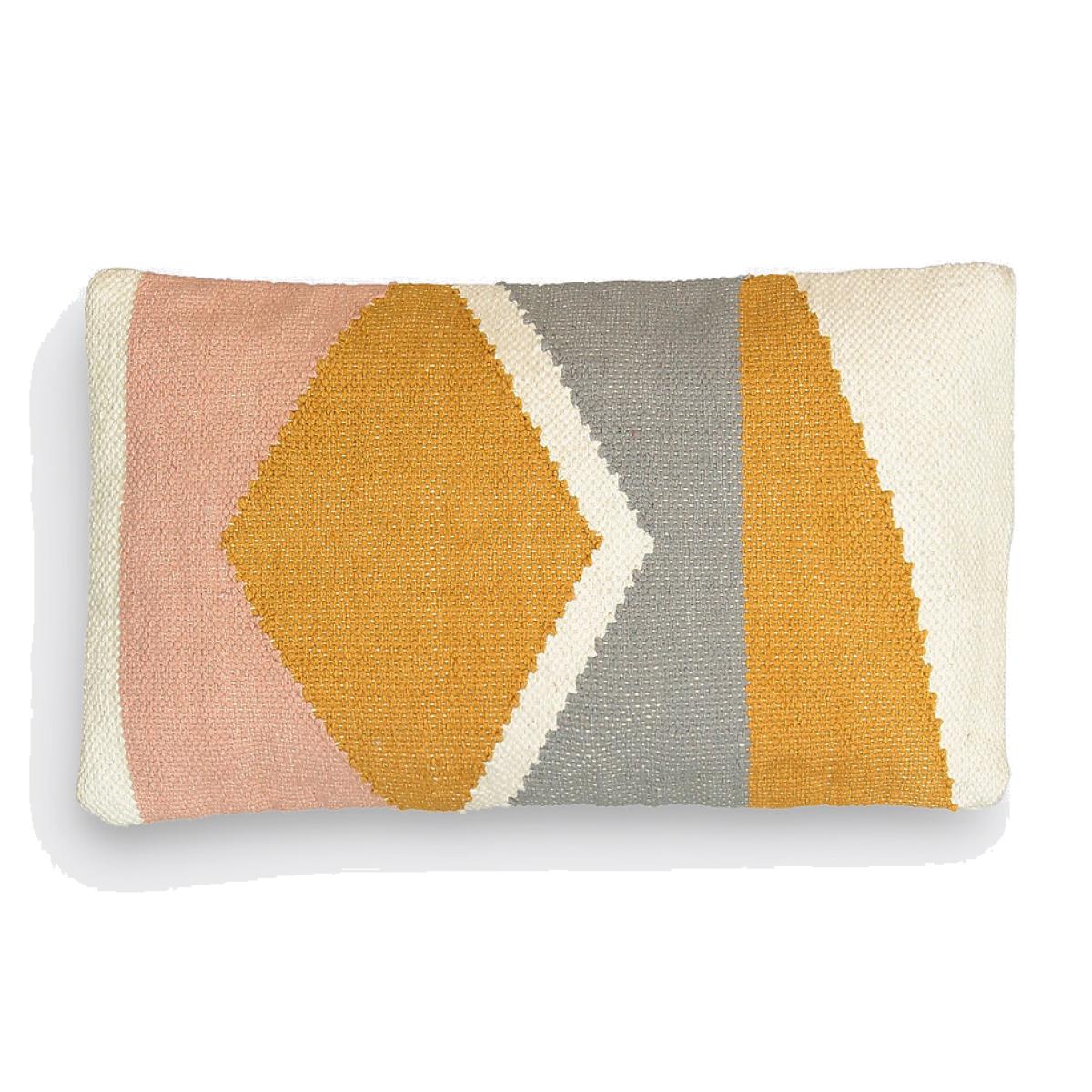 We love the bold, colourful graphic print on this CHILLAN cushion cover, which fuses artisanal influences with pastel-hued Scandinavian trends. Product Details • Pure cotton, tapestry-style weave. • Front: geometric pattern, back plain. • Zip fastening. Dimensions • 50 x 30cm • OEKO-TEX® Standard 100. Standard 100 certification by OEKO-TEX® tests textile products for harmful substances via an independent, international label.
